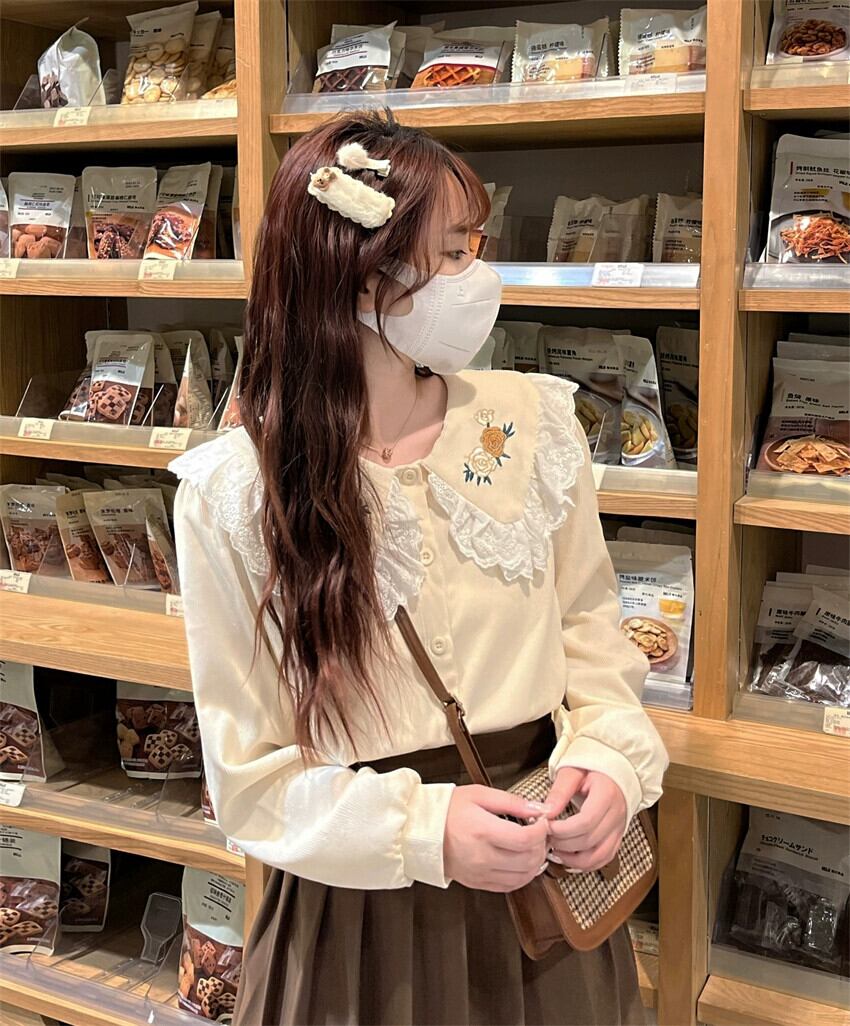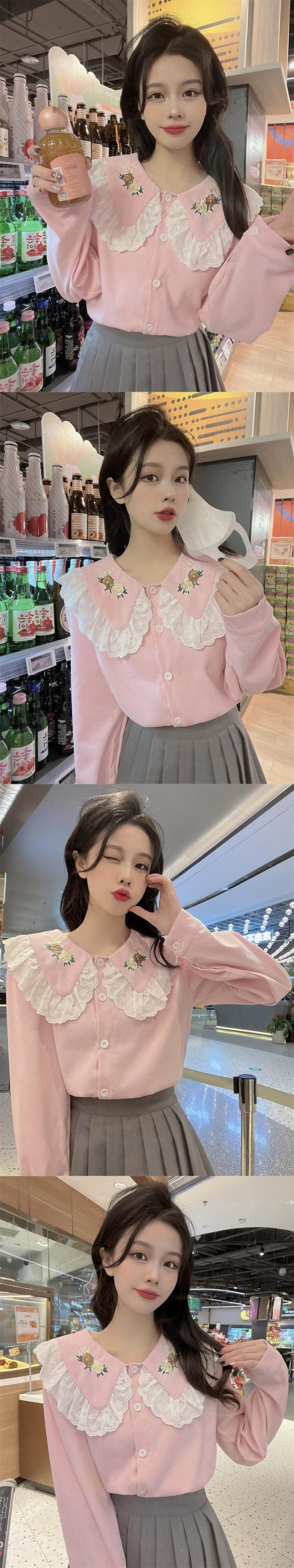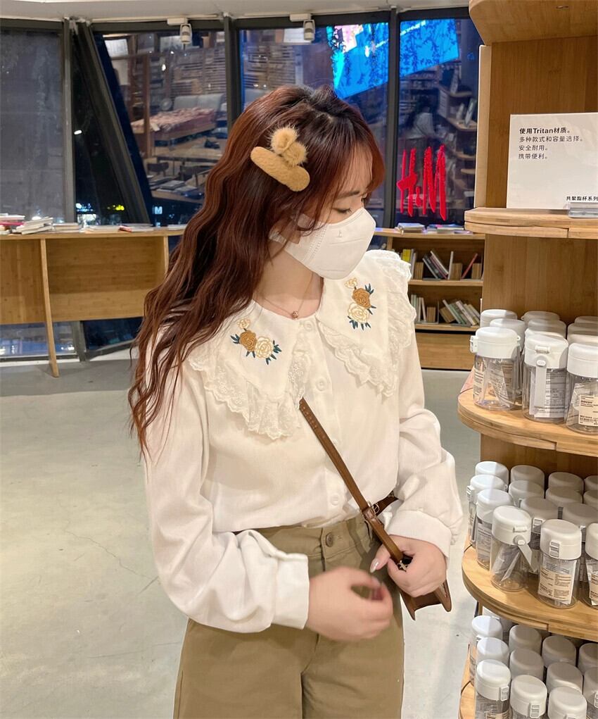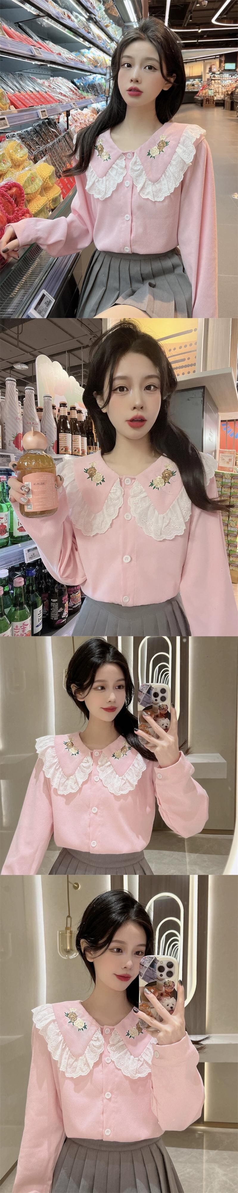 フレンチレース刺繍ドールカラーシャツ女性の春と秋2023新しいスタイルのルーズ長袖シャツ、西洋スタイルのデザイン ロング レッド スプリング 春物 オータム 秋物 7460084883584071 | framboise21