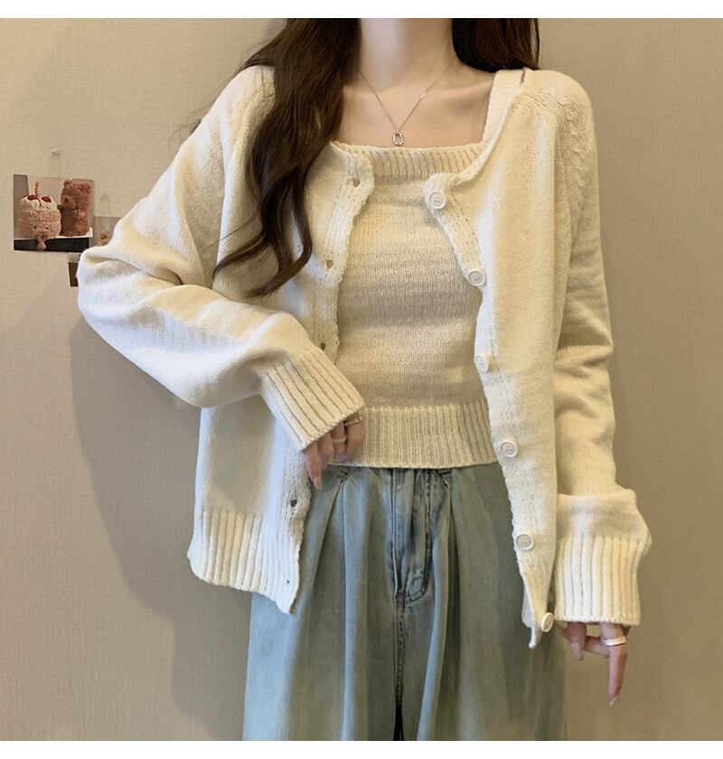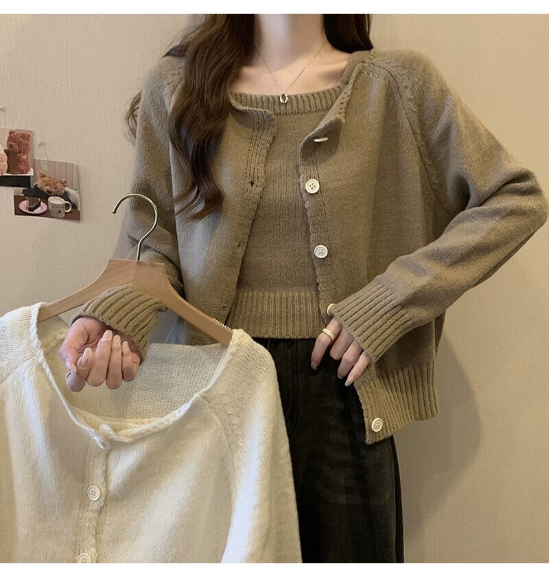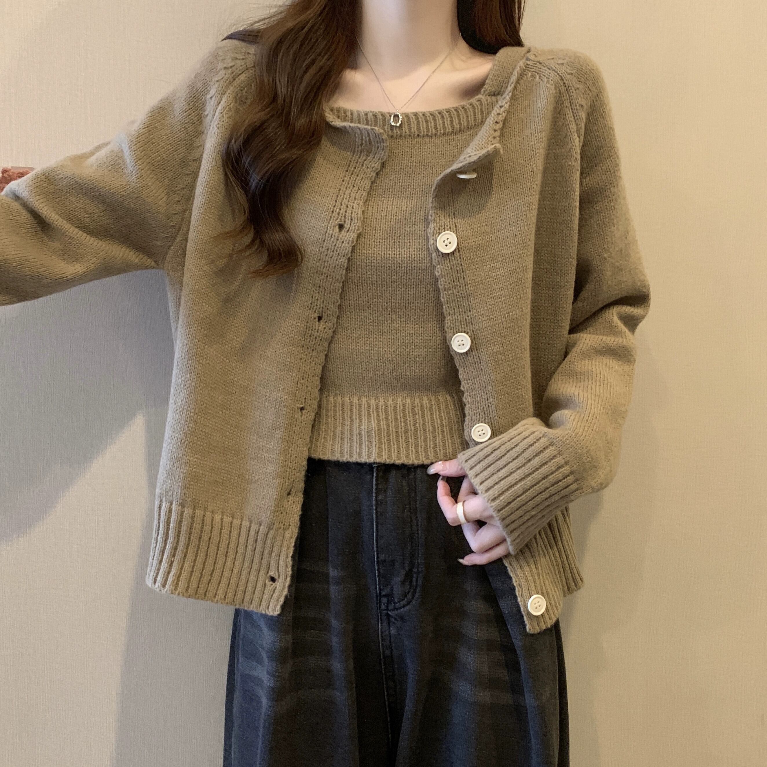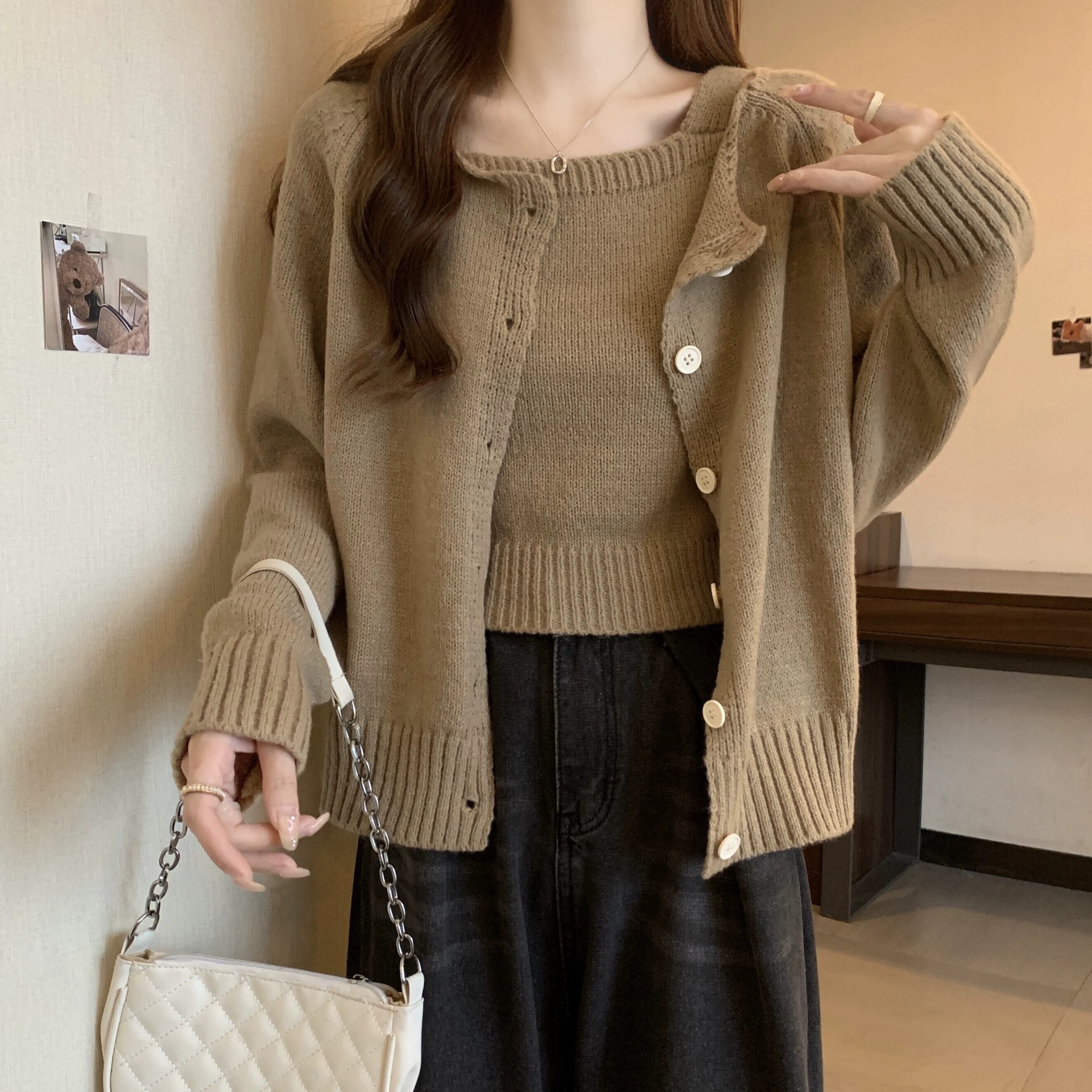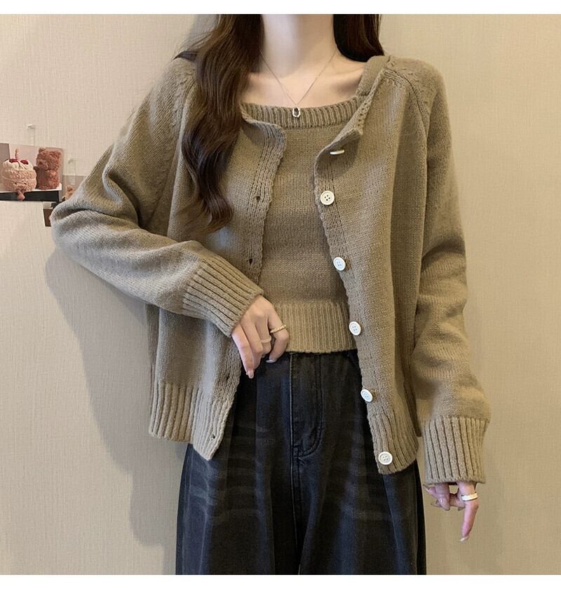 ソフトワックスカーディガンセータージャケット女性秋と冬のレトロスタイルルーズアウターカジュアルニットキャミソール 2 点セット オータム 秋物 ウィンター 冬物 7460020335576361 | framboise21