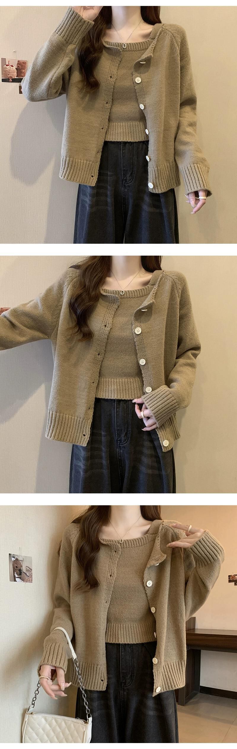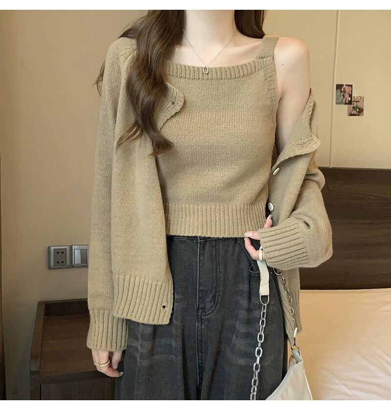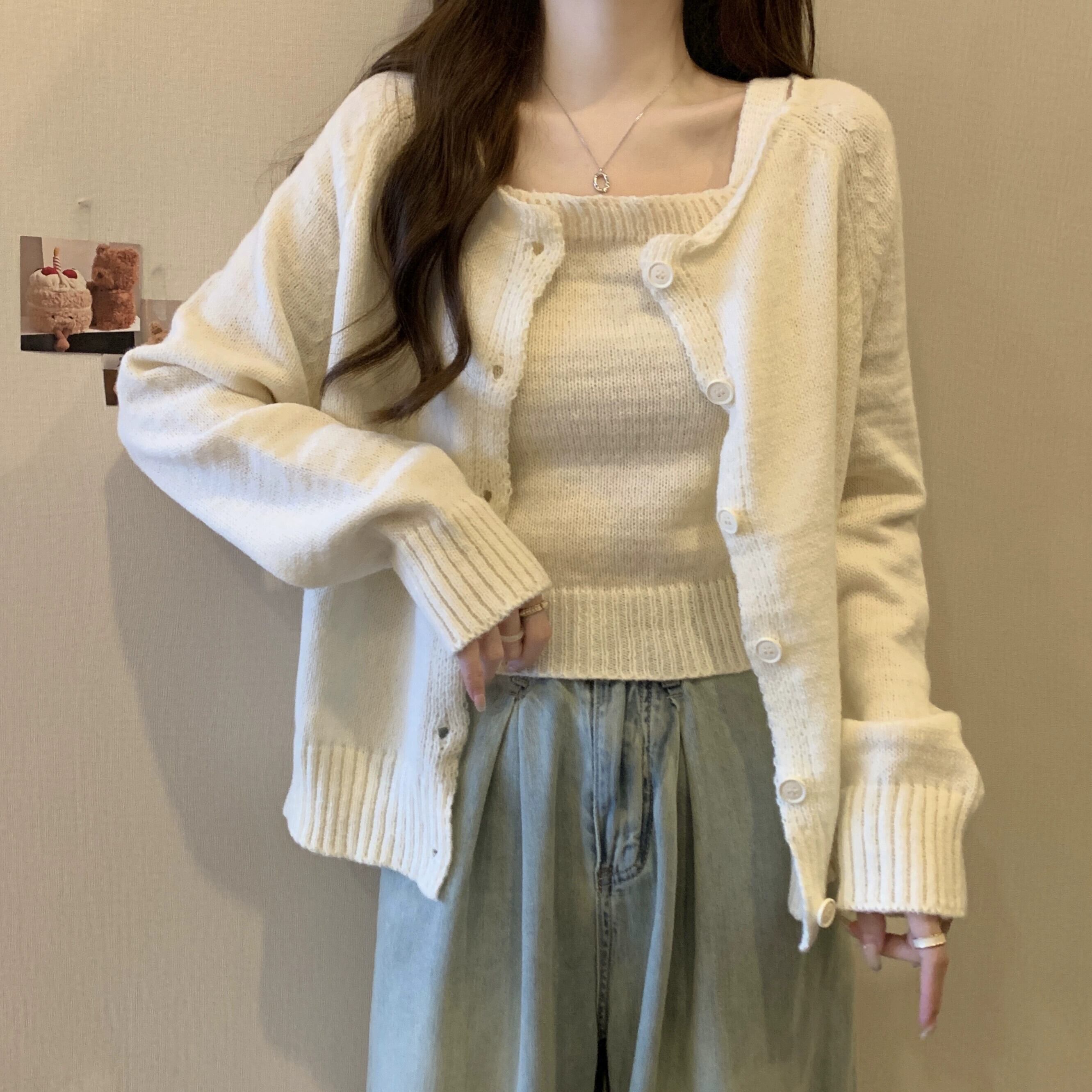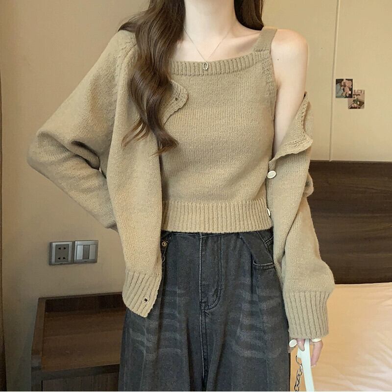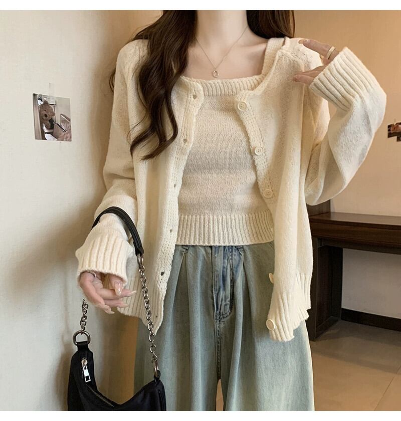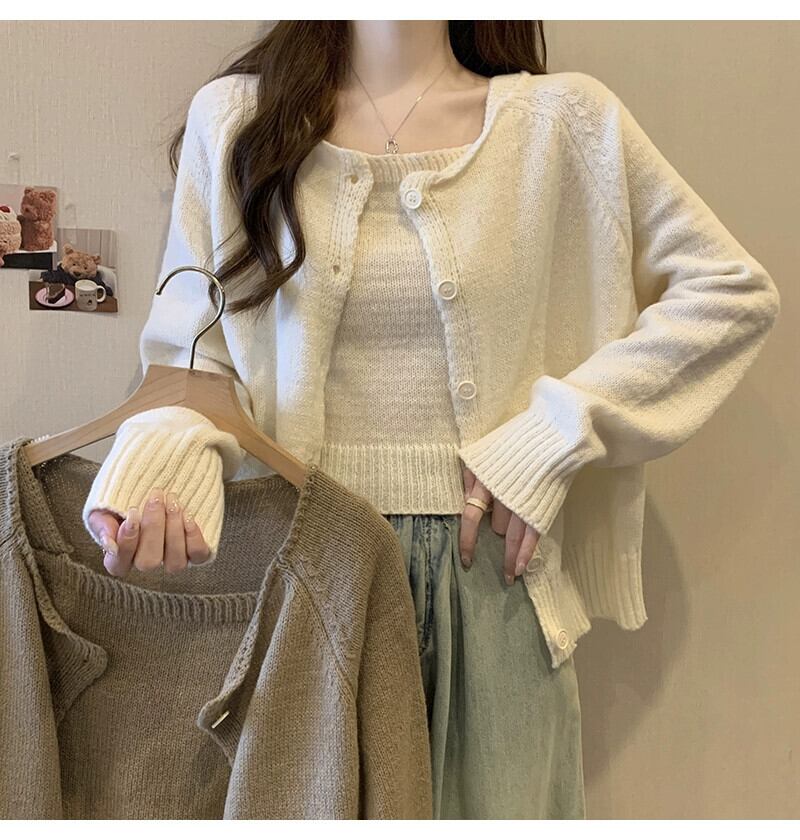 ソフトワックスカーディガンセータージャケット女性秋と冬のレトロスタイルルーズアウターカジュアルニットキャミソール 2 点セット オータム 秋物 ウィンター 冬物 7460020335576361 | framboise21