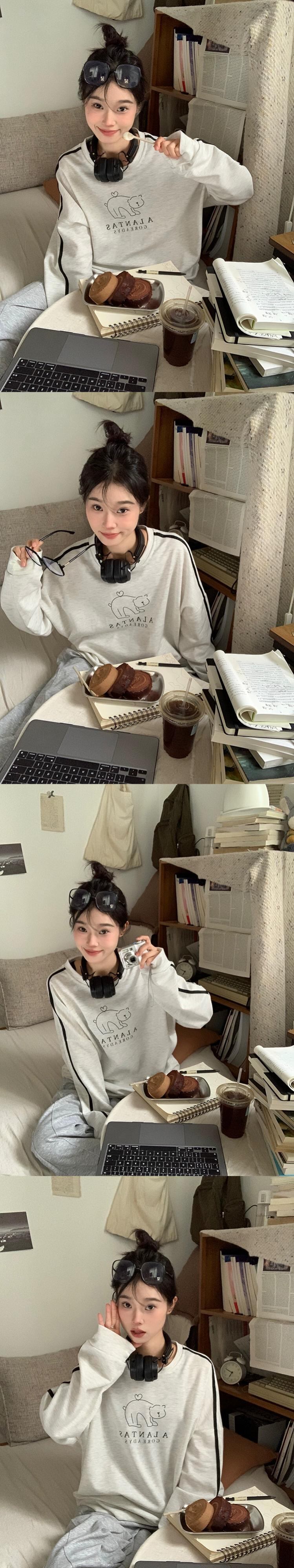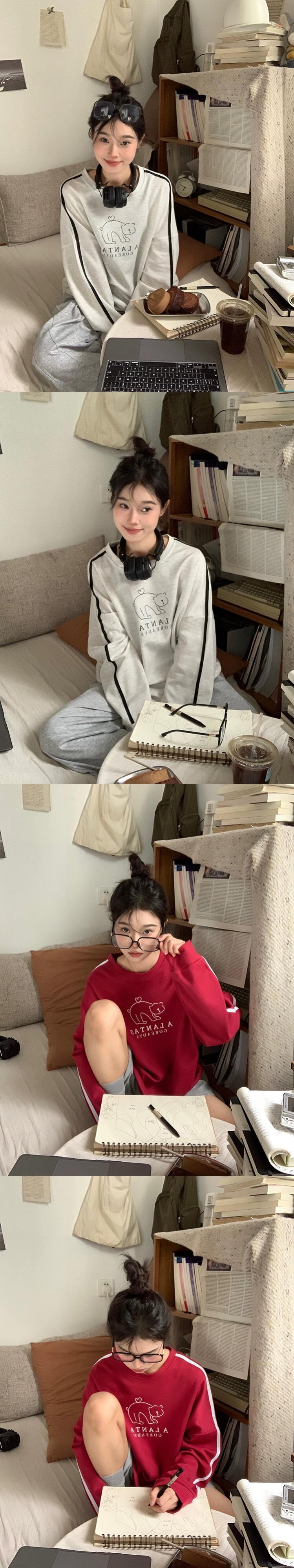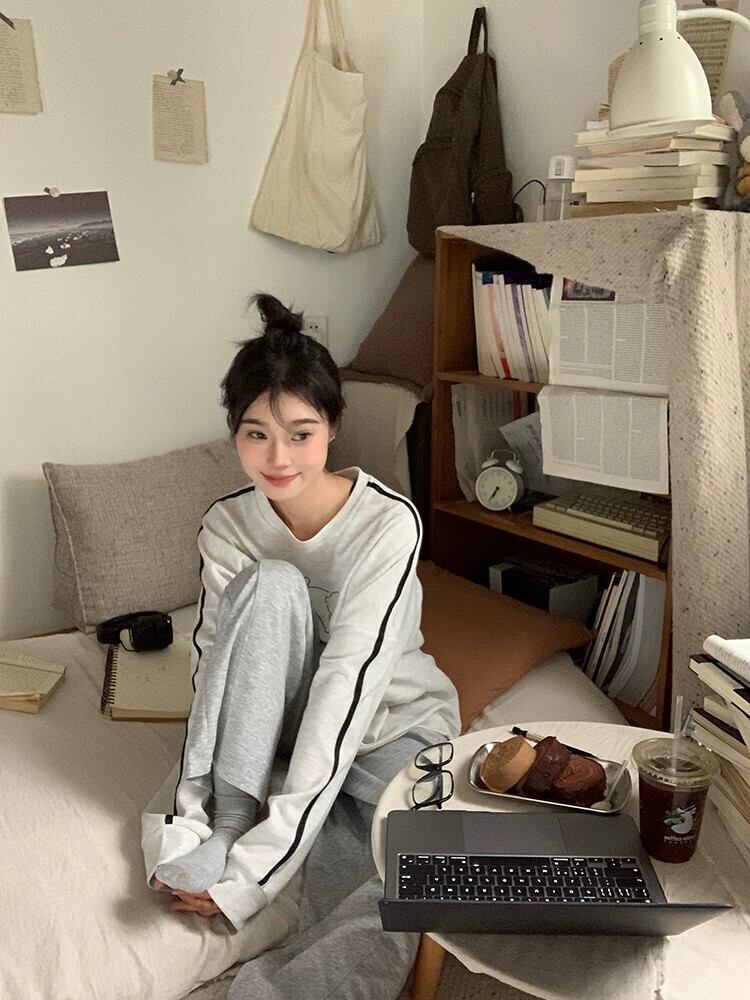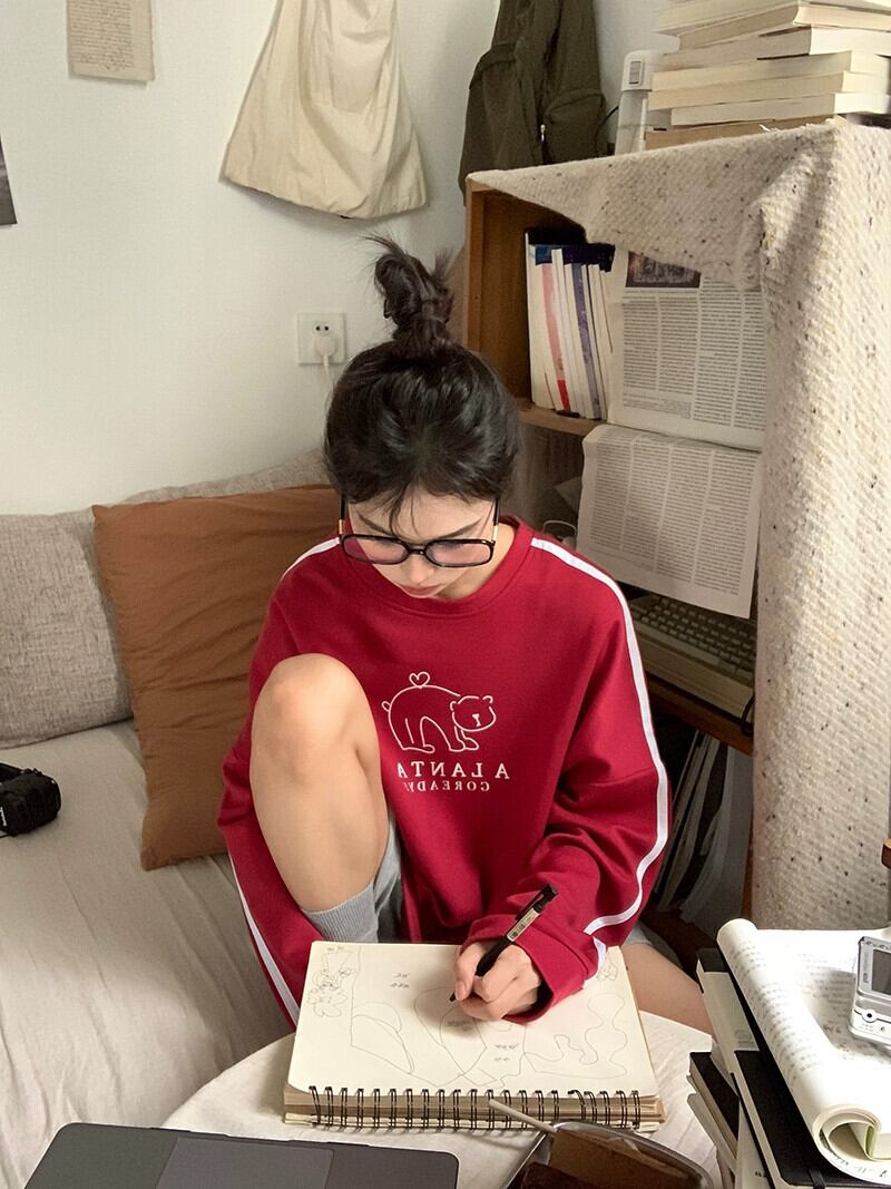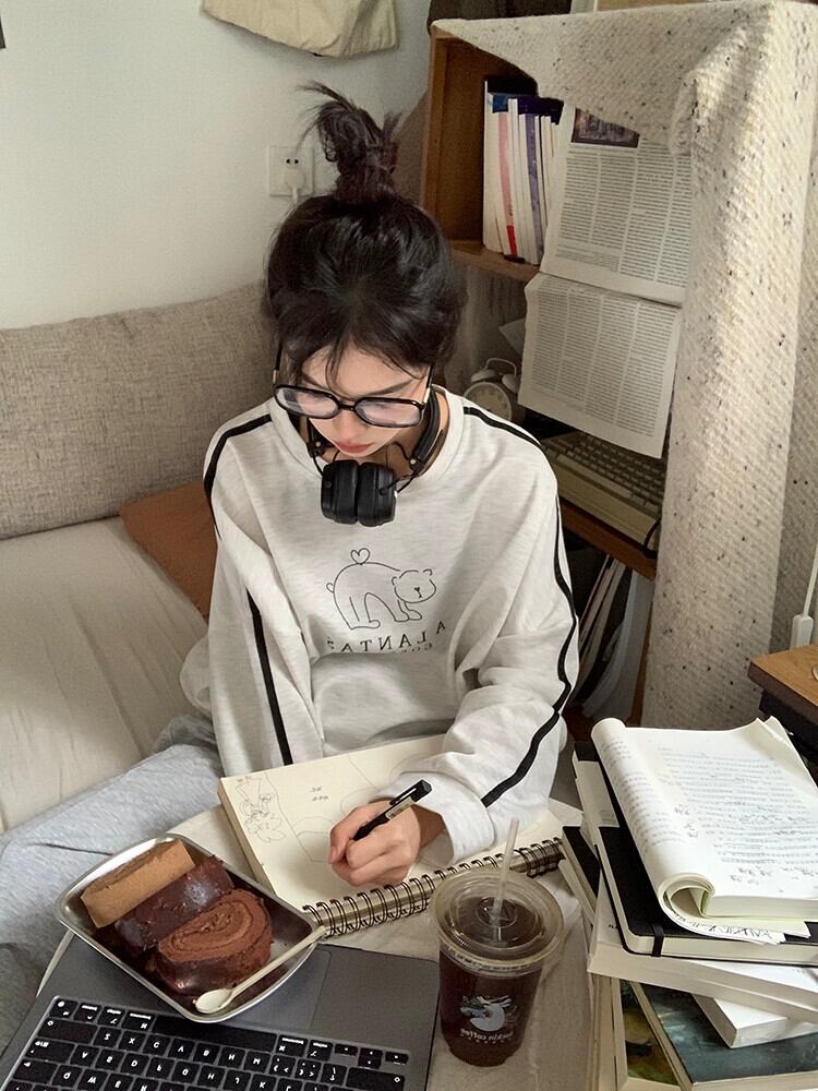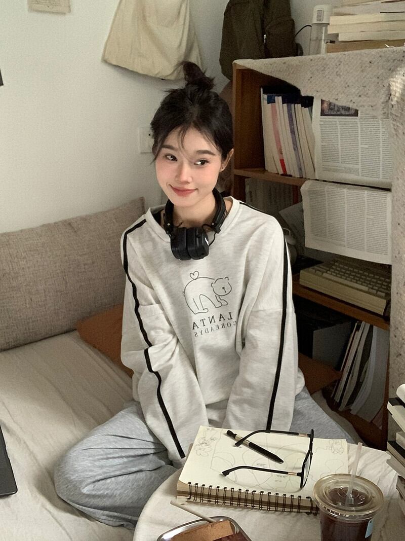 春と秋のバーガンディのラウンドネックスウェットシャツの女性、ルーズなスタイル、怠惰なスタイル、カジュアルで多用途なストライプの長袖トップ ロング スプリング 春物 オータム 秋物 Oネック 7460063985138210 | framboise21