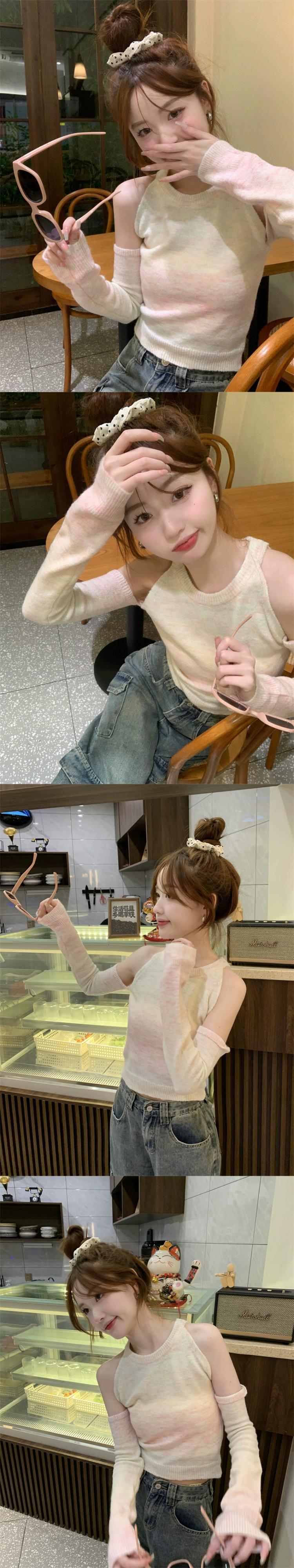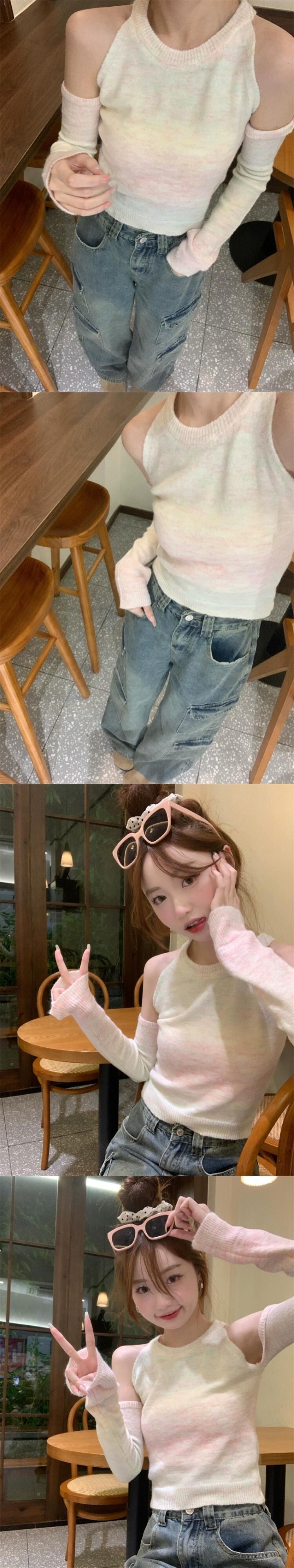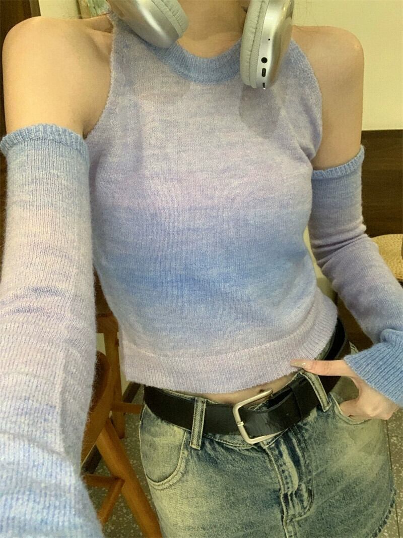 グラデーションオフショルダー長袖ニットボトムシャツレディース、秋冬デザイン、スリムフィット、ショートラウンドネックセーターレディース ロング オータム 秋物 ウィンター 冬物 Oネック 7460035541761302 | framboise21
