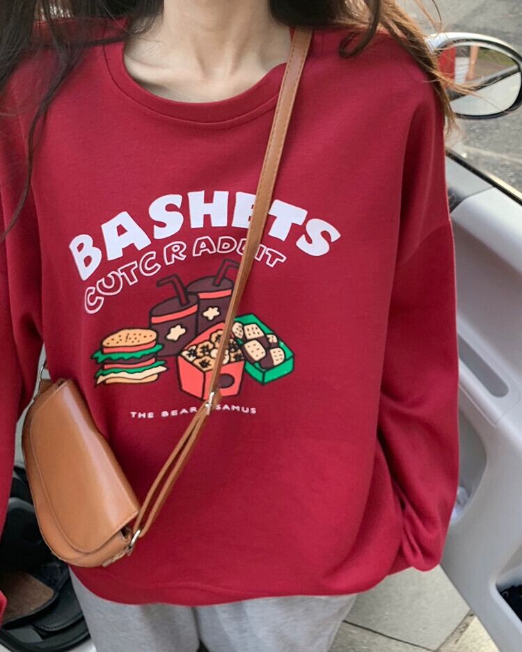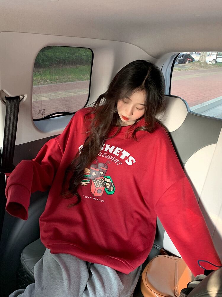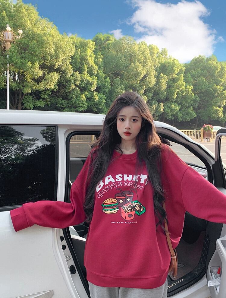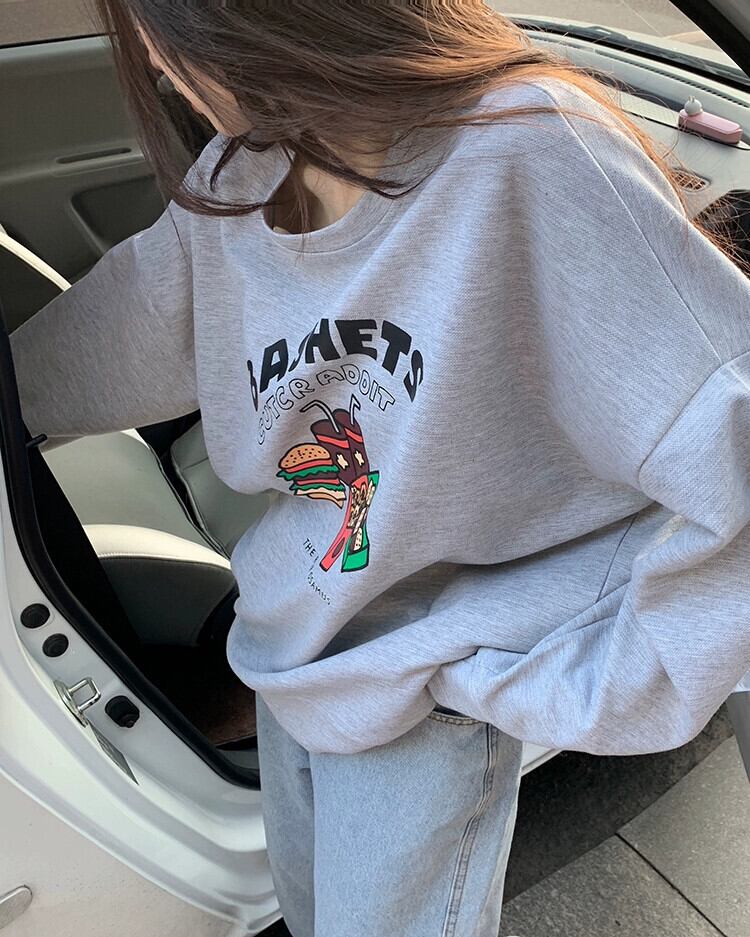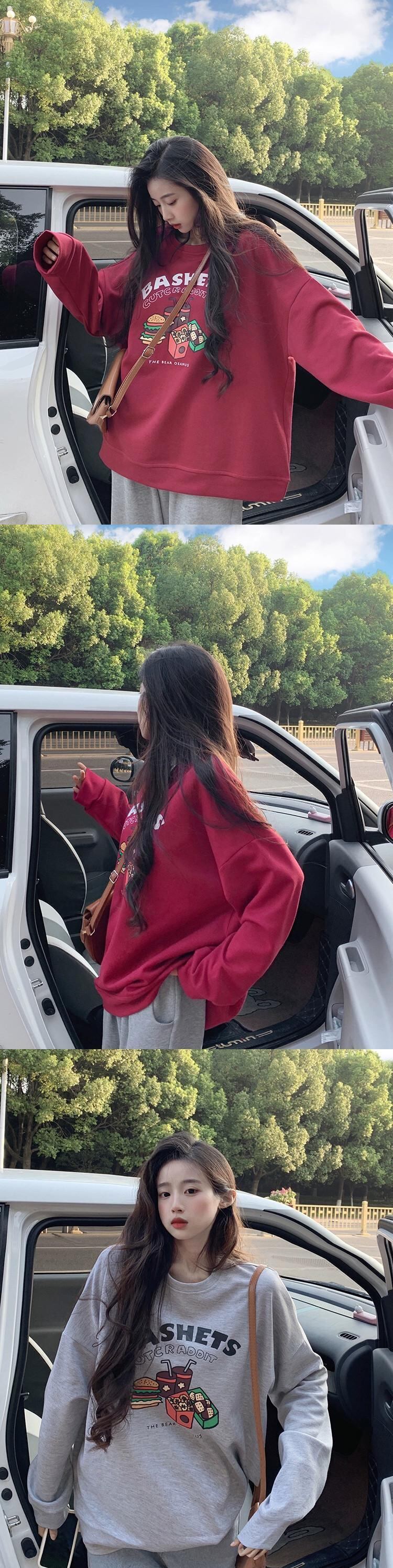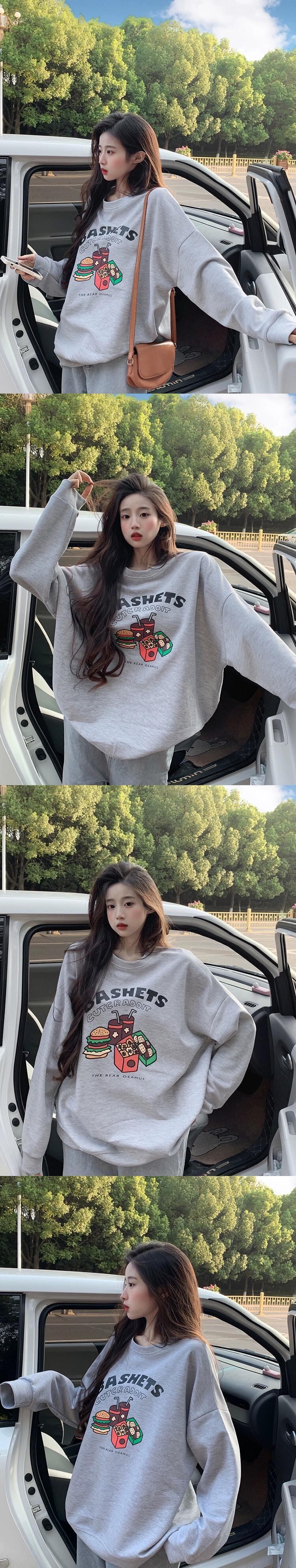 グレーのラウンドネックスウェットシャツフード付き女性の 2023 春と秋の新しいスタイルのルーズスタイル怠惰なスタイルのプリント長袖トップ ロング スプリング 春物 オータム 秋物 Oネック 7460036743492003 | framboise21