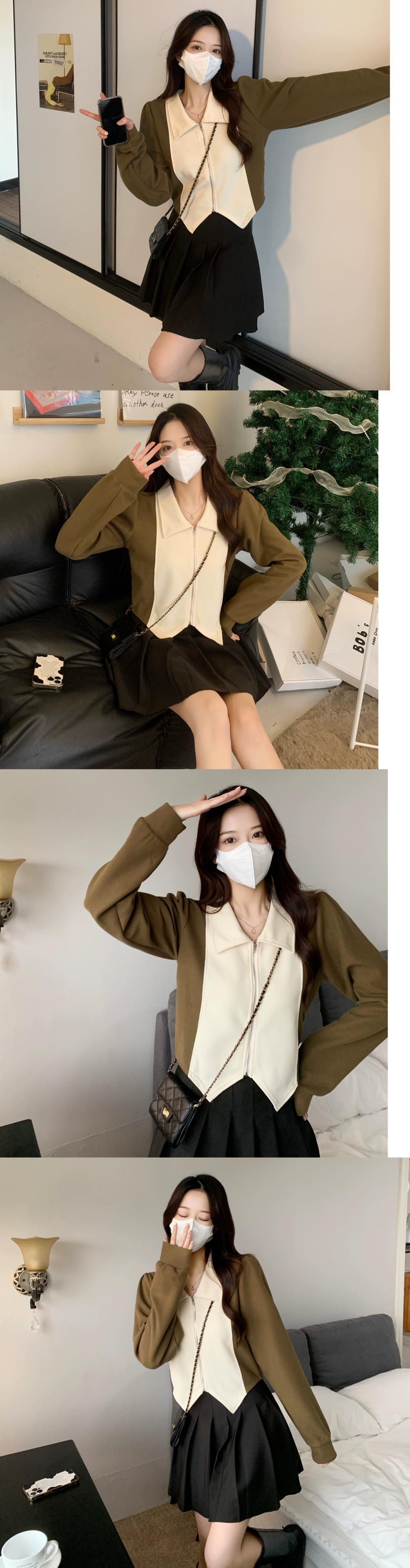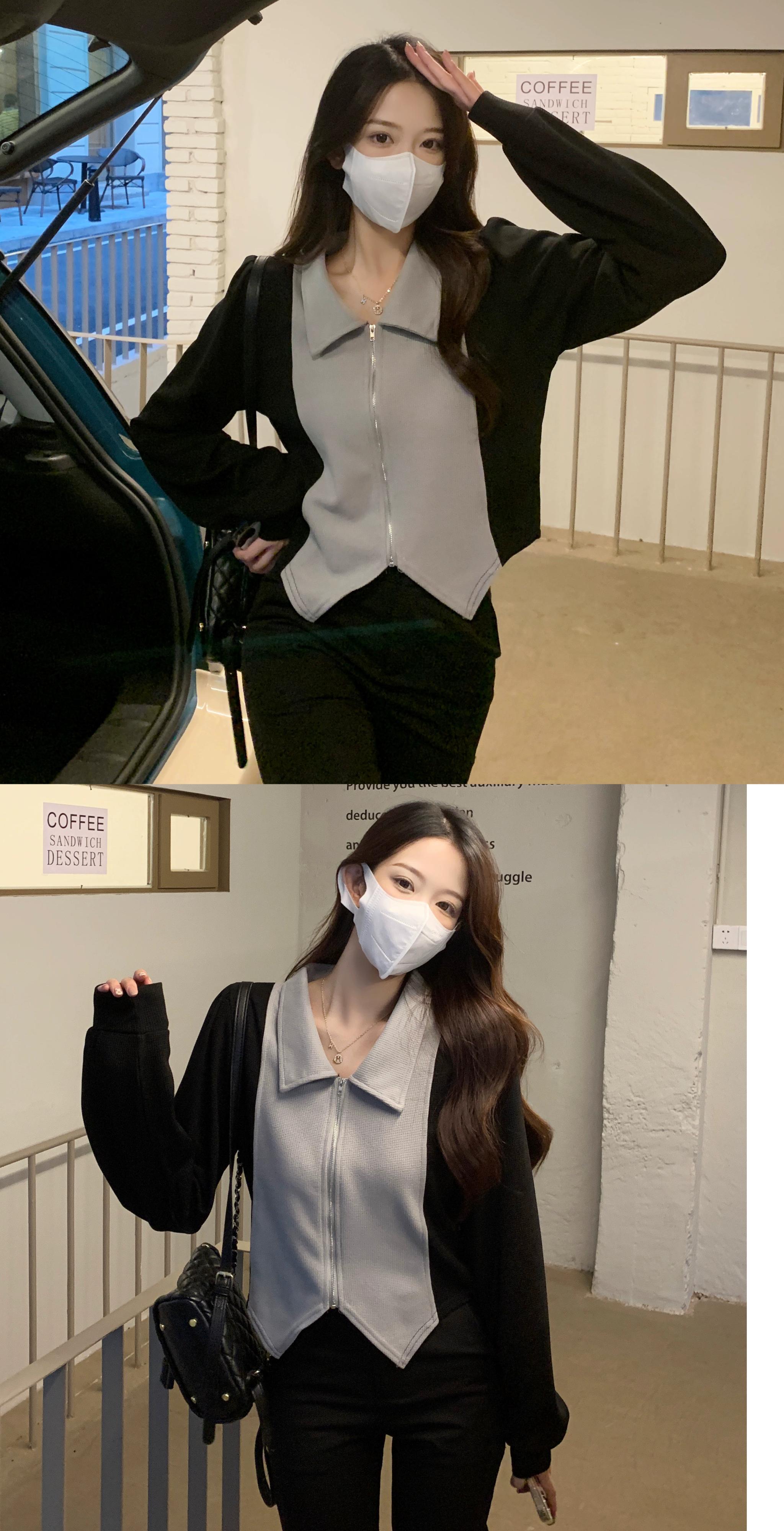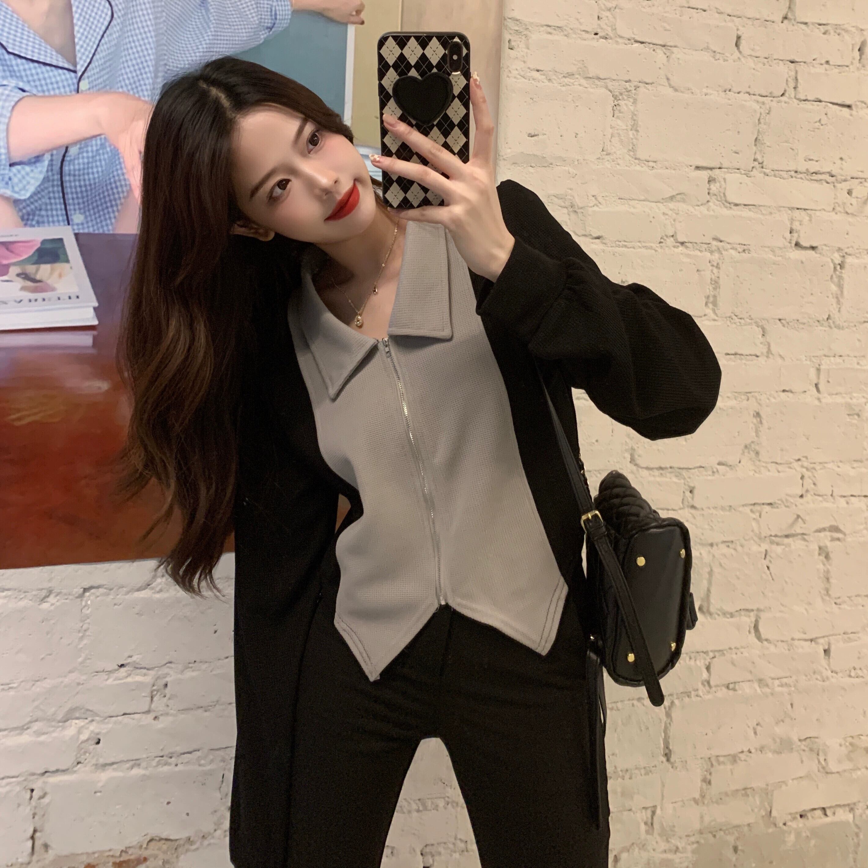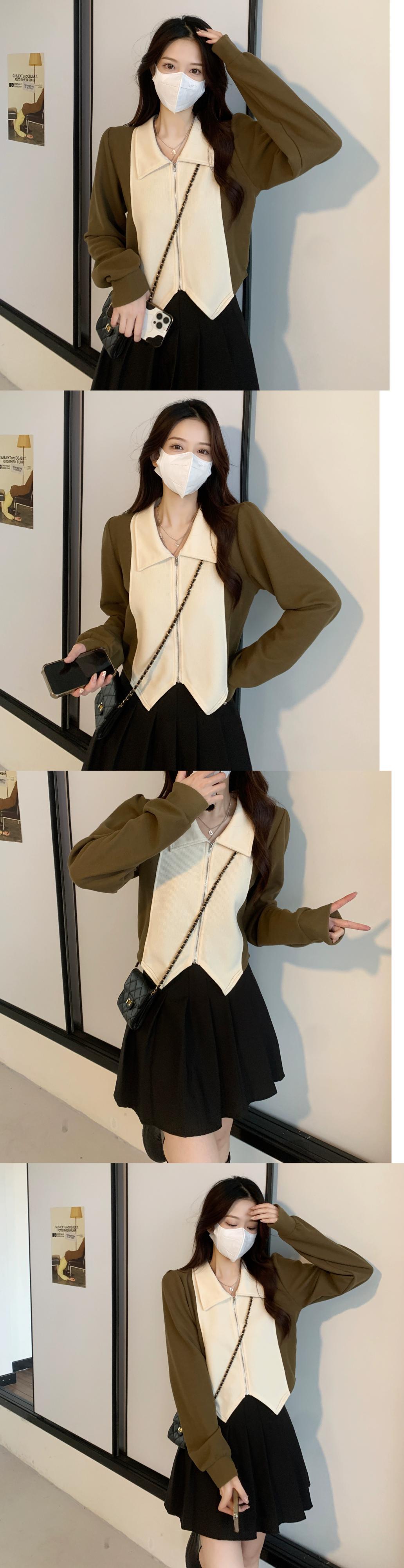 短い不規則なポロカラーカーディガンスウェットシャツ女性の春と秋のアメリカンレトロデザインスリムスリムジッパージャケット ショート スプリング 春物 オータム 秋物 7460091850241202 | framboise21