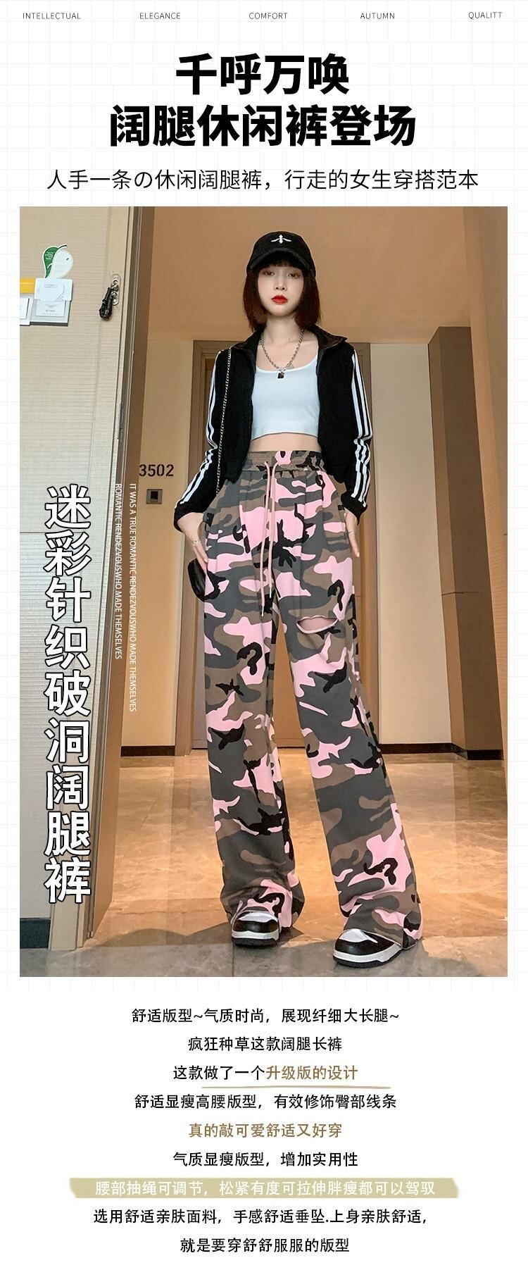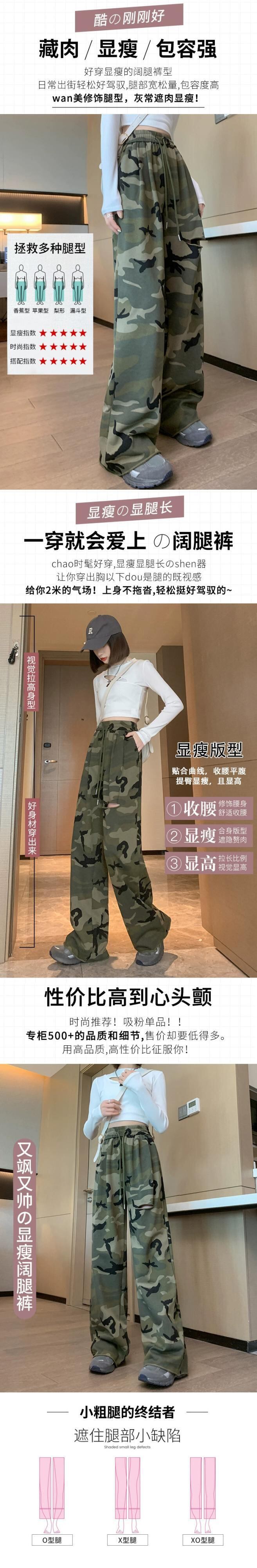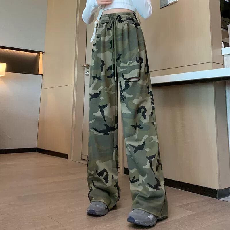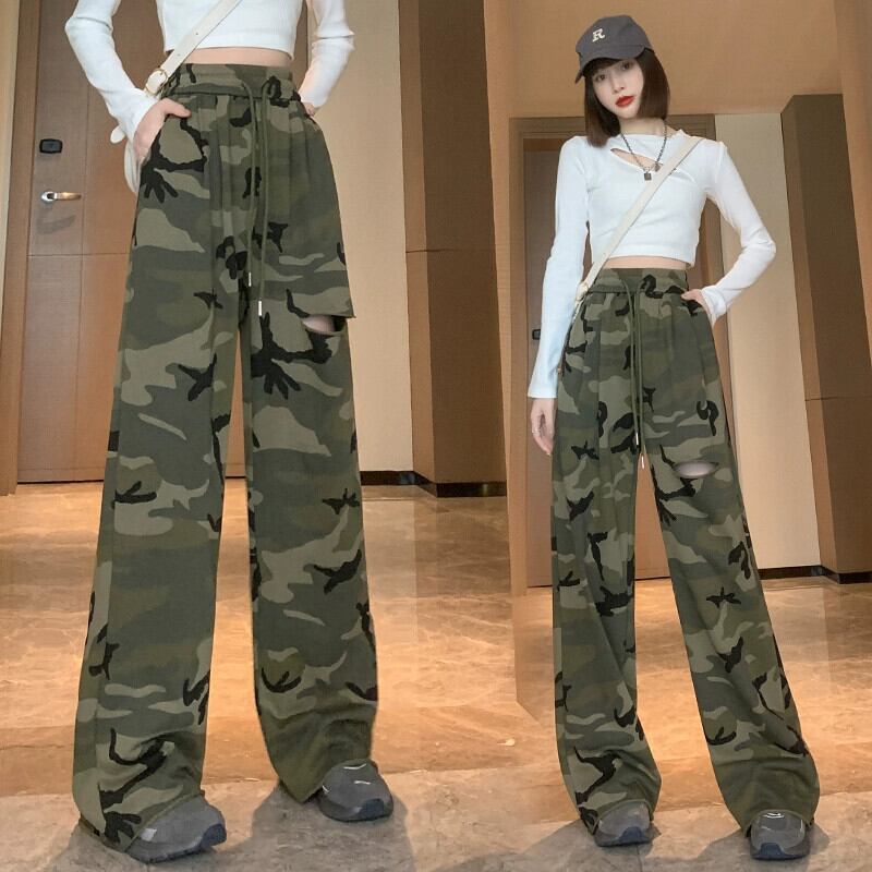 ナローリップドワイドレッグパンツレディース、春と秋スタイルのハイウエストカジュアルパンツ、ルーズストレートレッグフロアレングスモップスポーツ迷彩パンツ スプリング 春物 オータム 秋物 7460021876887781 | framboise21