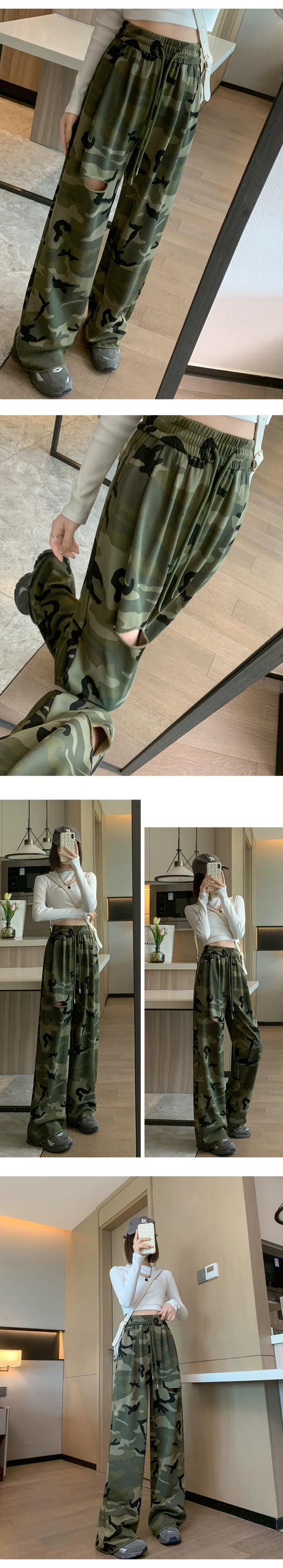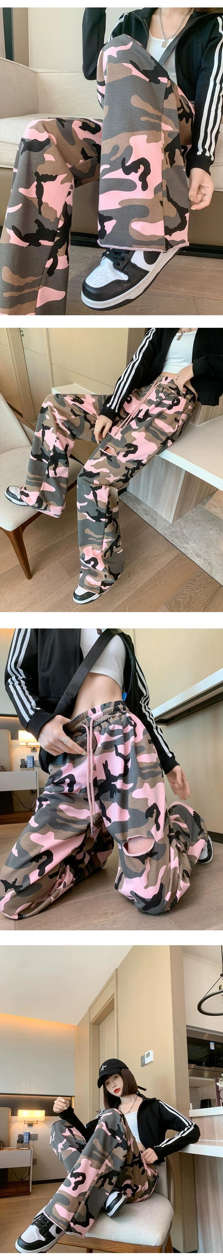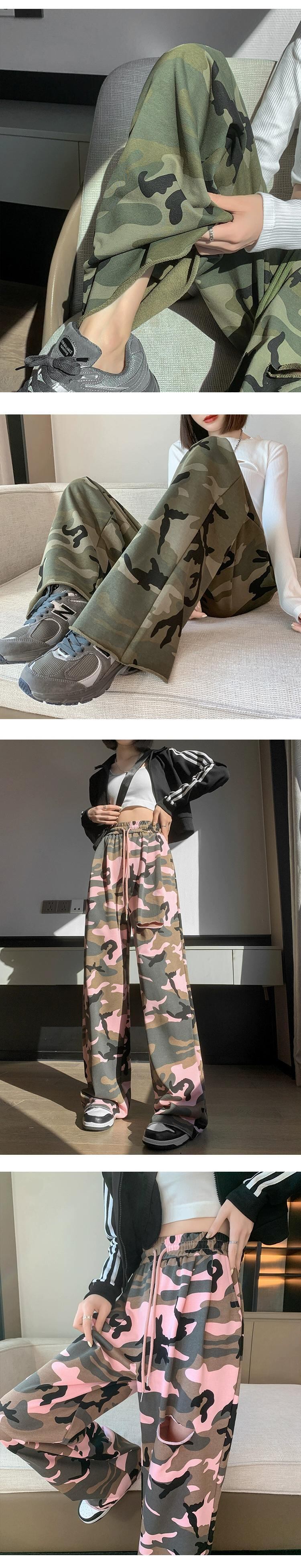 ナローリップドワイドレッグパンツレディース、春と秋スタイルのハイウエストカジュアルパンツ、ルーズストレートレッグフロアレングスモップスポーツ迷彩パンツ スプリング 春物 オータム 秋物 7460021876887781 | framboise21