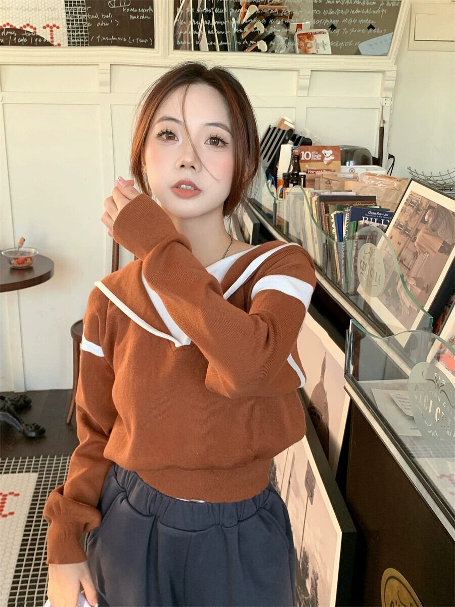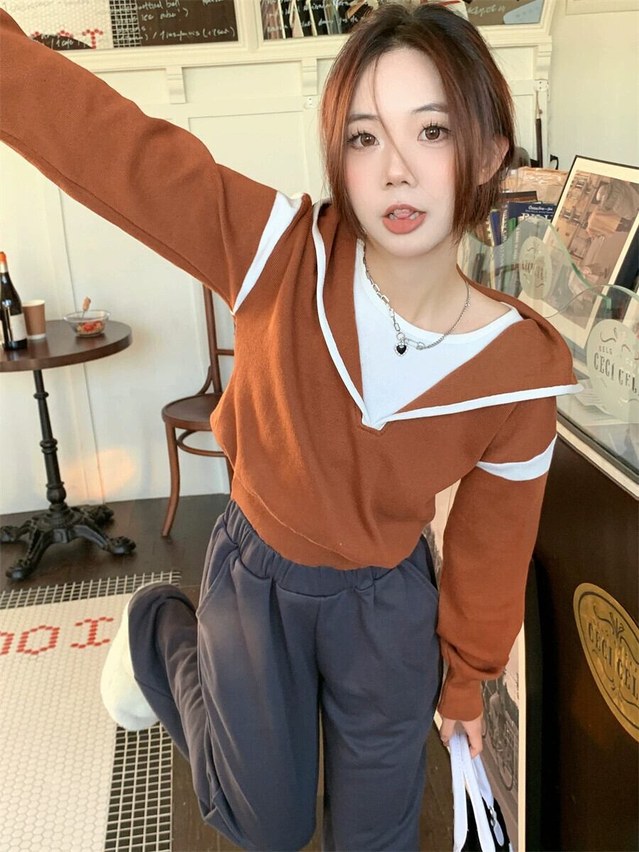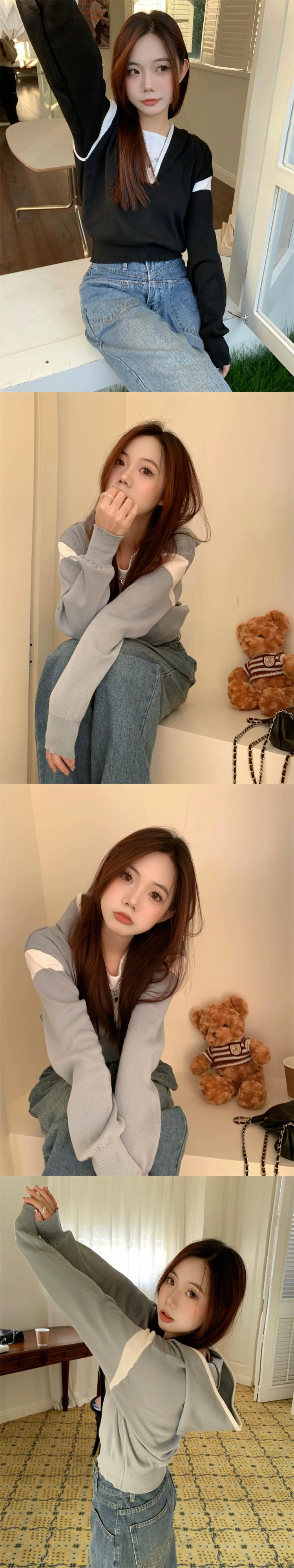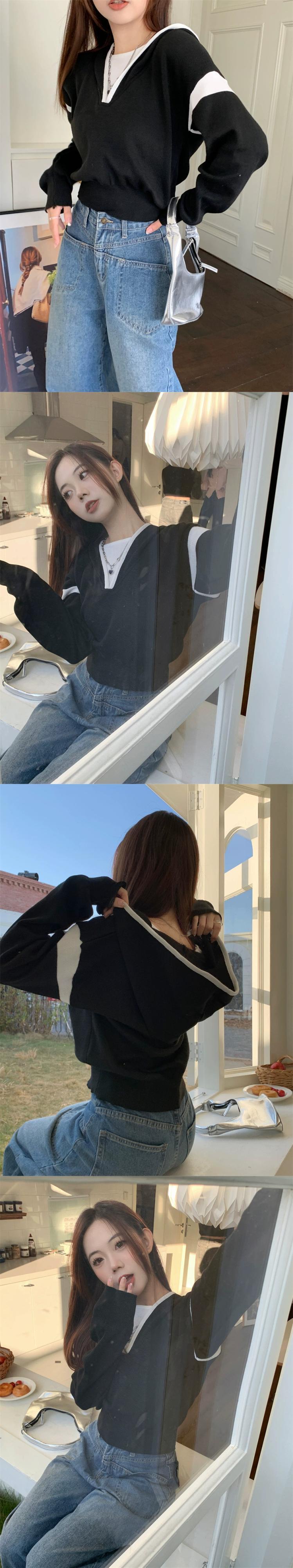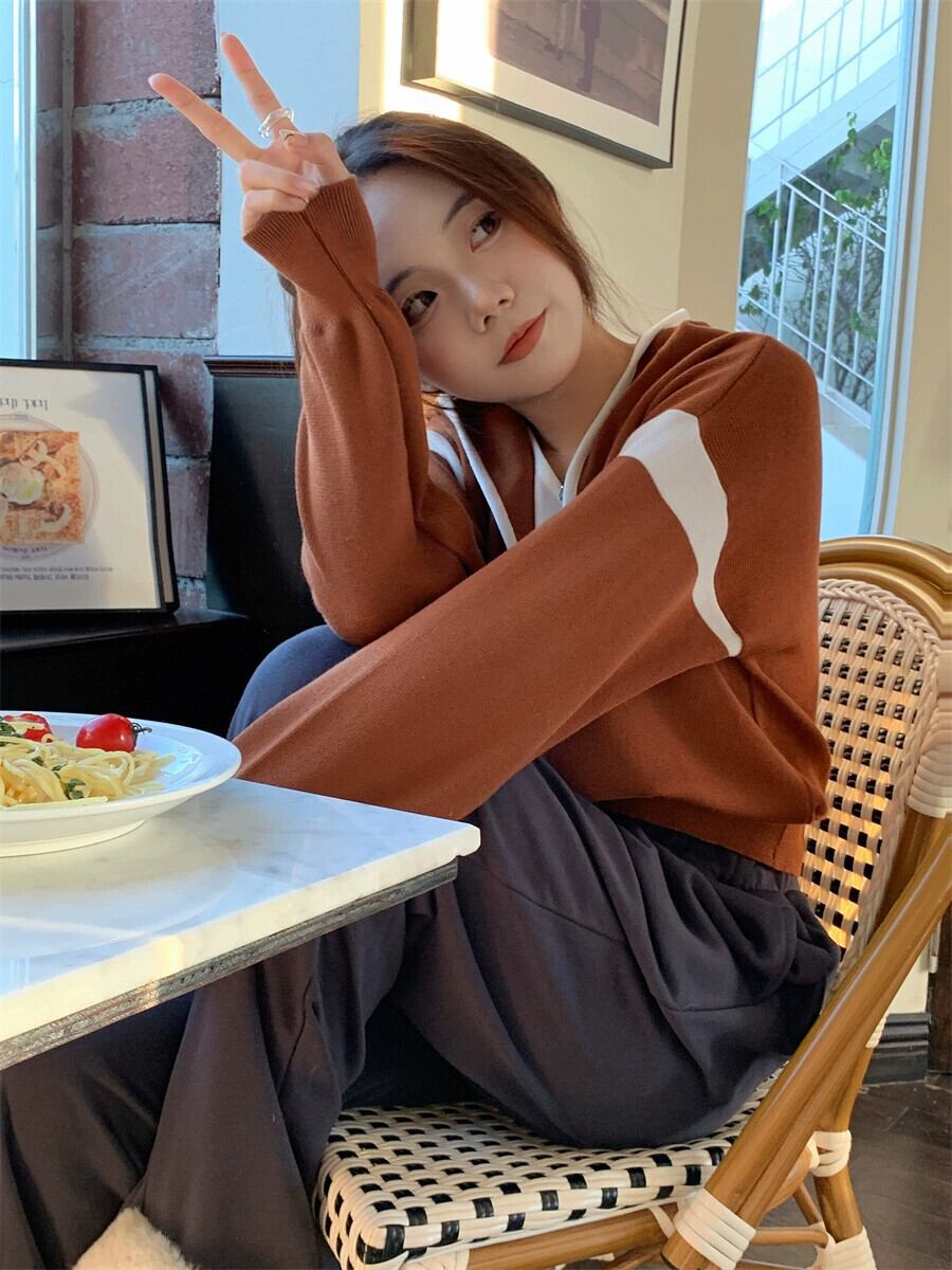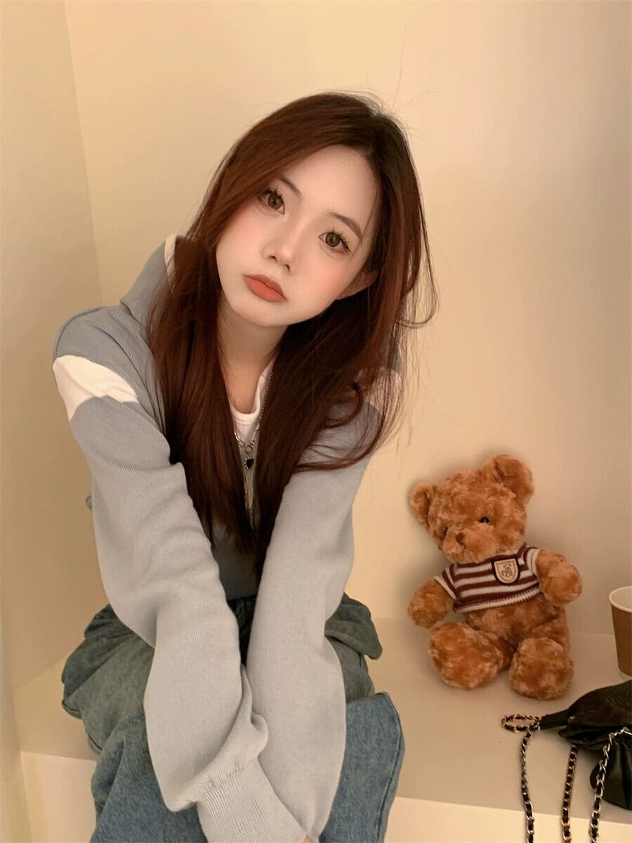 偽ツーピースフード付きセーター女性の秋と冬の 2023 新しいスタイルルーズアウターウェア小さな短い長袖セーター ショート ロング オータム 秋物 ウィンター 冬物 746008840391071 | framboise21