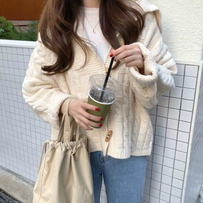 ネイビー襟ソフトワックス状太い糸セータージャケット女性秋と冬のカレッジスタイルルーズアウターショート長袖ニットカーディガン ロング オータム 秋物 ウィンター 冬物 7460064632652382 | framboise21