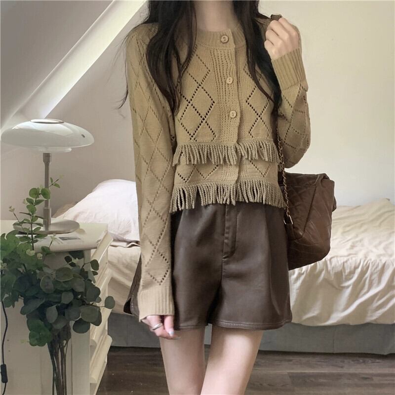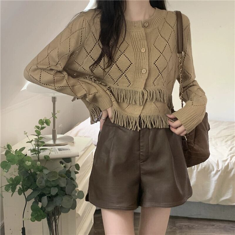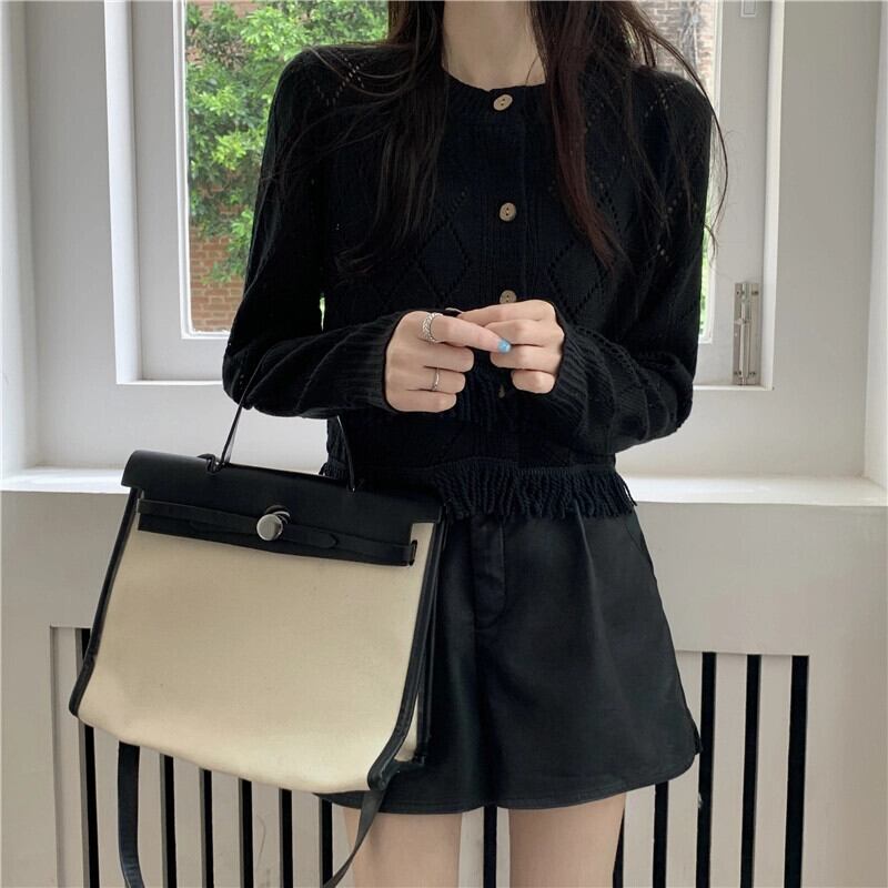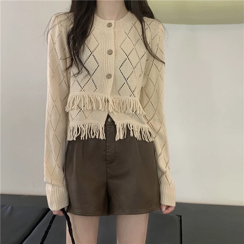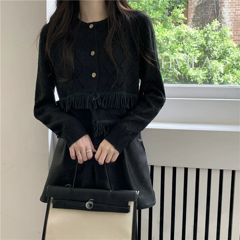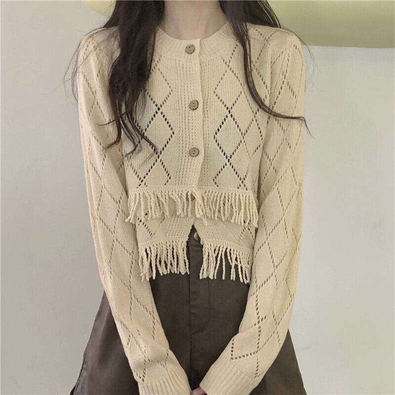 秋冬のテルショートニットカーディガンジャケットの女性、ファッショナブルで上品なデザイン、ゆったりとしたアウターウェア、中空の薄いセーター オータム 秋物 ウィンター 冬物 7460061461388765 | framboise21