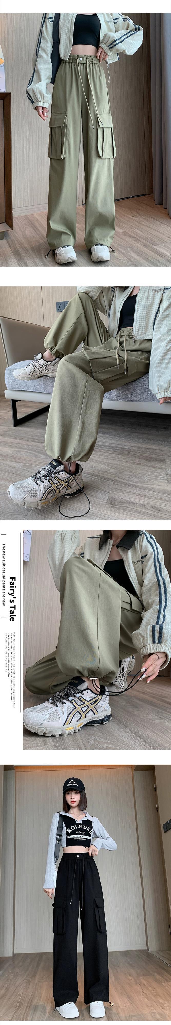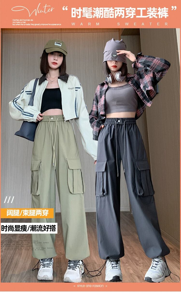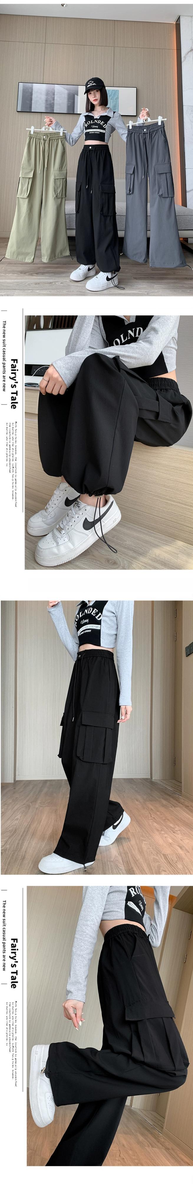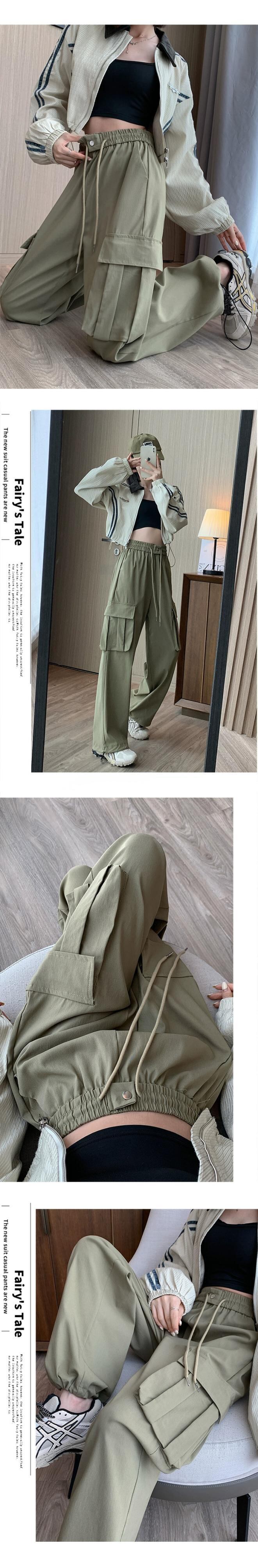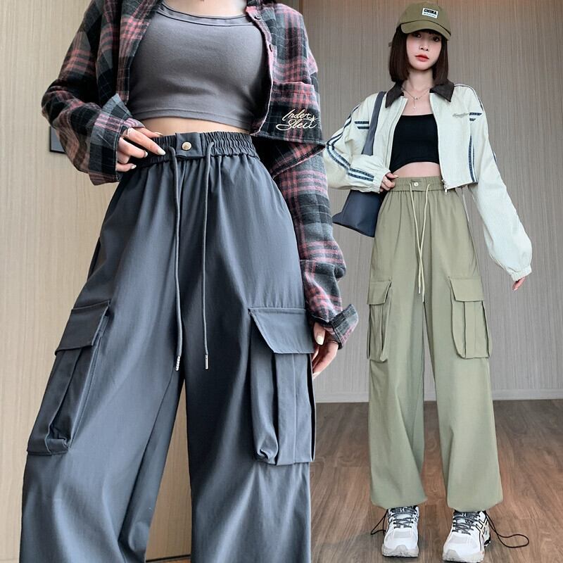 ドローストリングアンクルオーバーオールレディース、春と秋のアメリカンハイストリートカジュアルパンツ、ルーズストレートハイウエストドレープワイドレッグパンツ ハイウェスト スプリング 春物 オータム 秋物 ワイドパンツ 7460090461536462 | framboise21