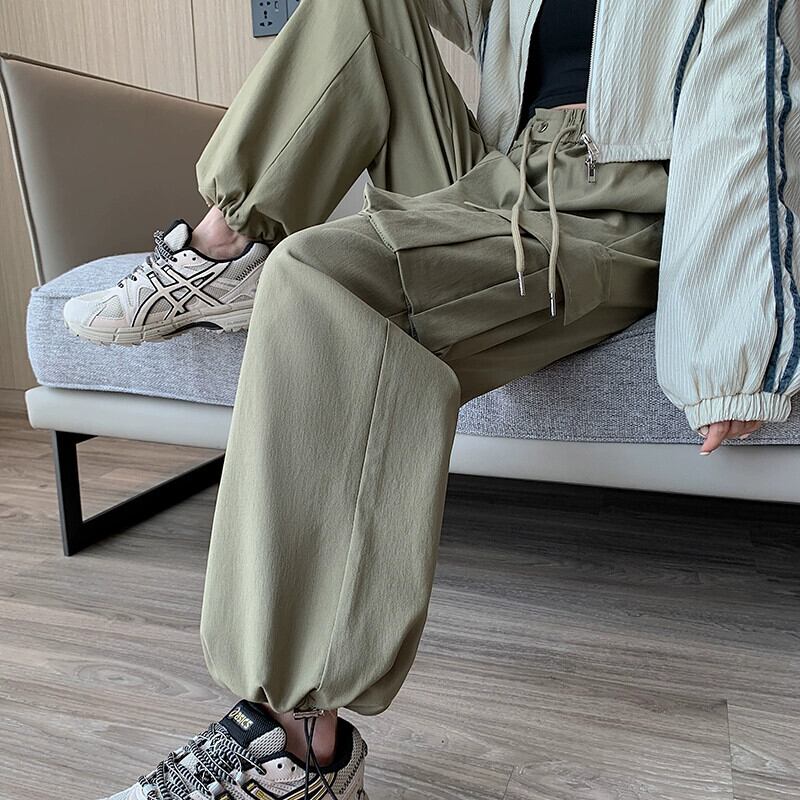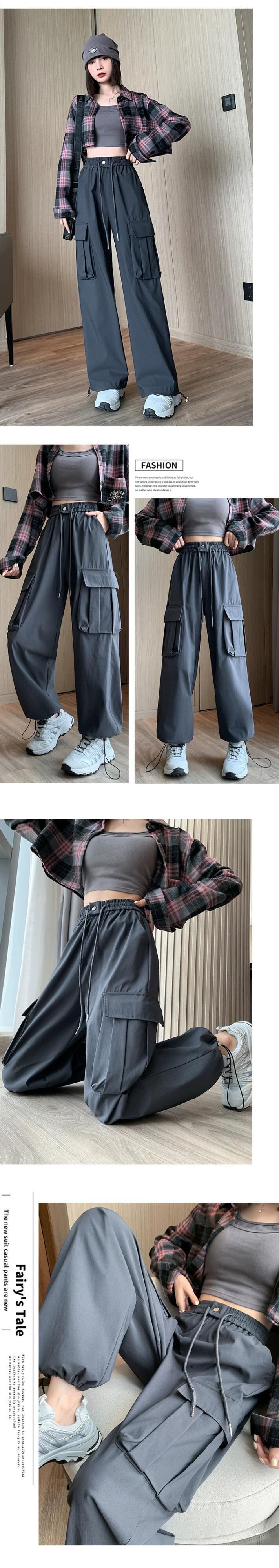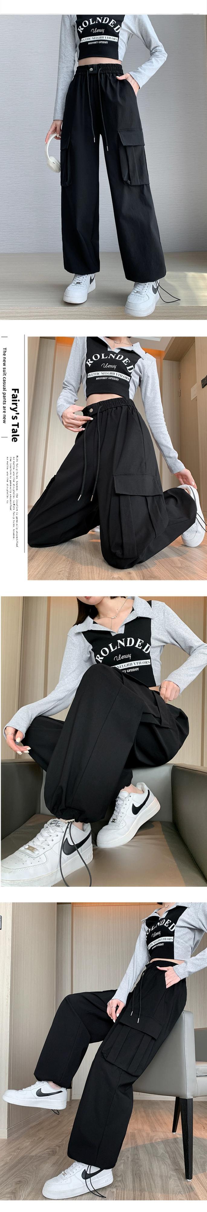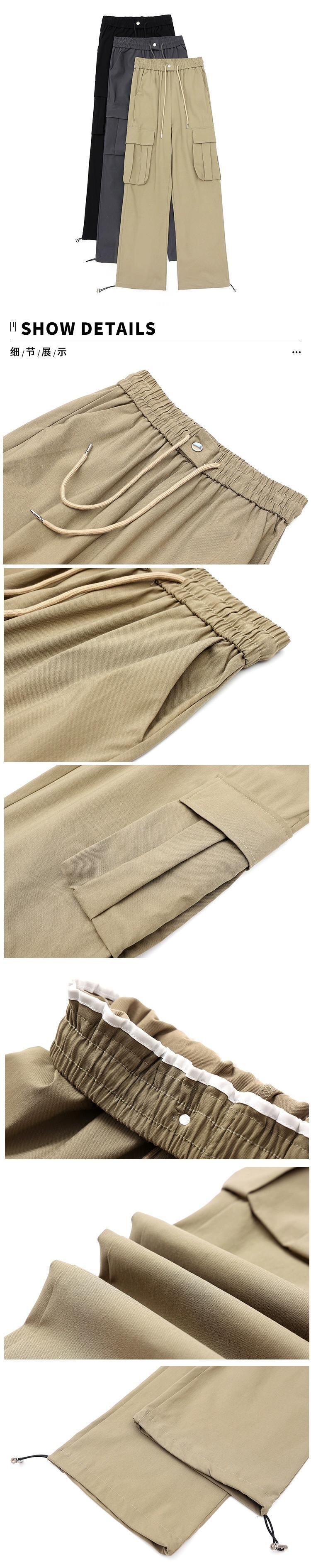 ドローストリングアンクルオーバーオールレディース、春と秋のアメリカンハイストリートカジュアルパンツ、ルーズストレートハイウエストドレープワイドレッグパンツ ハイウェスト スプリング 春物 オータム 秋物 ワイドパンツ 7460090461536462 | framboise21
