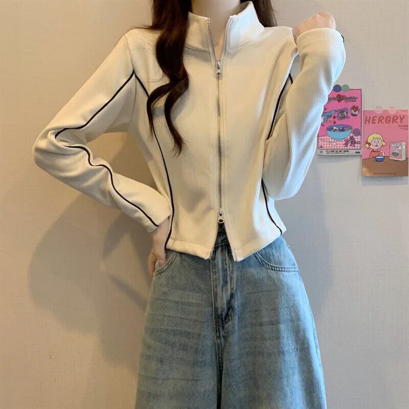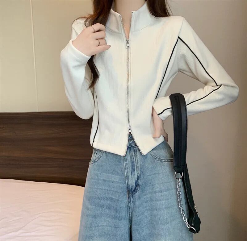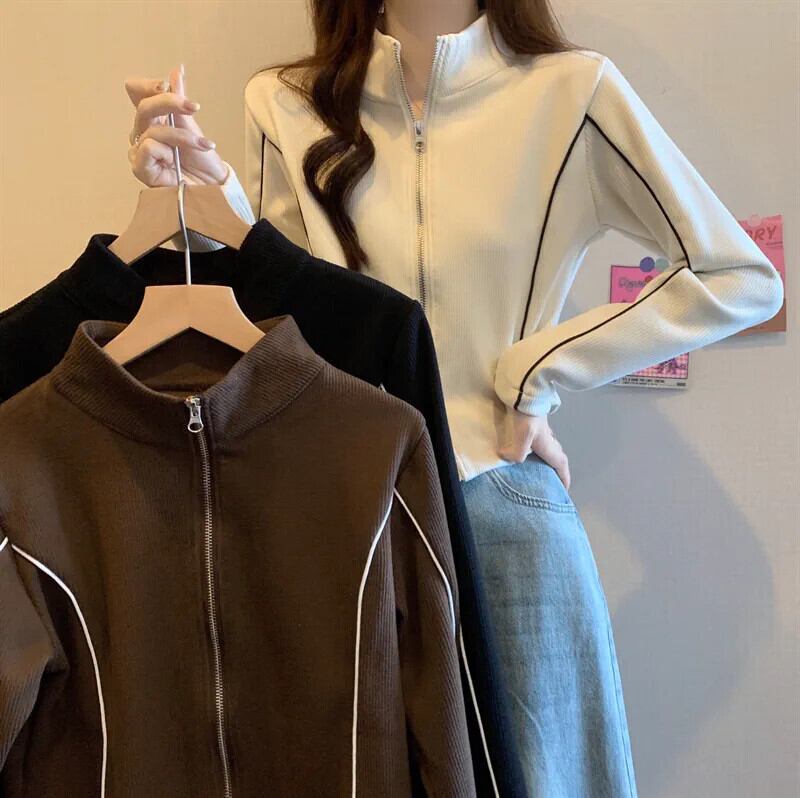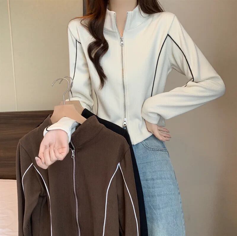 小さな短いジッパースタンドカラーカーディガントレーナー女性春と秋のレトロなデザインスリムコーデュロイジャケットトレンディな ショート スプリング 春物 オータム 秋物 7460064015666387 | framboise21