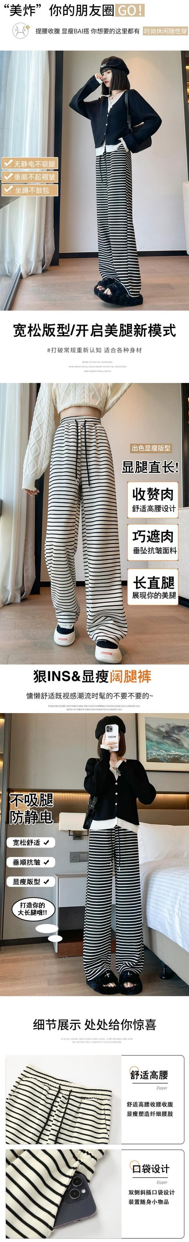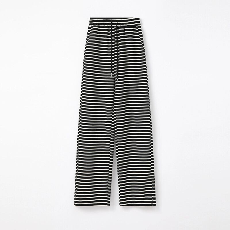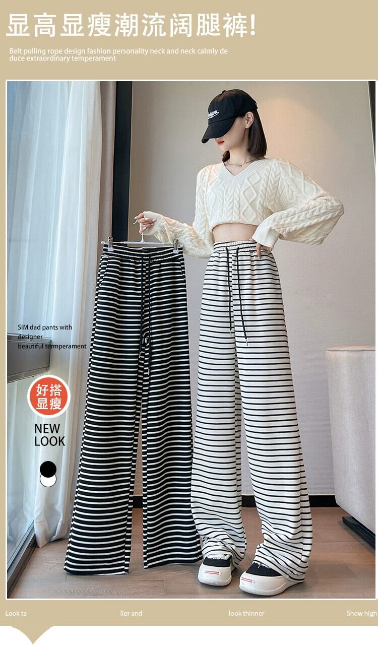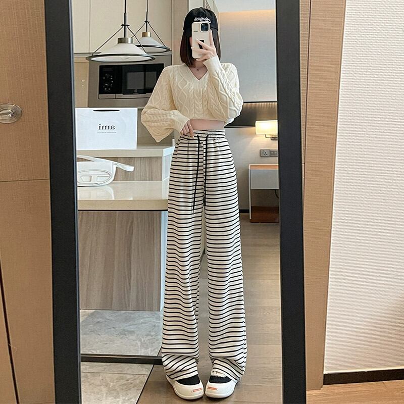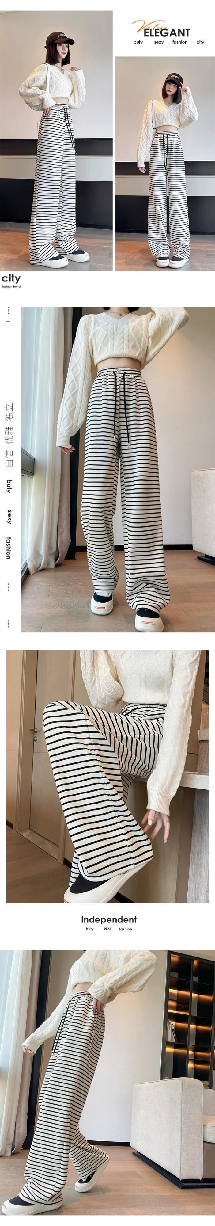 厚みのあるストライプの狭いワイドレッグパンツの女性、春と秋のスタイル、小さい、ルーズ、ストレート、ハイウエスト、フロアレングスのカジュアルパンツ スプリング 春物 オータム 秋物 7460060867641210 | framboise21