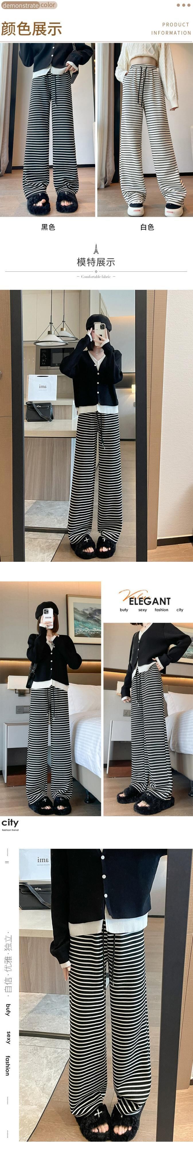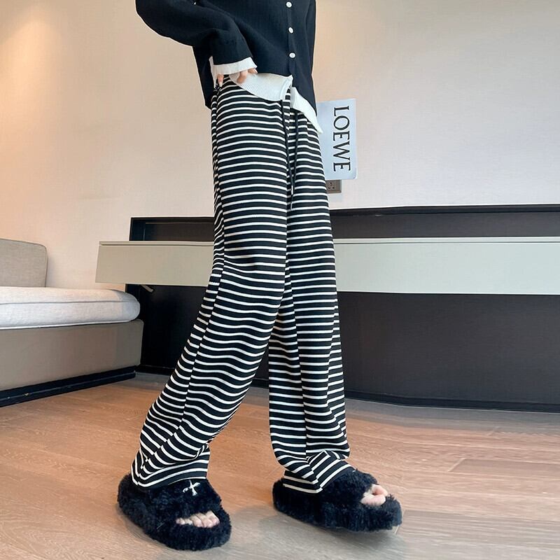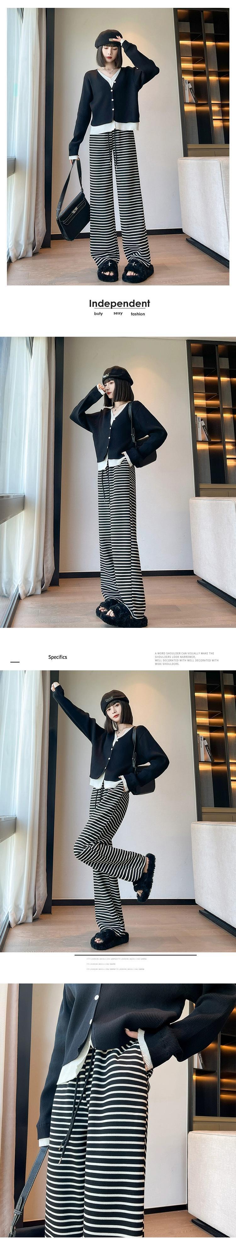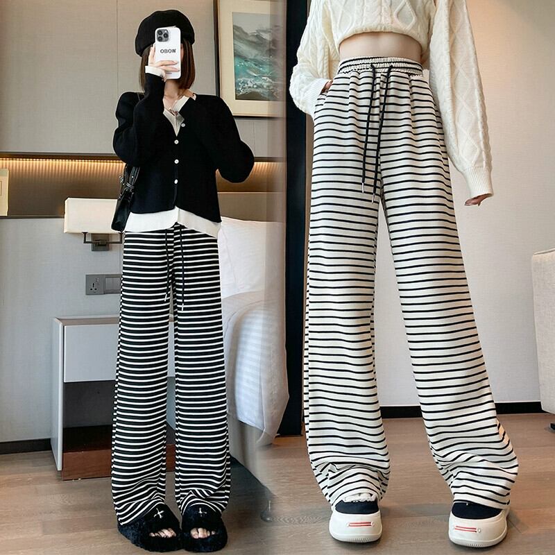 厚みのあるストライプの狭いワイドレッグパンツの女性、春と秋のスタイル、小さい、ルーズ、ストレート、ハイウエスト、フロアレングスのカジュアルパンツ スプリング 春物 オータム 秋物 7460060867641210 | framboise21
