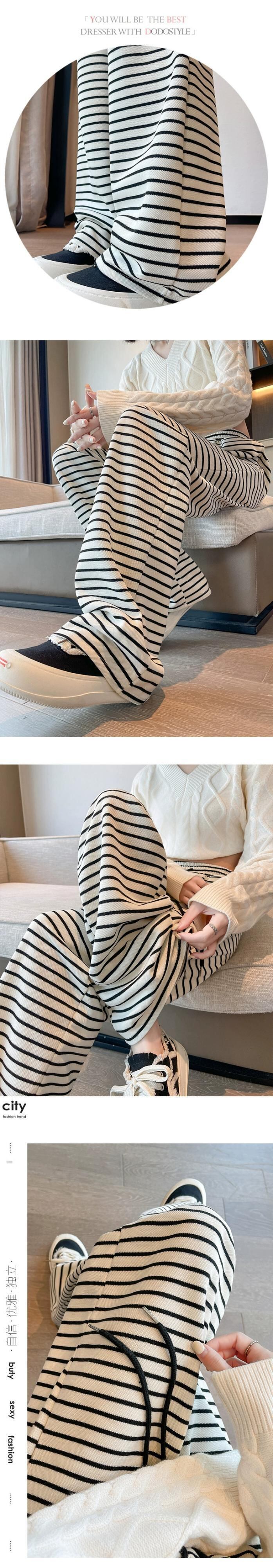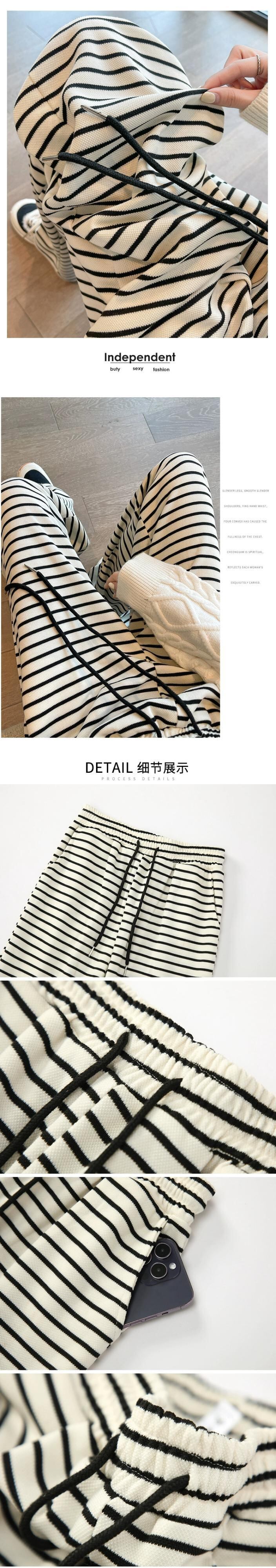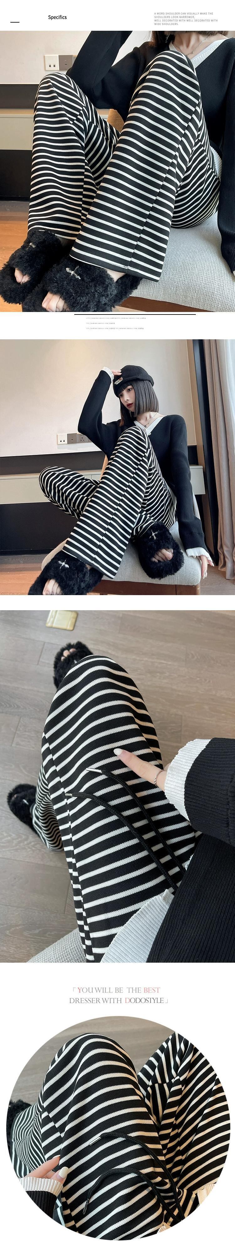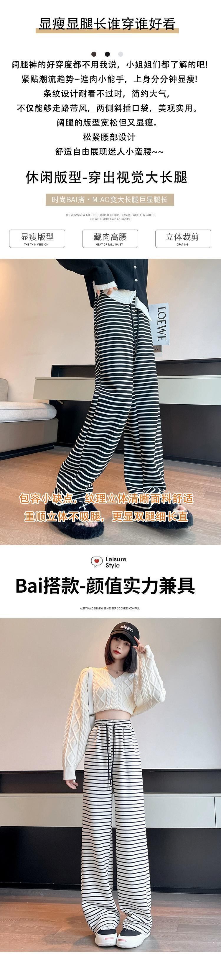 厚みのあるストライプの狭いワイドレッグパンツの女性、春と秋のスタイル、小さい、ルーズ、ストレート、ハイウエスト、フロアレングスのカジュアルパンツ スプリング 春物 オータム 秋物 7460060867641210 | framboise21