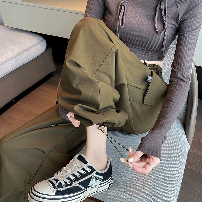 アメリカンミリタリーグリーンレギンスオーバーオール女性2023春と秋の新しいカジュアルルーズハイウエストワイドレッグスポーツパンツトレンディ スプリング 春物 オータム 秋物 7460083085048094 | framboise21