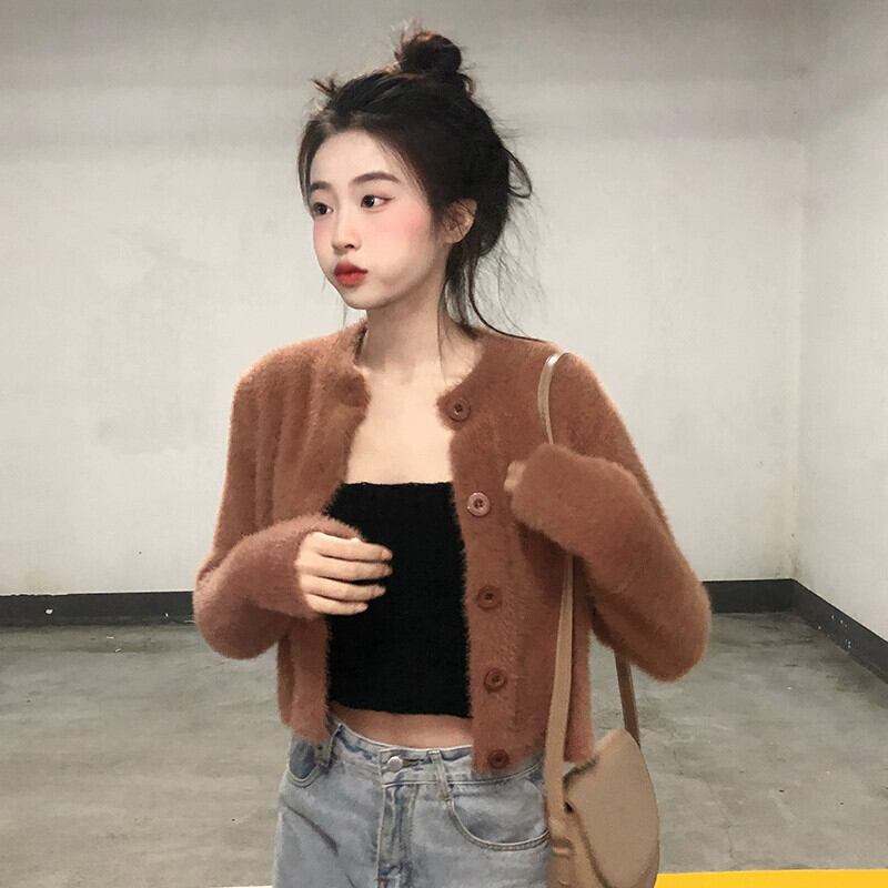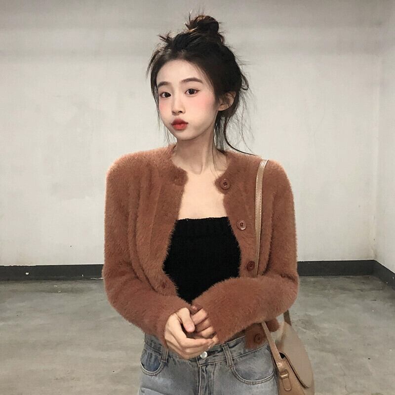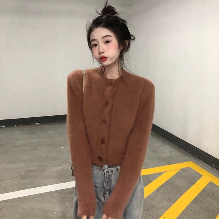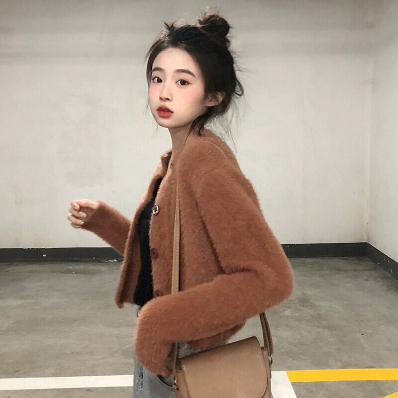 ミンクベルベットセーターカーディガン女性 2023 新しい秋と冬のルーズアウタースモールハイウエストショートニットジャケット ハイウェスト オータム 秋物 ウィンター 冬物 746006421865206 | framboise21