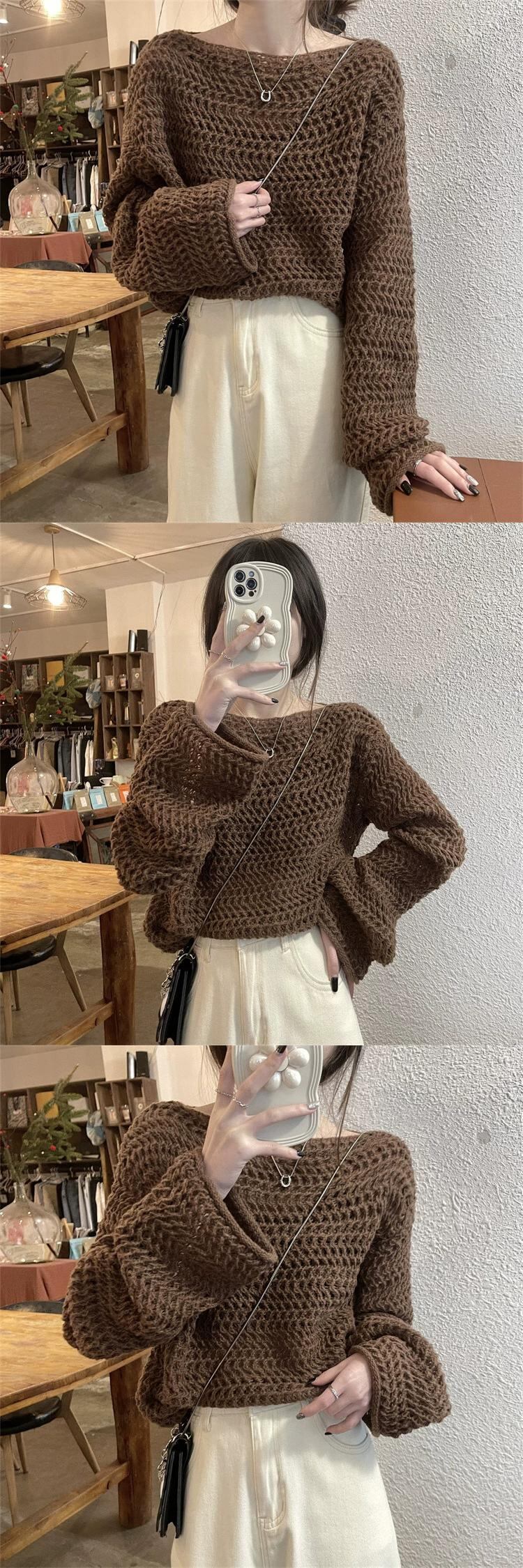 今年の人気の美しいセーターの女性の秋冬 2023 新しいフランスのルーズなアウターウェア怠惰な中空セータートップス オータム 秋物 ウィンター 冬物 7460045109387111 | framboise21