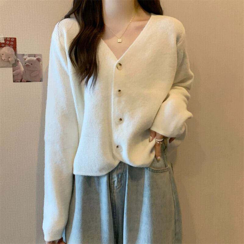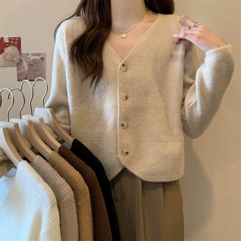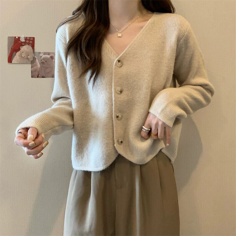 V ネックカーディガンセータージャケット女性 2023 新しい秋と冬のアウターウェア怠惰なルーズ多目的ショート長袖セーター ロング オータム 秋物 ウィンター 冬物 Vネック 7460021081302316 | framboise21