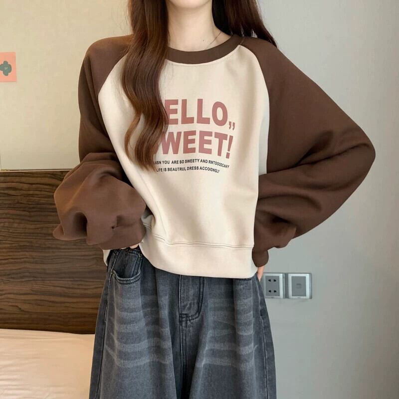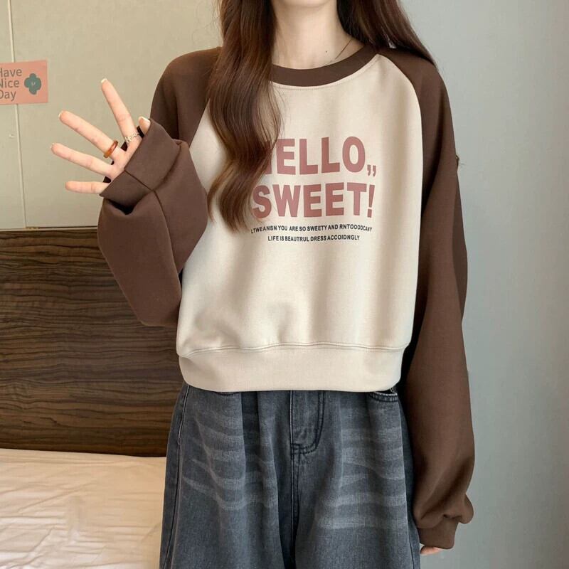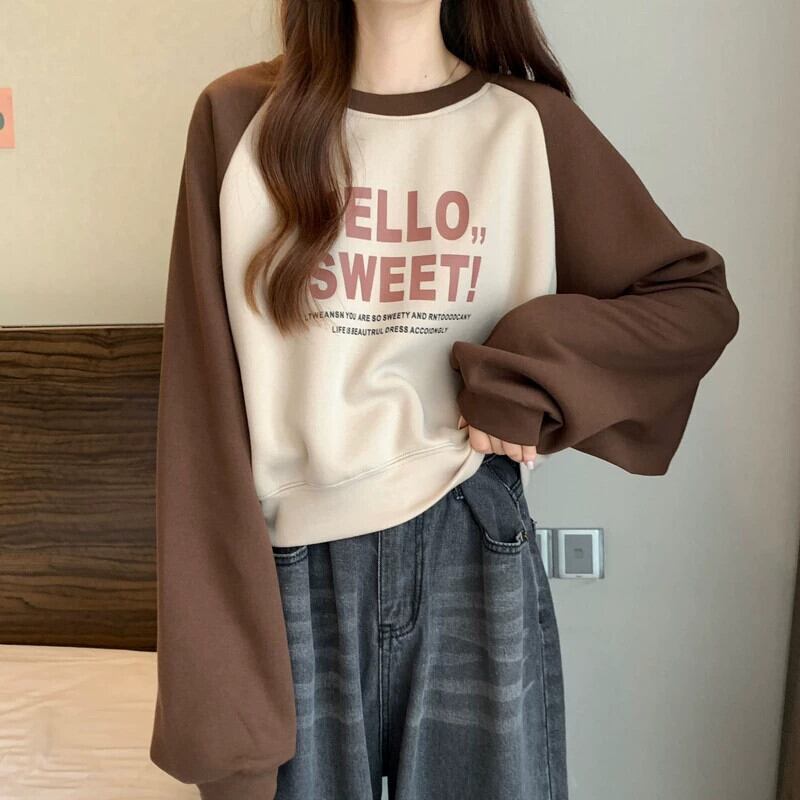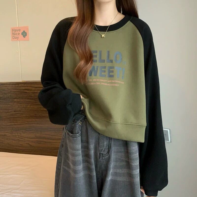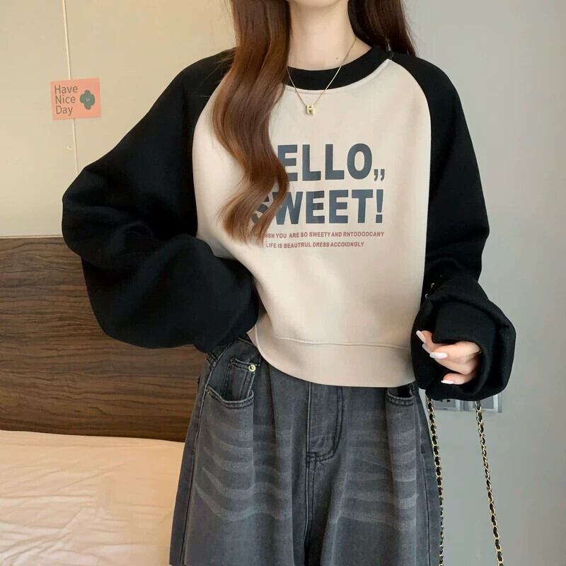 ラグランスリーブショートトレーナー女性春と秋 2023 新しいアメリカンレトロ小さなルーズプルオーバー長袖トップ ロング スプリング 春物 オータム 秋物 7460068104868741 | framboise21