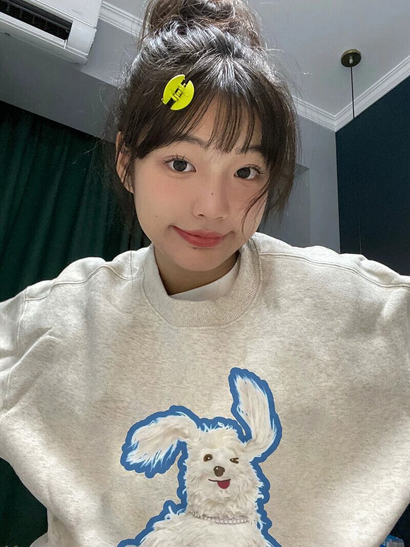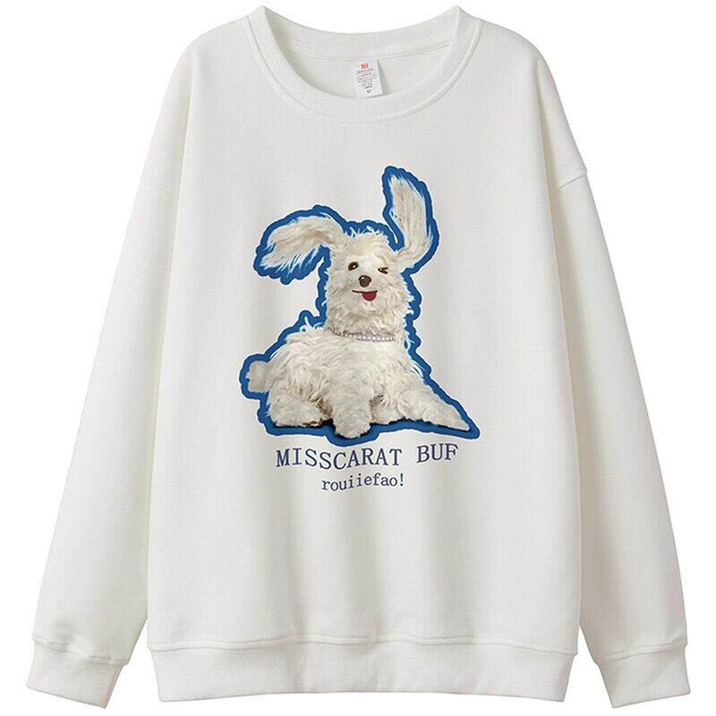 フードレスプリントスウェットシャツの女性の春と秋 2023 新デザインカジュアルルーズプルオーバーラウンドネックジャケットトレンディなイン スプリング 春物 オータム 秋物 Oネック 7460032770246500 | framboise21