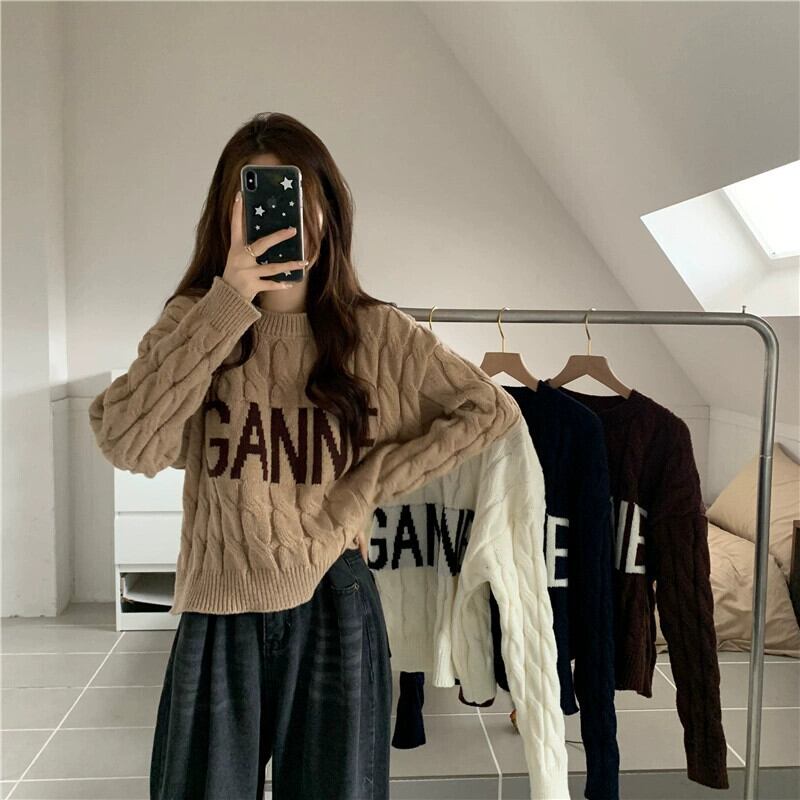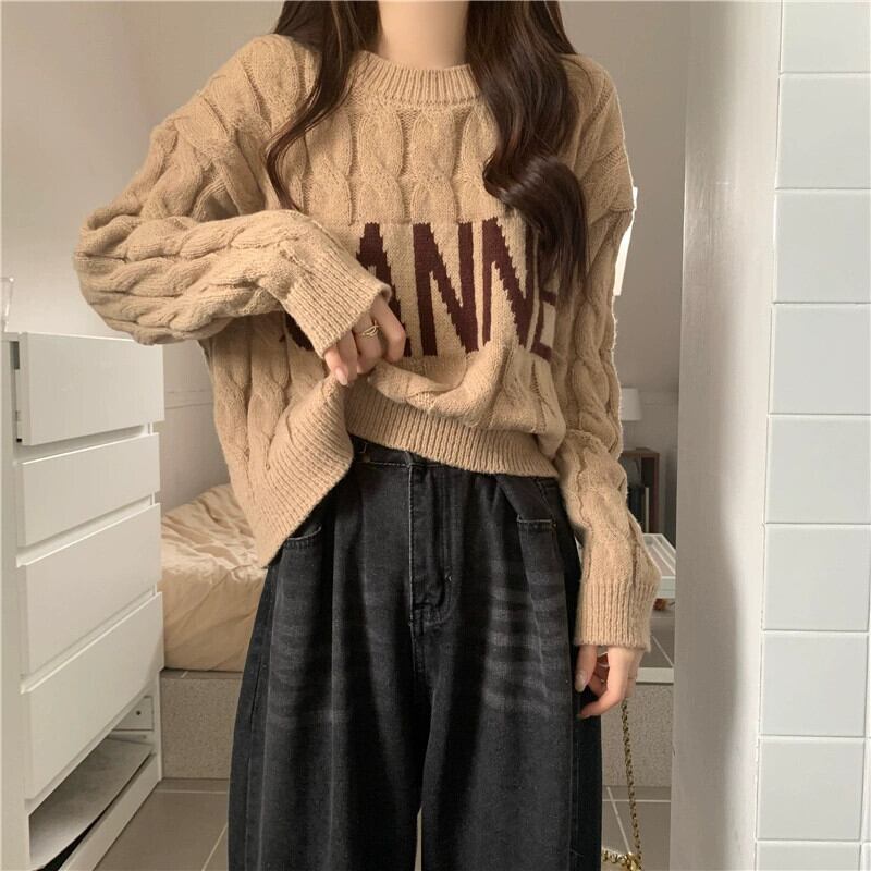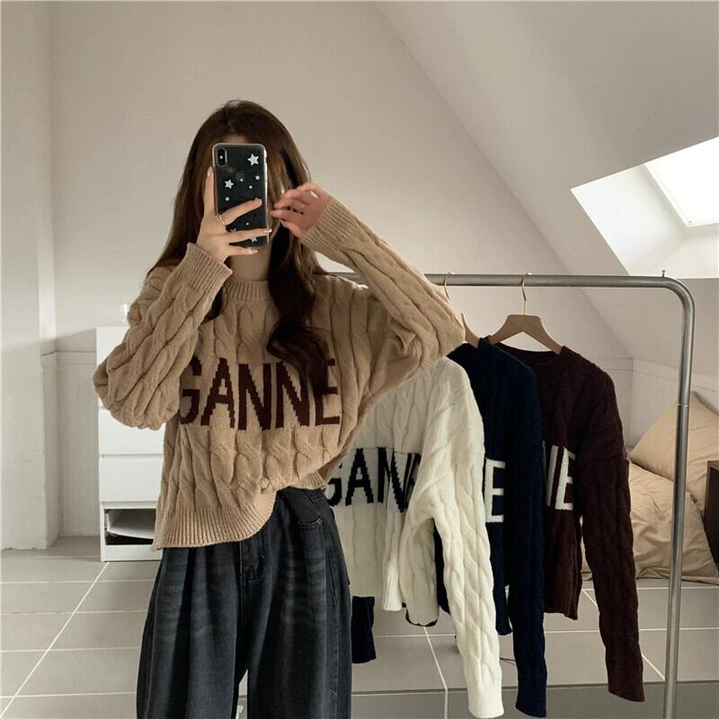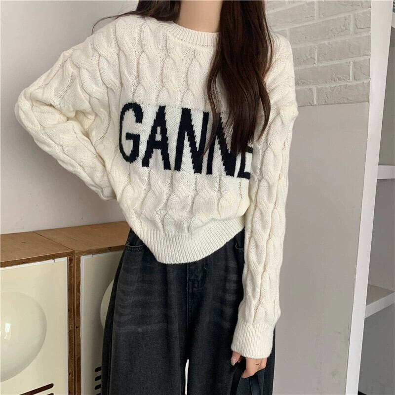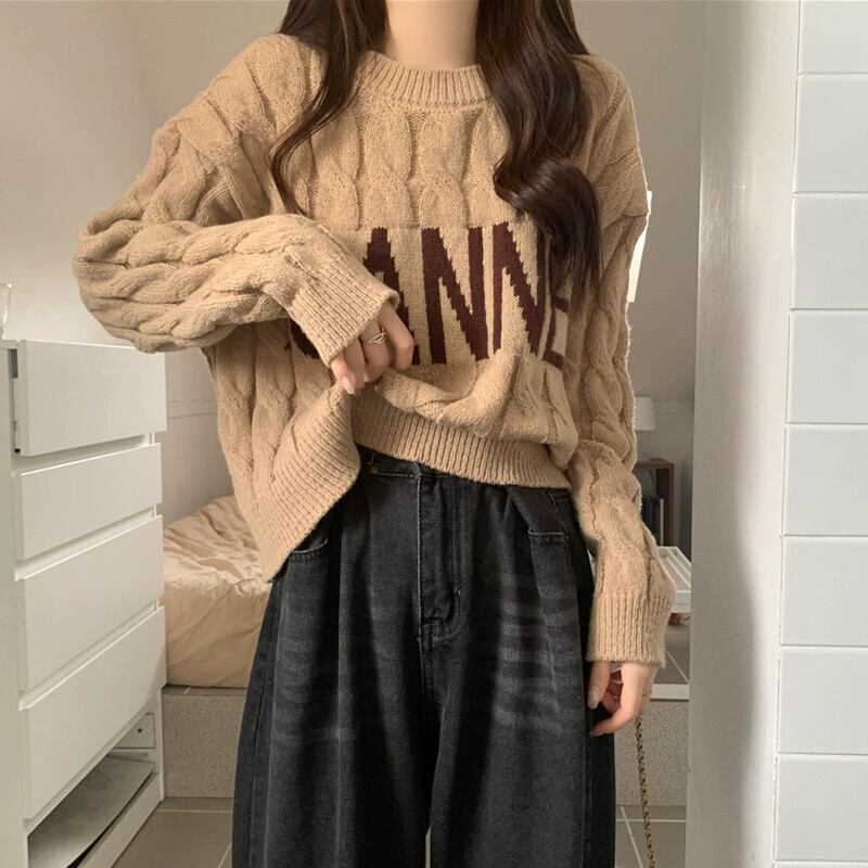 アメリカンレトロなハイウエストショートツイストセーターの女性の秋と冬スタイルのルーズでファッショナブルなアウターウェア肥厚プルオーバーニットウェア オータム 秋物 ウィンター 冬物 7460068265559134 | framboise21
