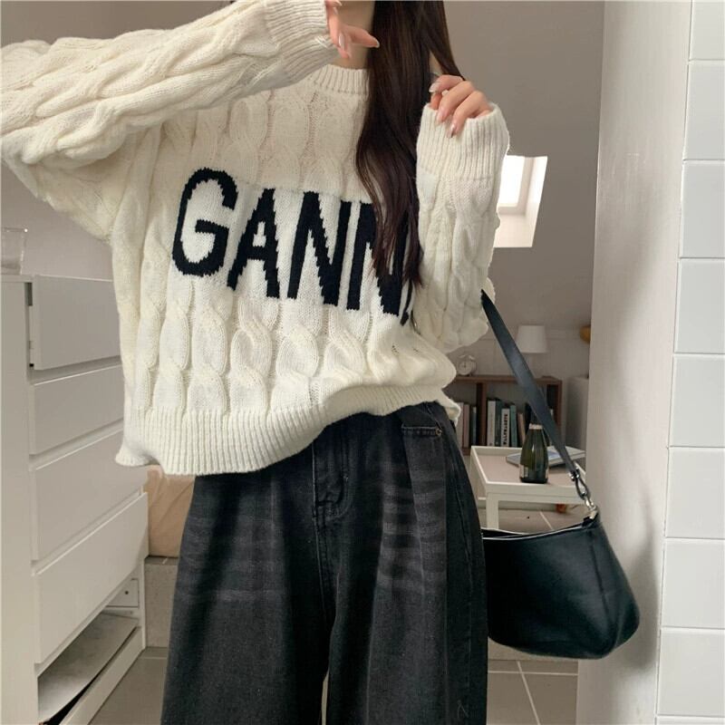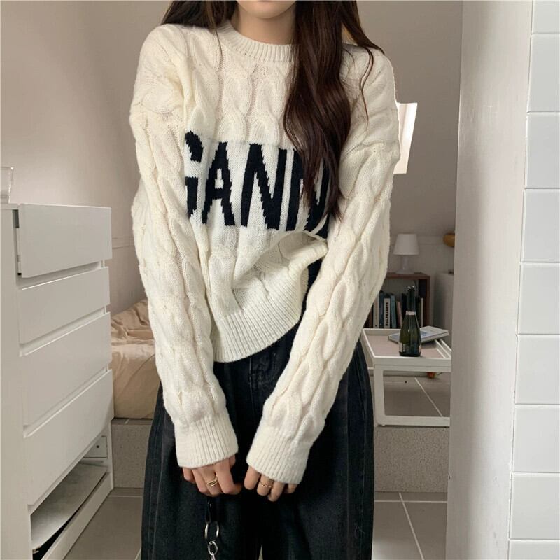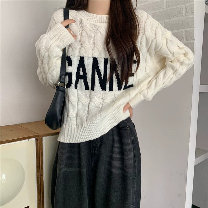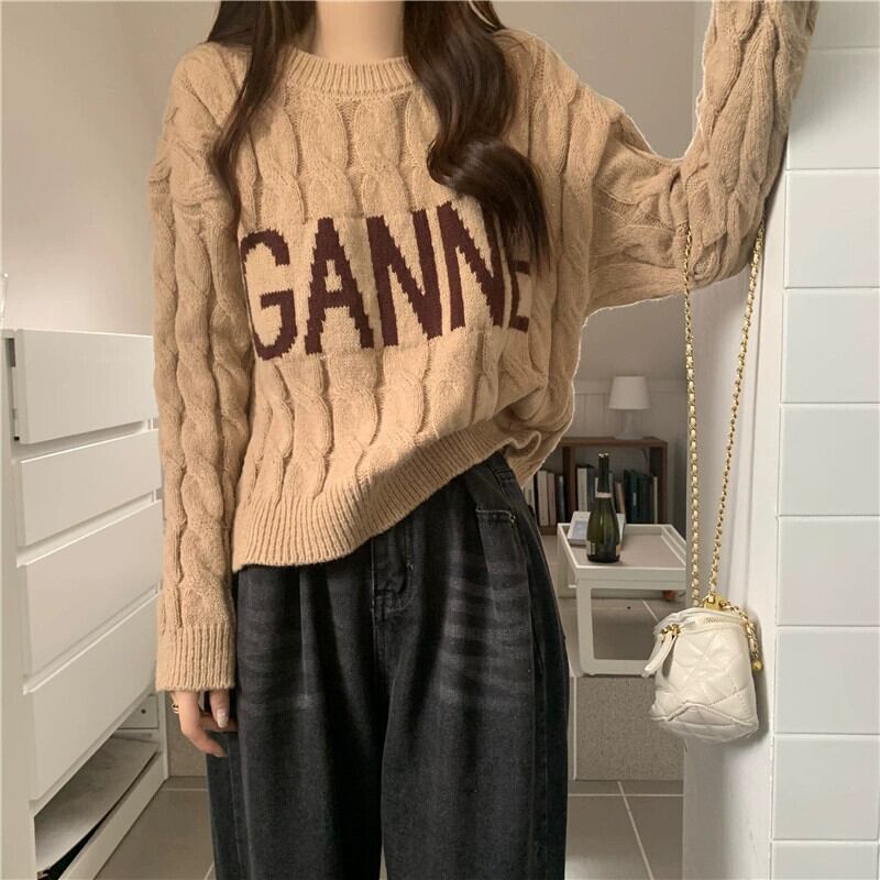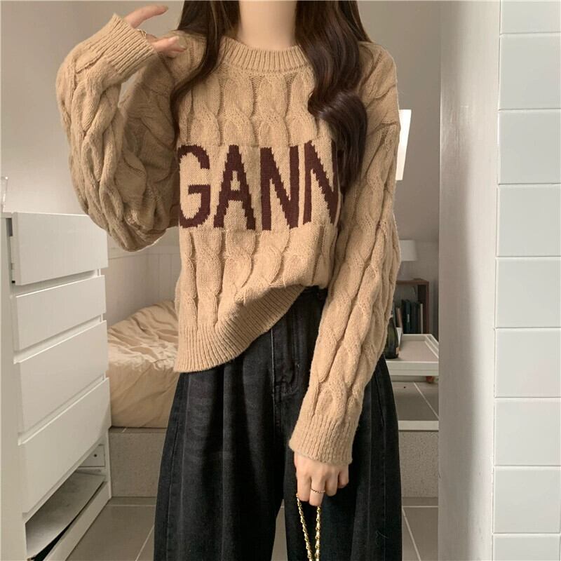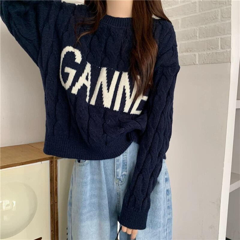 アメリカンレトロなハイウエストショートツイストセーターの女性の秋と冬スタイルのルーズでファッショナブルなアウターウェア肥厚プルオーバーニットウェア オータム 秋物 ウィンター 冬物 7460068265559134 | framboise21