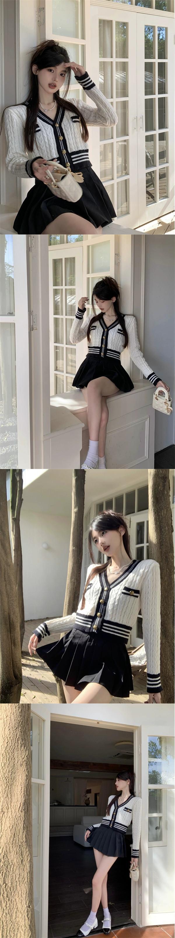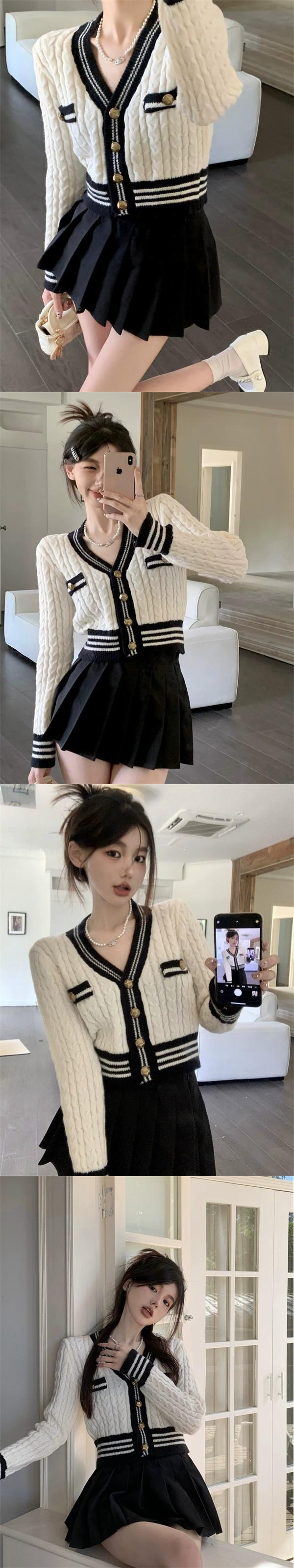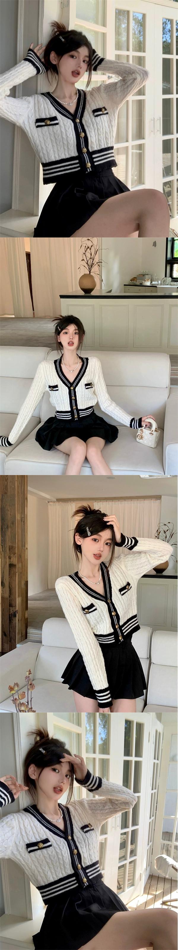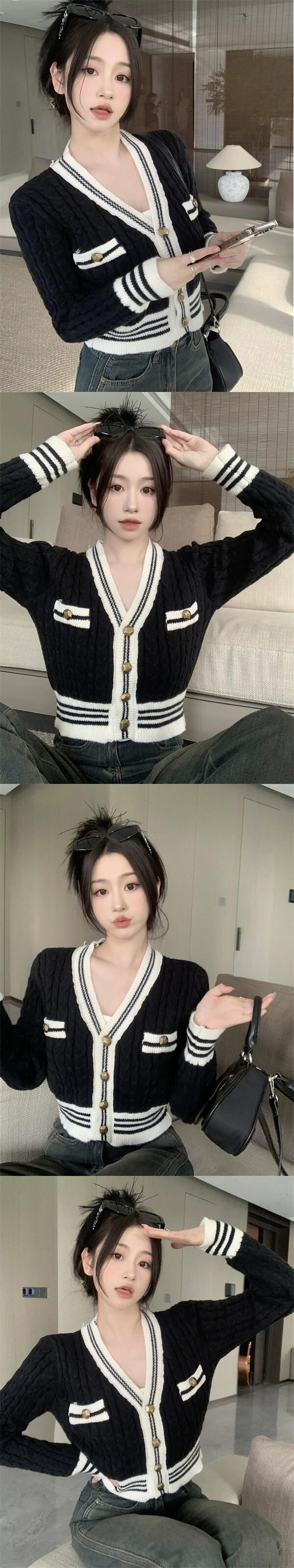 秋冬のVネックツイストセータージャケット女性、小さな香りのデザイン、スリムなアウターウェア、短いニットカーディガン小人 ショート オータム 秋物 ウィンター 冬物 7460098556801066 | framboise21