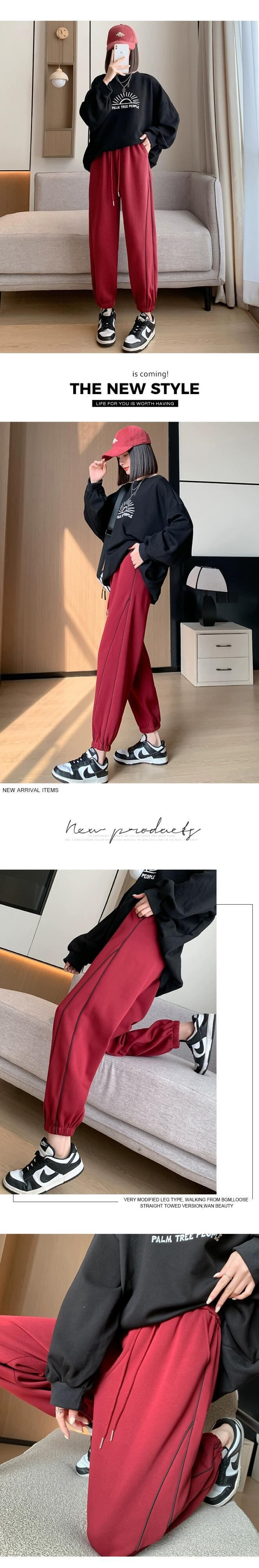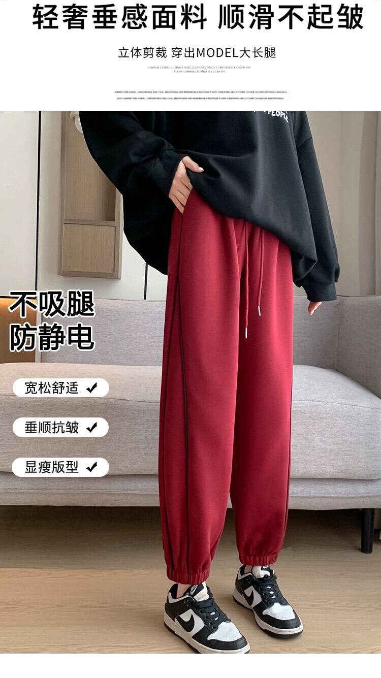 バーガンディカジュアルスポーツパンツレディース、春と秋のアメリカンスタイルレギンス、ルーズ、スリム、万能ハイウエストストレートパンツ スプリング 春物 オータム 秋物 7460073176659479 | framboise21