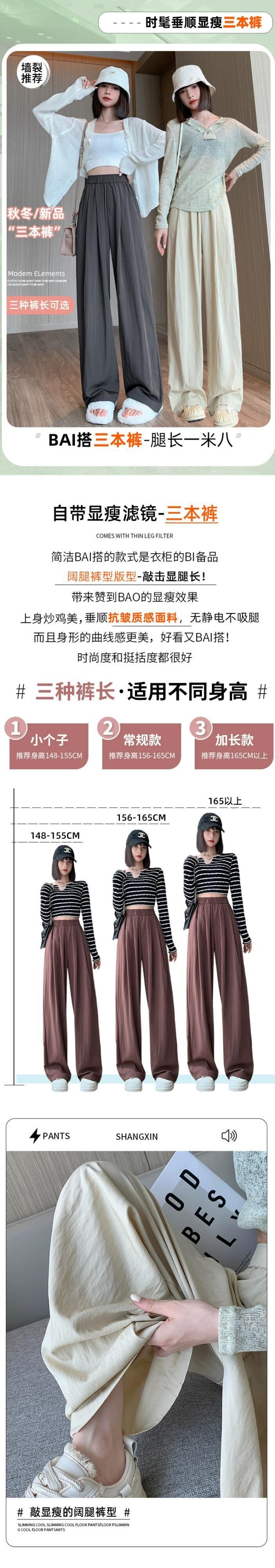 春と秋のテクスチャードナローワイドレッグパンツ女性ハイウエストプリーツパンツルーズ痩身フロアレングスストレートカジュアルパンツ レッド スプリング 春物 オータム 秋物 7460040825964493 | framboise21