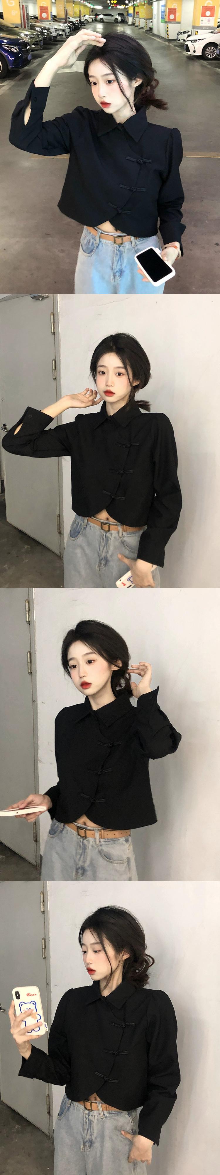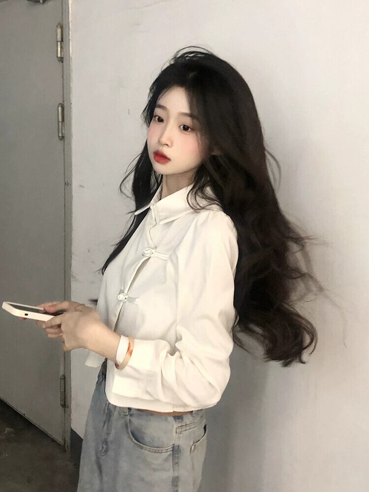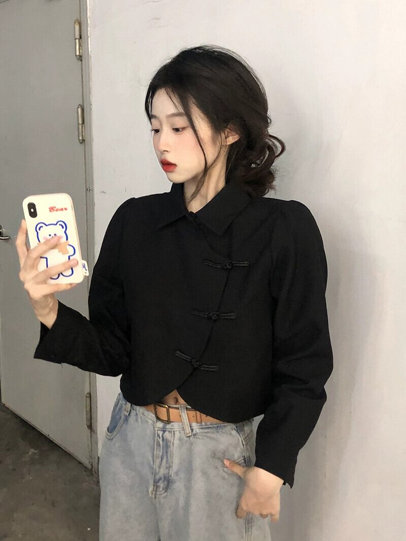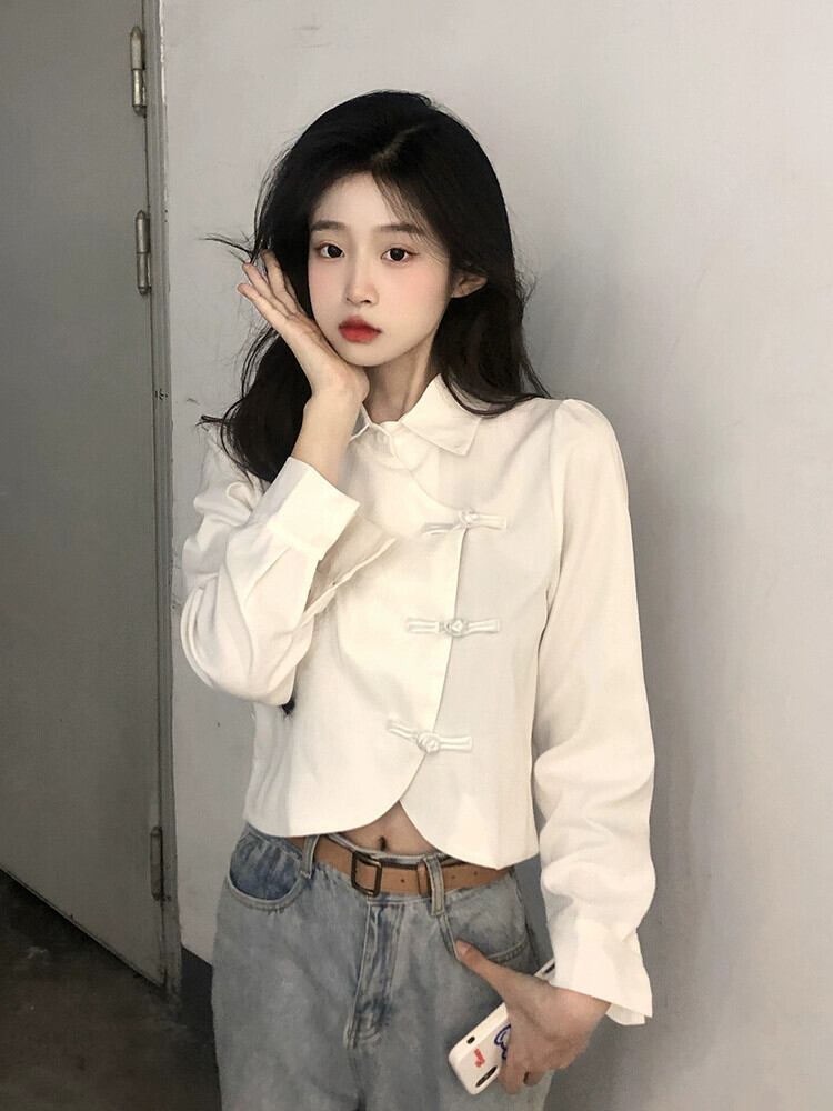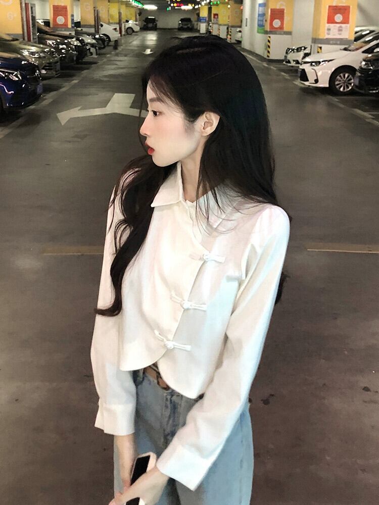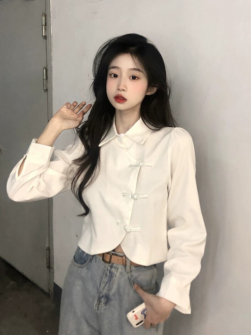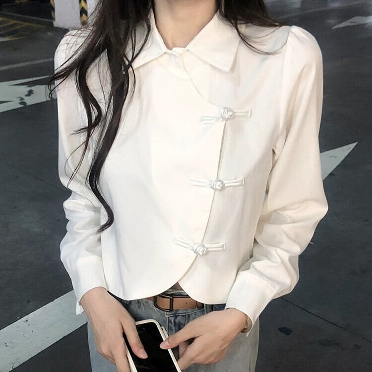 中国風のボタンダウンショート長袖シャツの女性、秋のデザイン、西洋風のルーズな白いシャツ、新しい中国風のトップ ロング ホワイト オータム 秋物 7460084663859596 | framboise21
