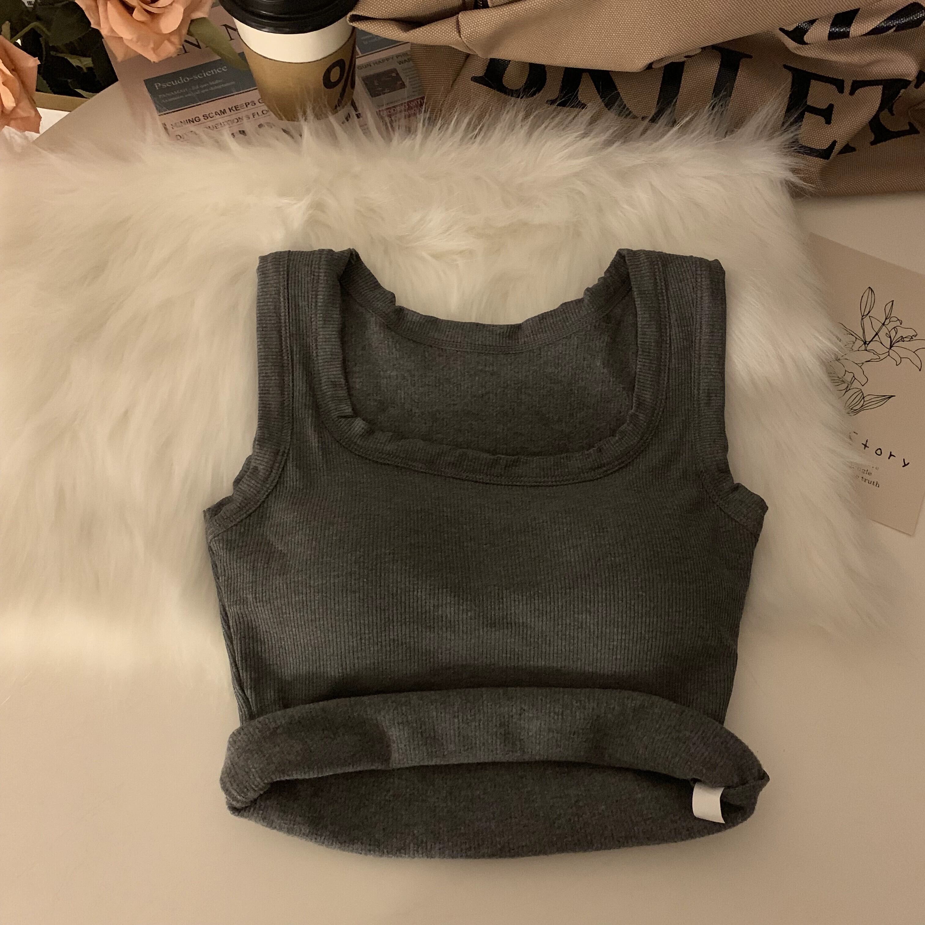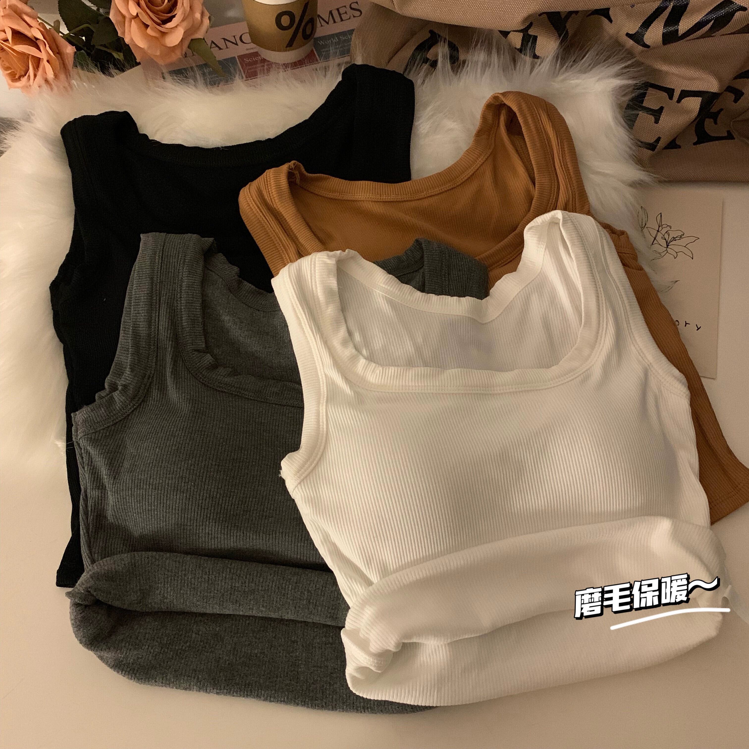 起毛肥厚サーマルベストサスペンダーレディース秋冬スリムフィットアウターウェアインナーショートトップ胸パッド付き オータム 秋物 ウィンター 冬物 7460038221486242 | framboise21