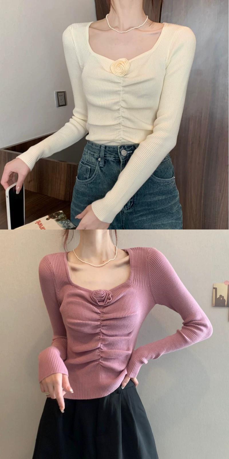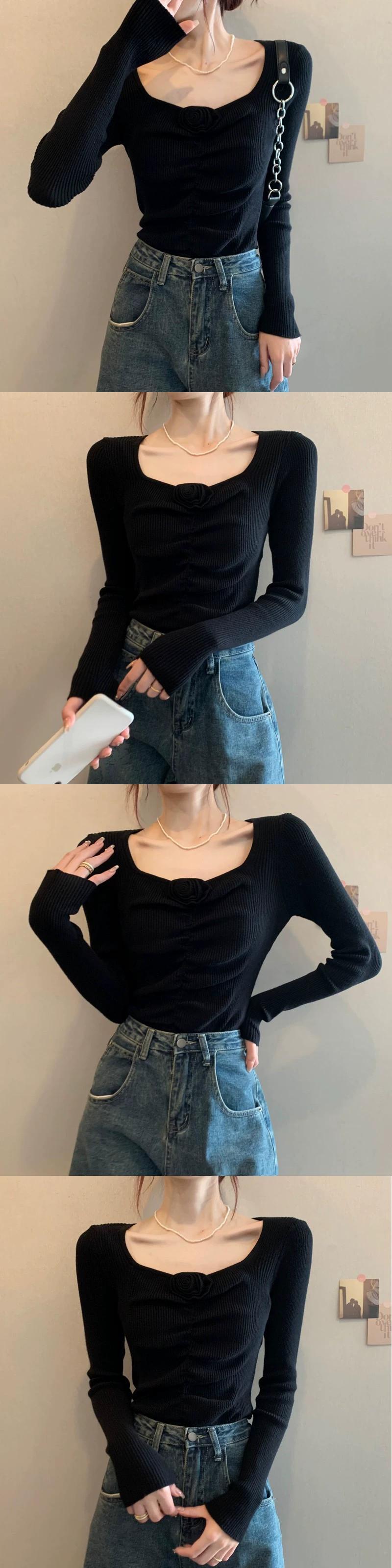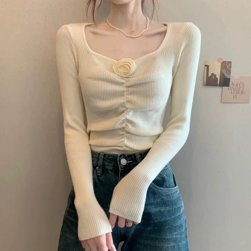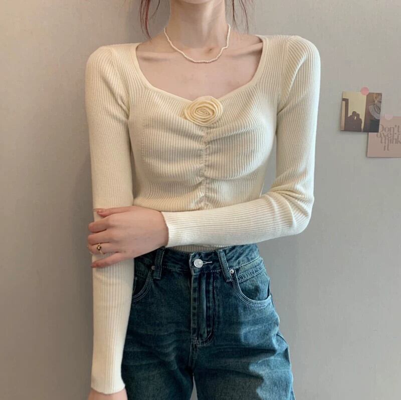 プリーツスクエアネックボトリングシャツ 2023 新しい女性の秋冬インナーショートセーターファッショナブルなスリム長袖ニットトップ ロング オータム 秋物 ウィンター 冬物 スクウェア 7460035135890640 | framboise21