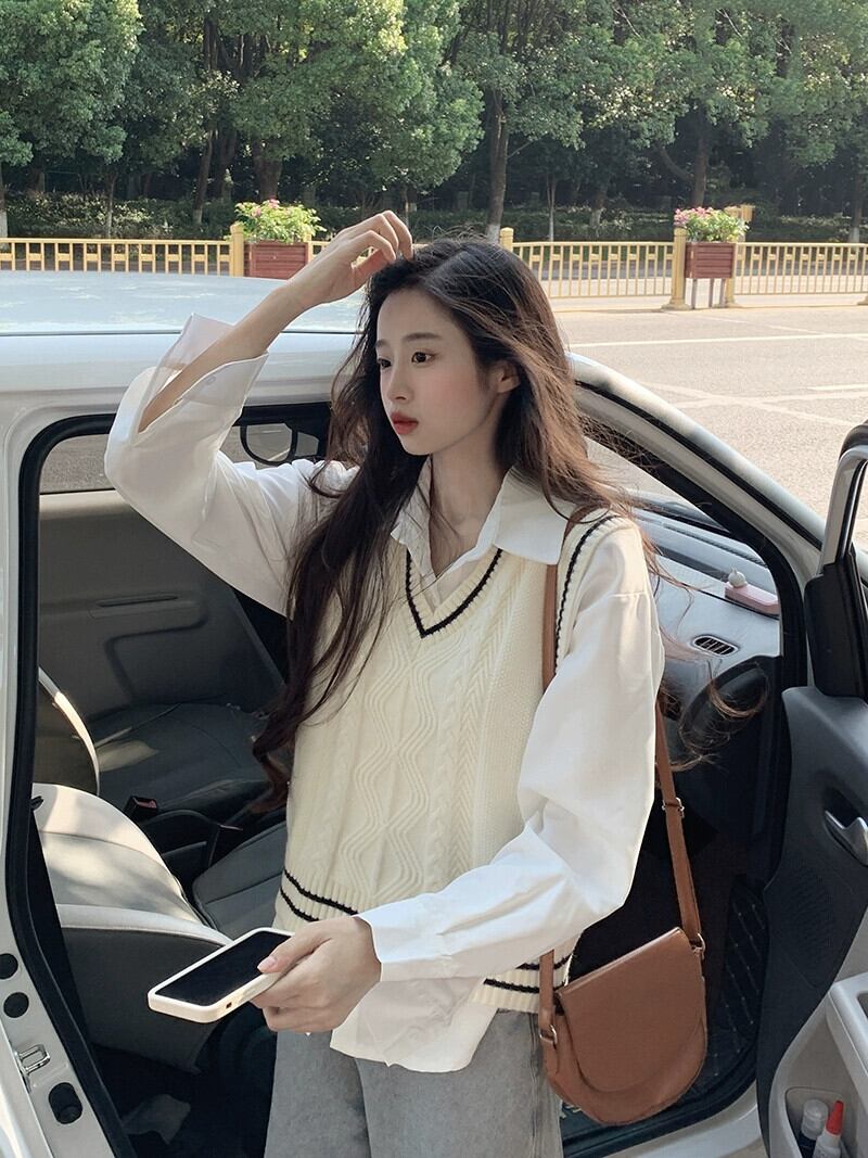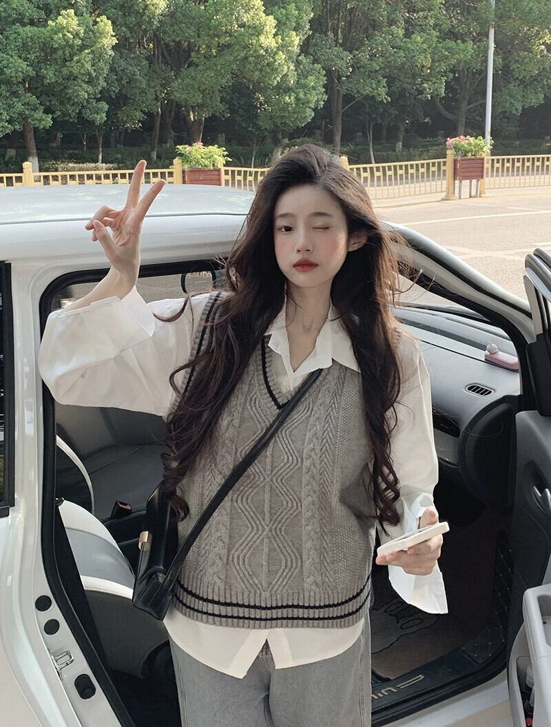 色:グレーのベスト,アプリコットベスト,白いベスト,白のシャツ