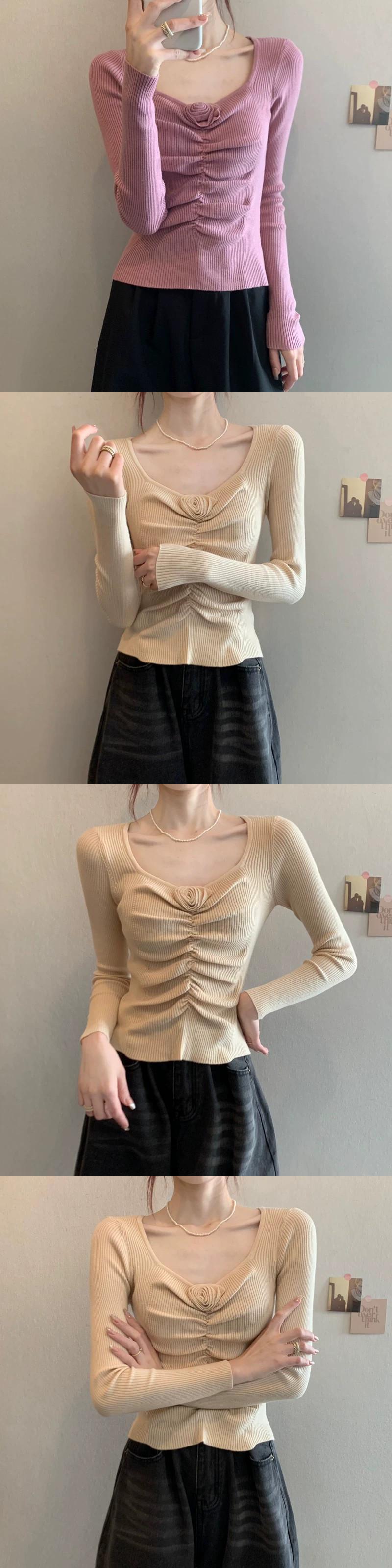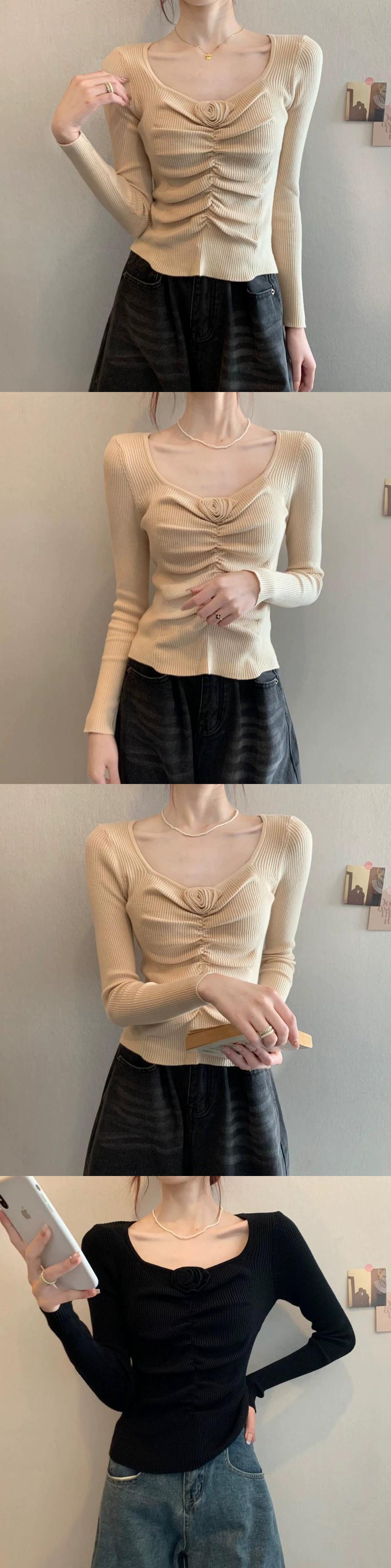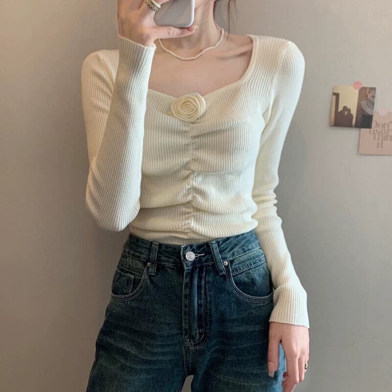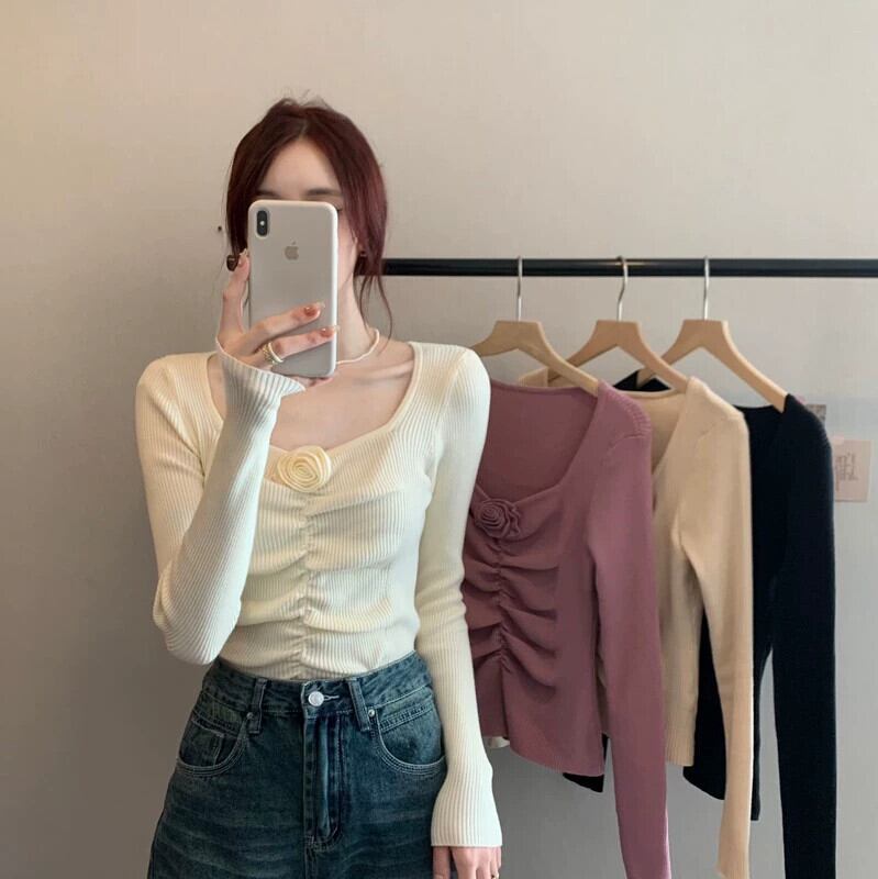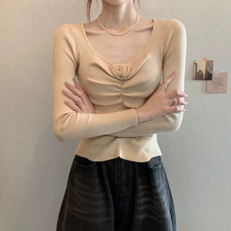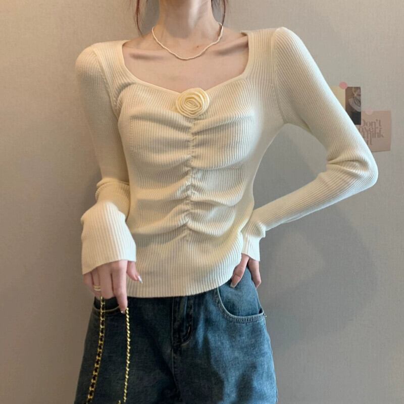 秋冬のショートローネックボトムシャツレディース、ファッショナブルでスタイリッシュ、スリムフィットインナープリーツスクエアネック長袖ニットセーター ロング オータム 秋物 ウィンター 冬物 スクウェア 7460032344074655 | framboise21