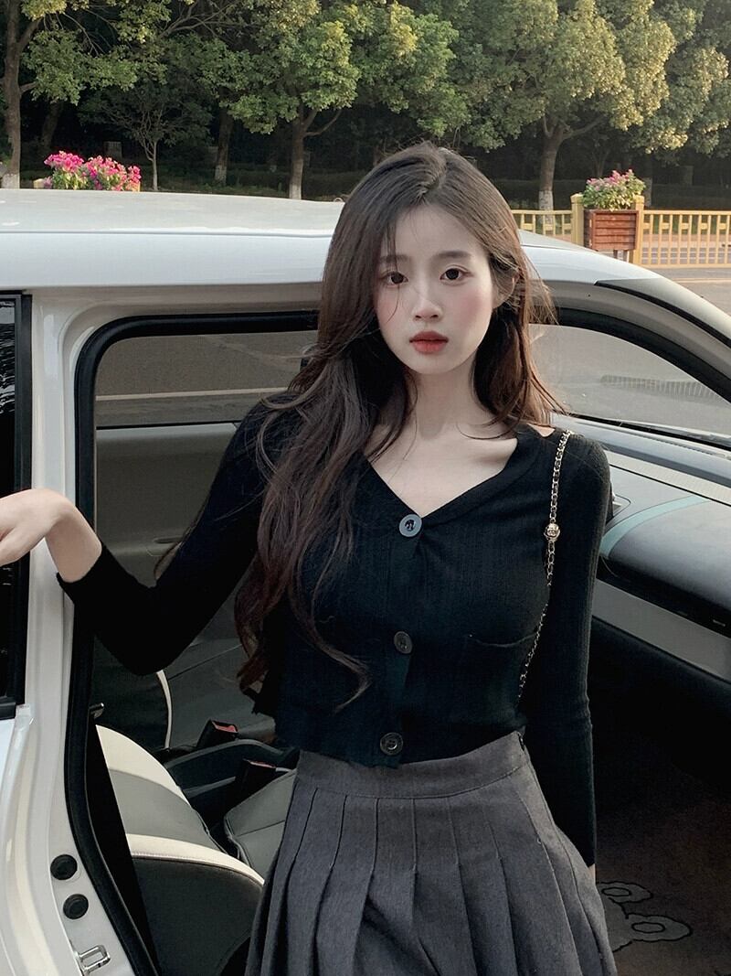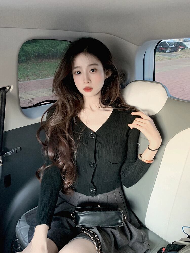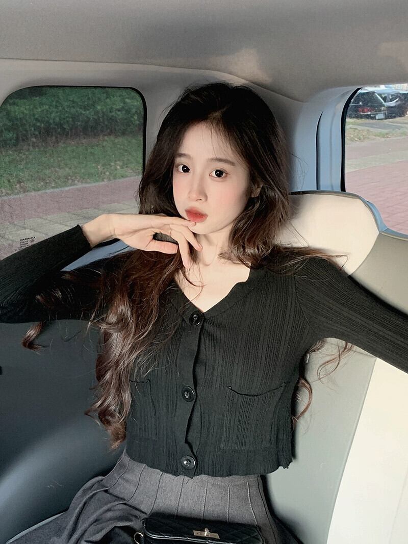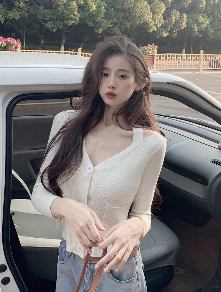 ショート V ネック ニット カーディガン ジャケット レディース、春と秋の薄いセーター、ファッショナブル、ウエスタン スタイル、スリム フィット、中空長袖トップ、アプリコット ロング スプリング 春物 オータム 秋物 Vネック 7460071145018796 | framboise21