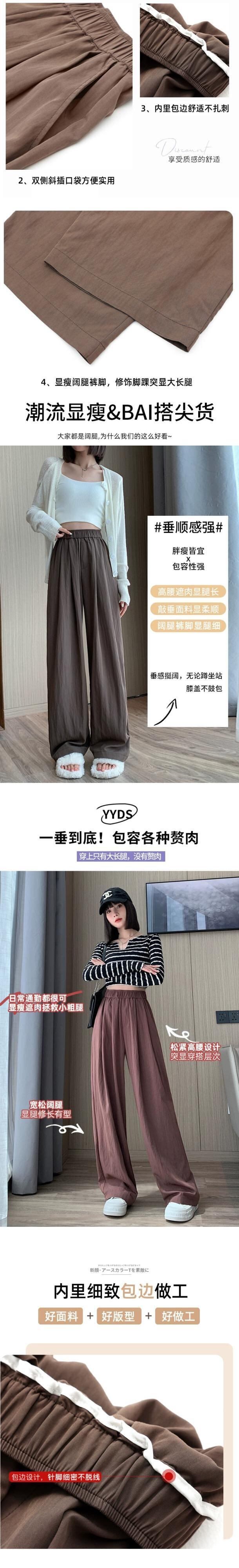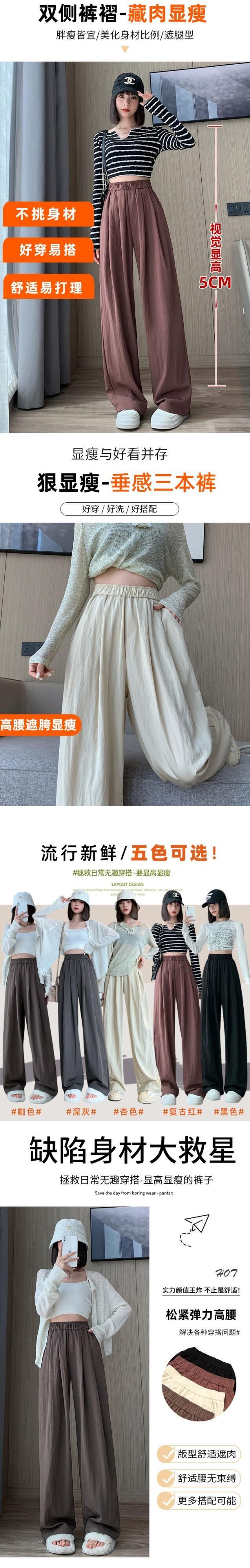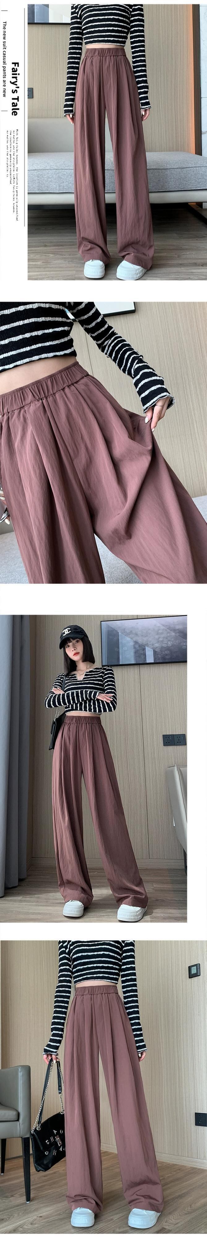 ナロープリーツワイドレッグパンツ女性 2023 新作春と秋のスタイルのハイウエストルーズストレートレッグテクスチャードカジュアルパンツ レッド スプリング 春物 オータム 秋物 7460034195216799 | framboise21
