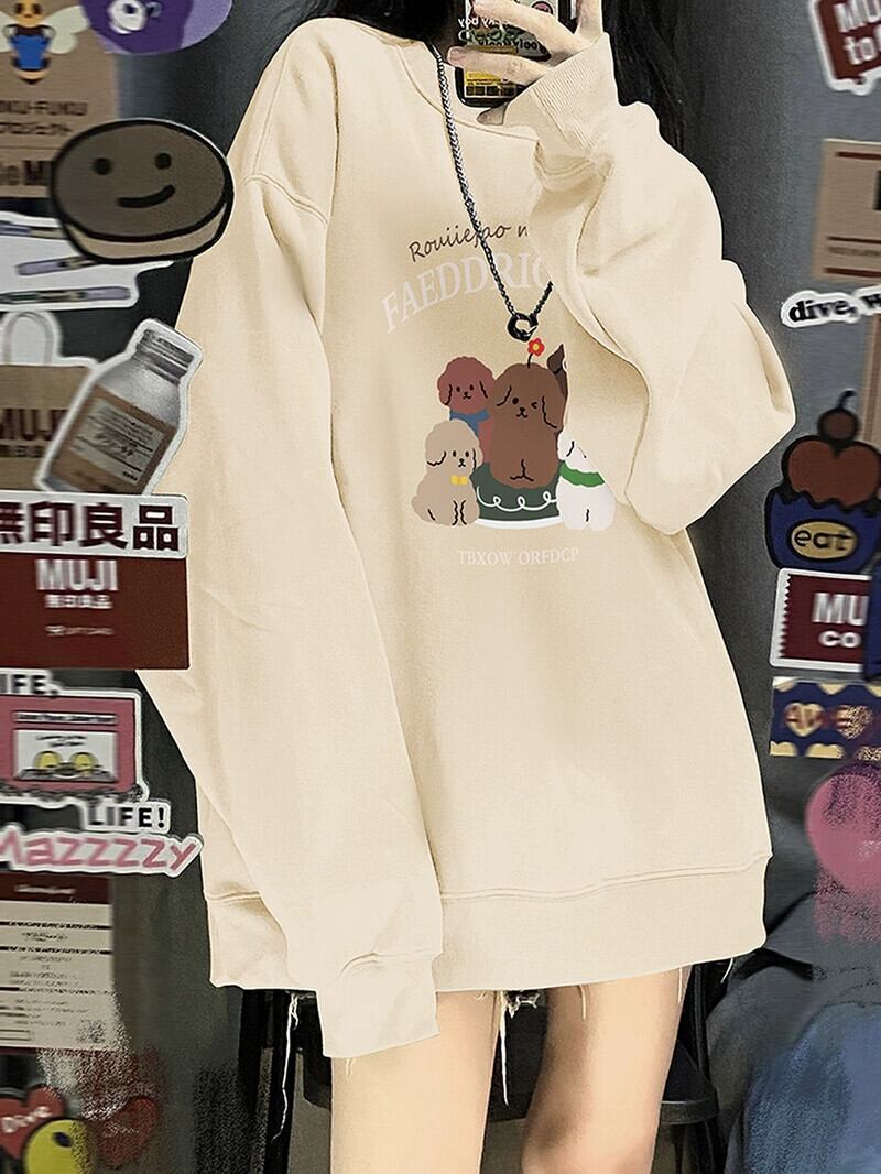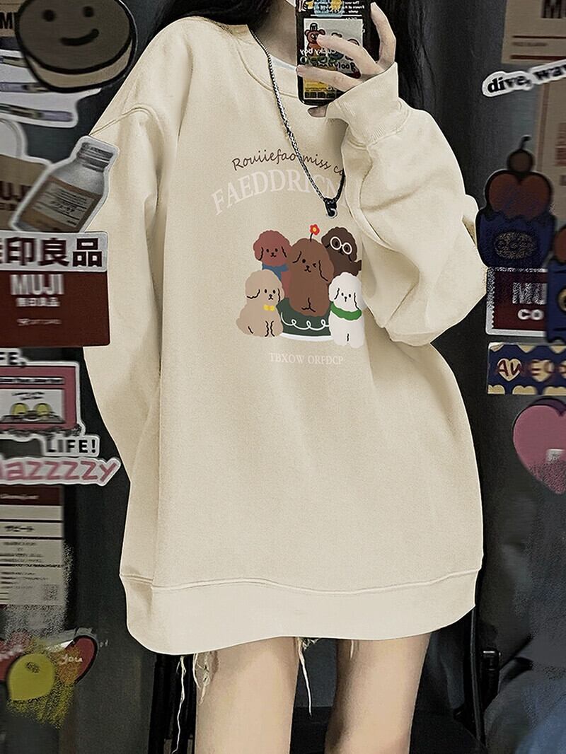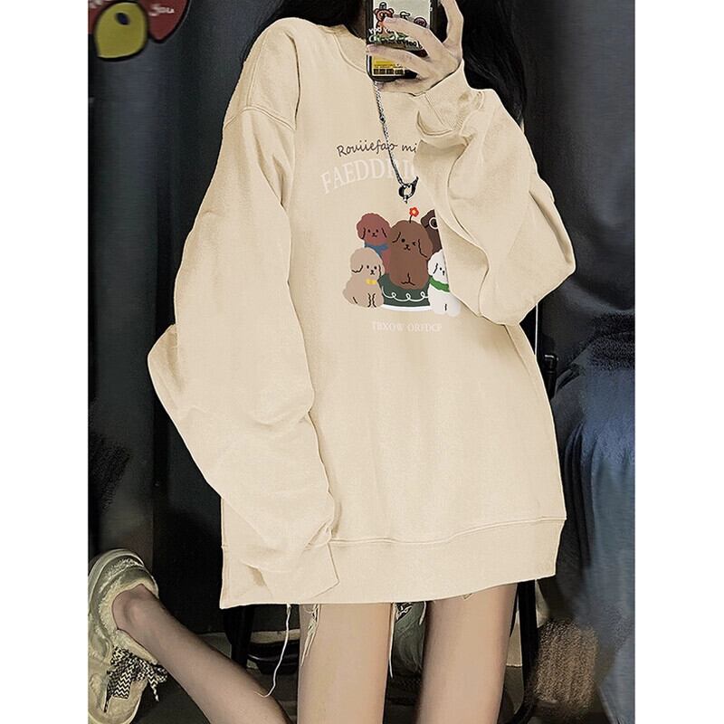オーバーサイズのミッドレングスのスウェットシャツの女性、春と秋のデザイン、ルーズで怠惰なスタイル、お尻を覆うプリントフード付きジャケット スプリング 春物 オータム 秋物 7460084454720486 | framboise21