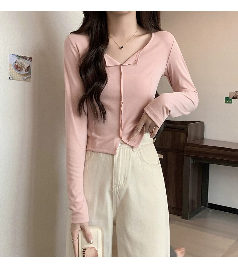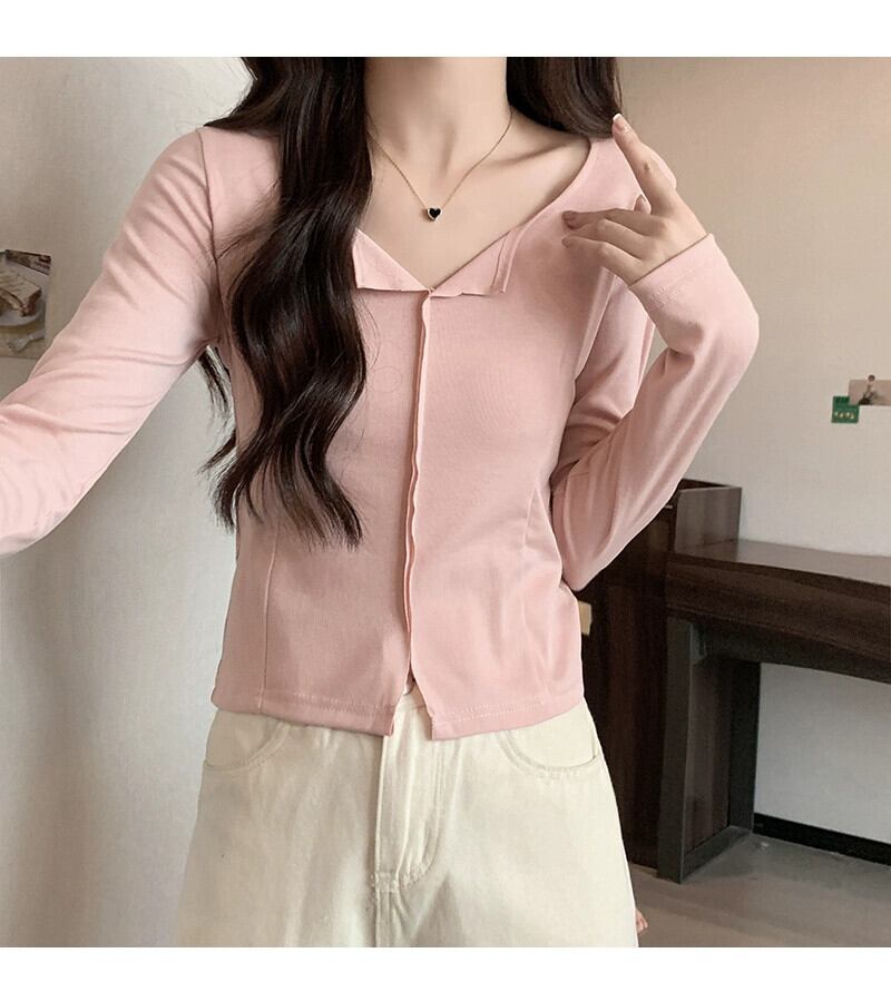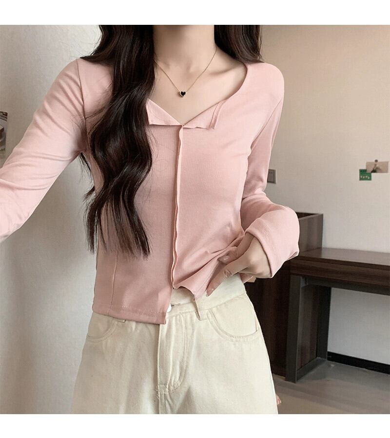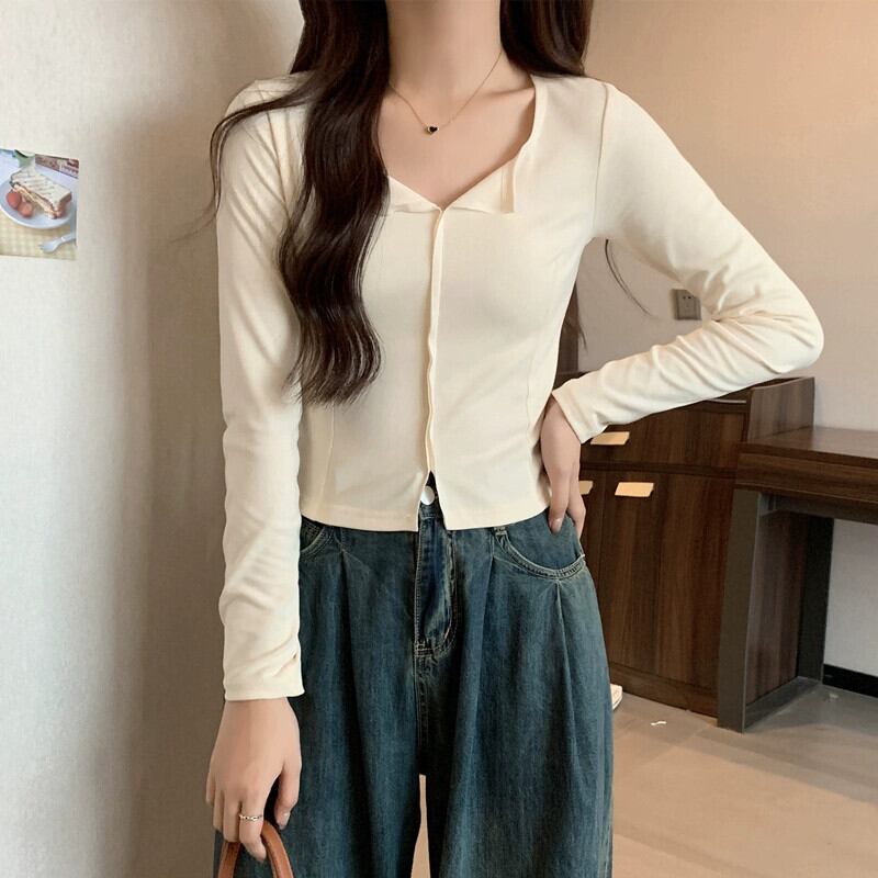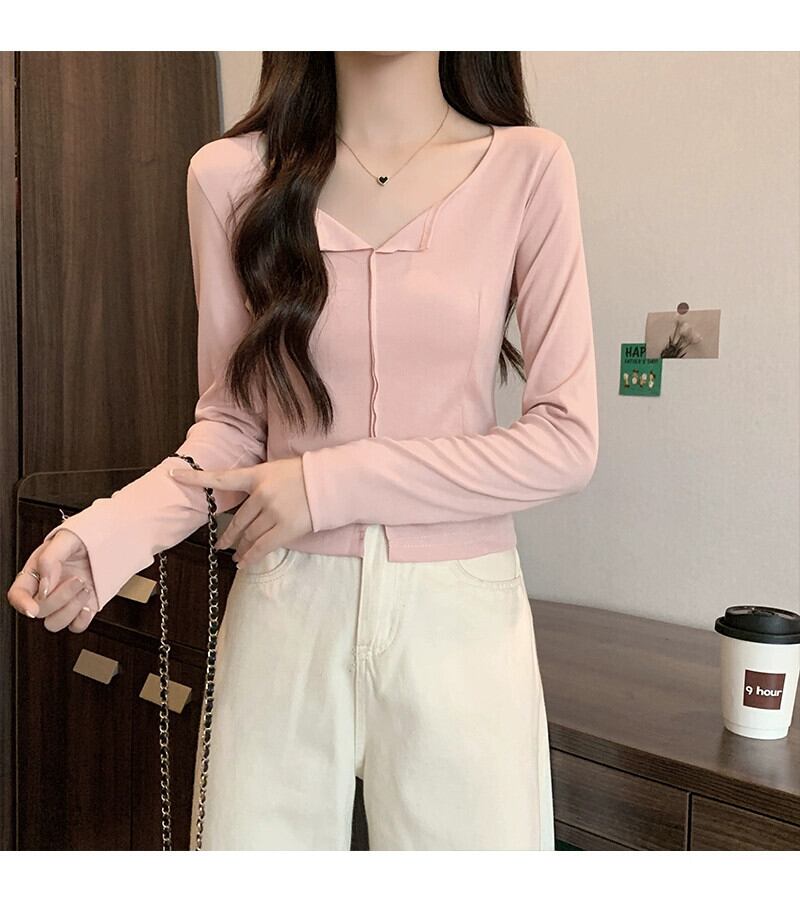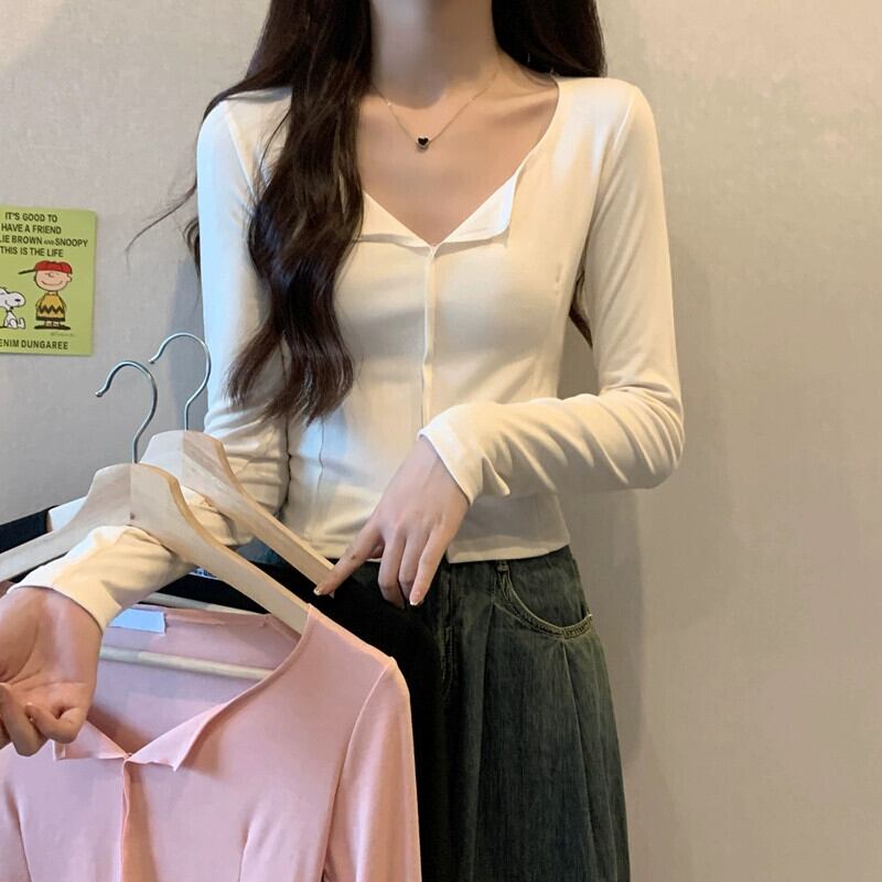 春と秋のVネックショートボトムシャツレディース、ファッショナブルなローネック長袖Tシャツ、スリムフィットインナー鎖骨露出ボトムトップス ロング スプリング 春物 オータム 秋物 746002627524830 | framboise21