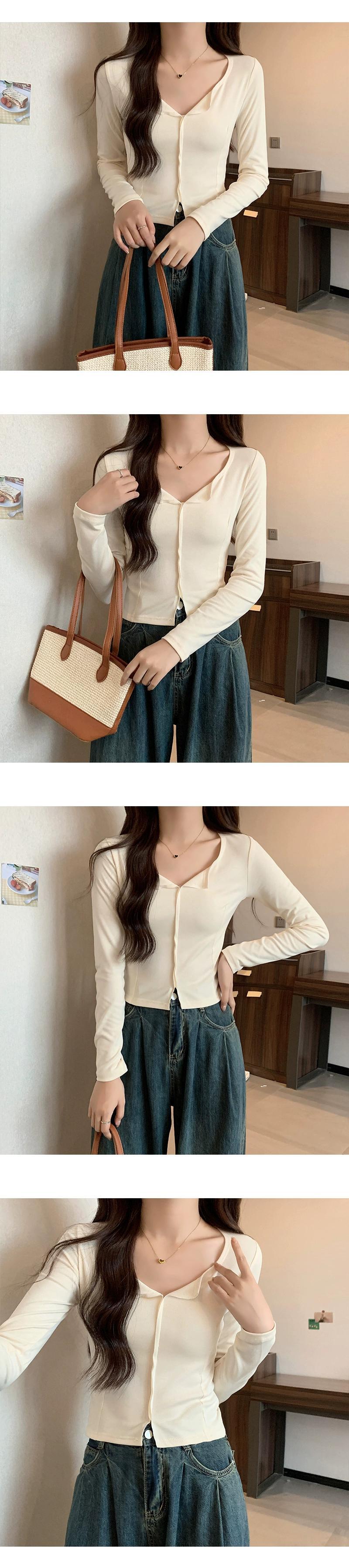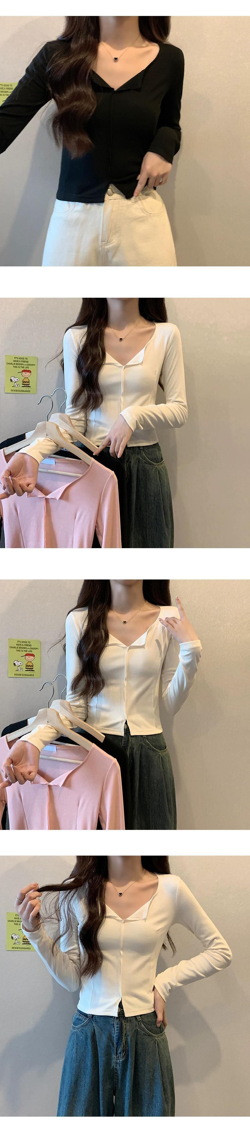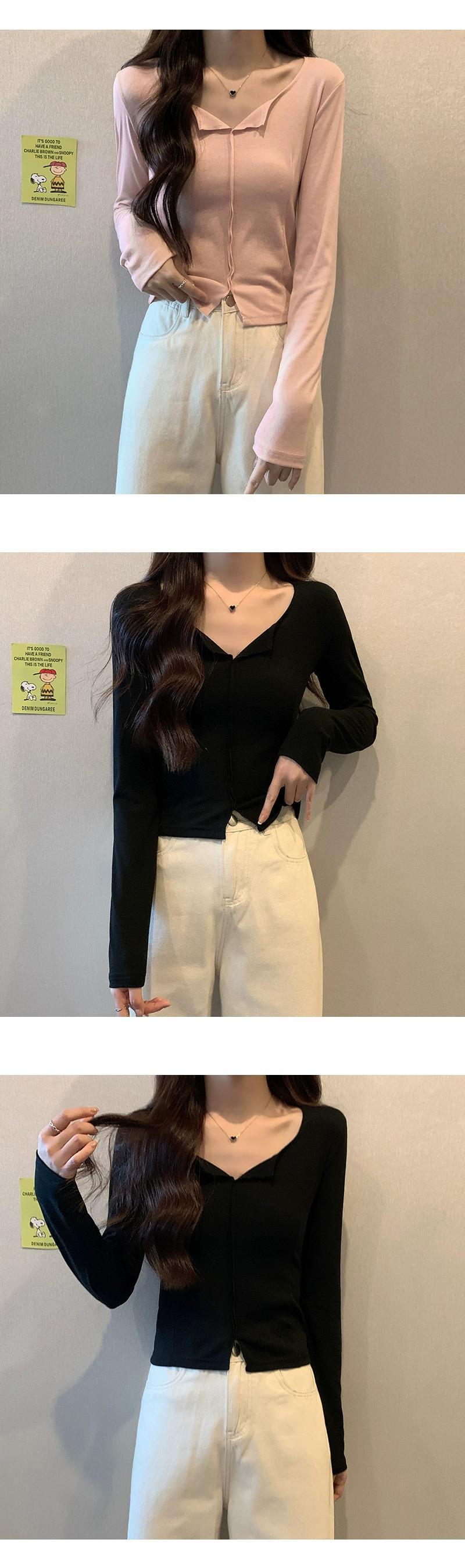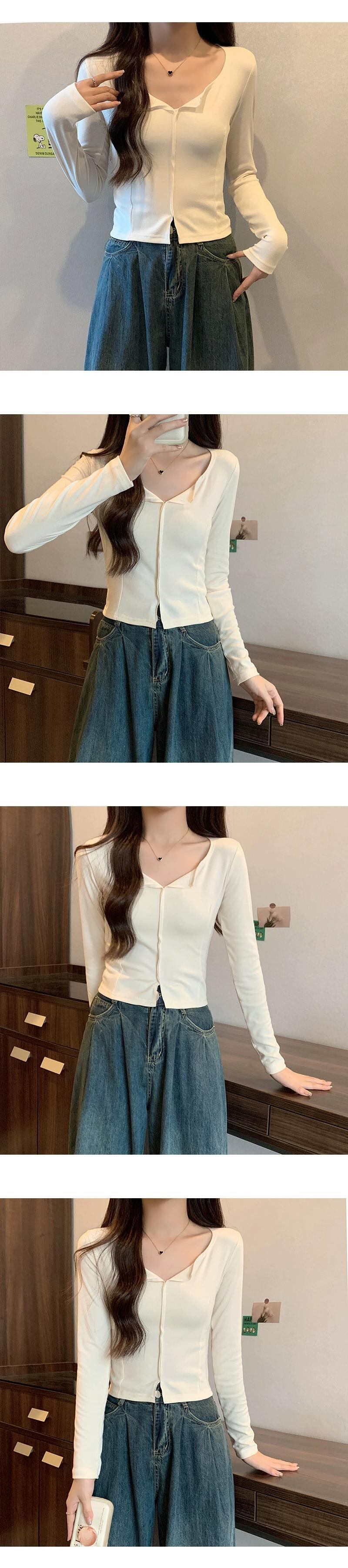 春と秋のVネックショートボトムシャツレディース、ファッショナブルなローネック長袖Tシャツ、スリムフィットインナー鎖骨露出ボトムトップス ロング スプリング 春物 オータム 秋物 746002627524830 | framboise21