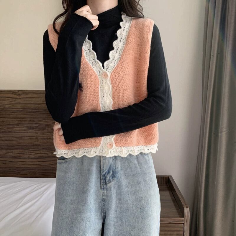 色:ベージュのベスト,ピンクのベスト,コーヒーベスト,カーキベスト,黒底シャツ,ホワイトボトミングシャツ