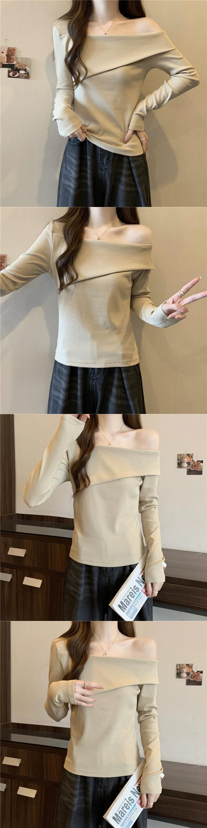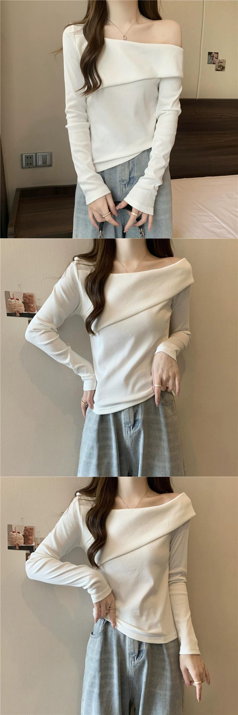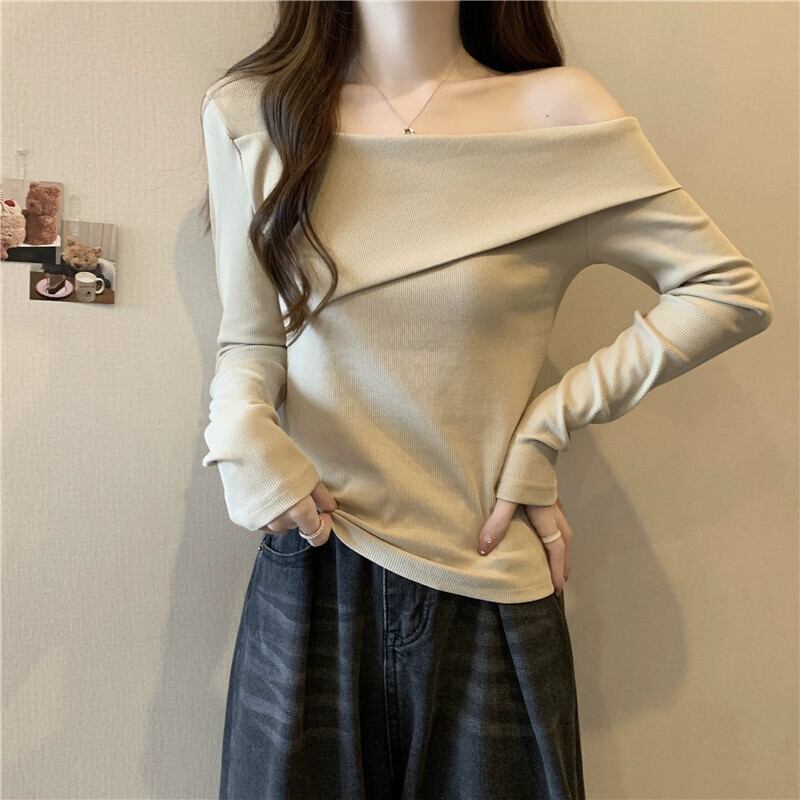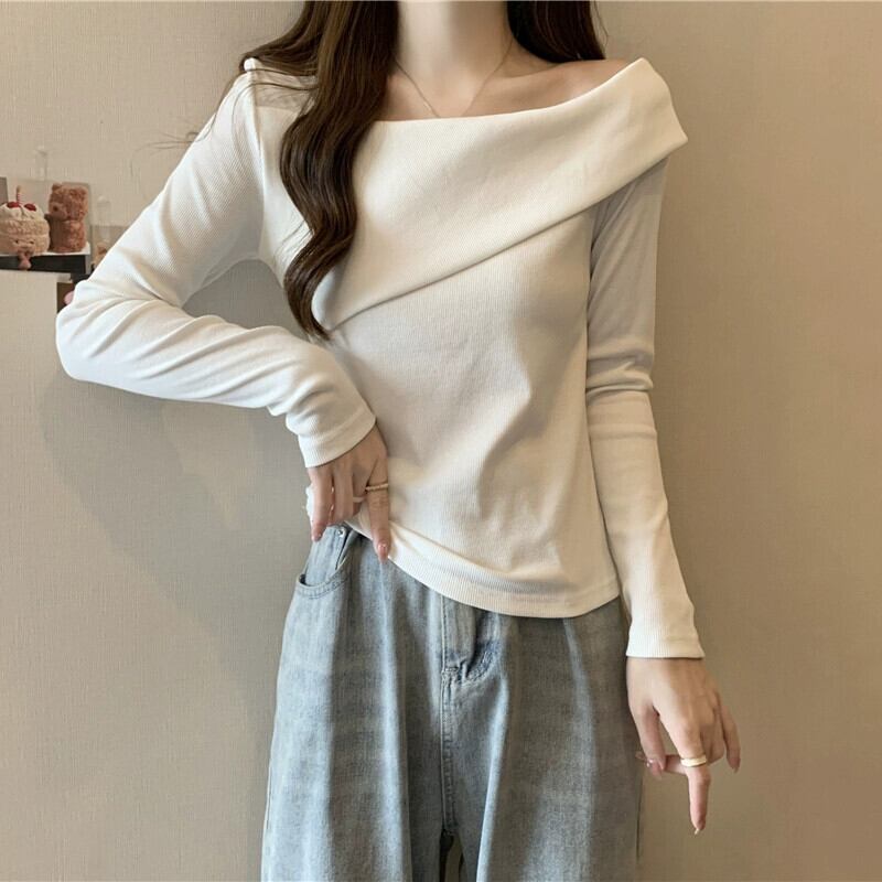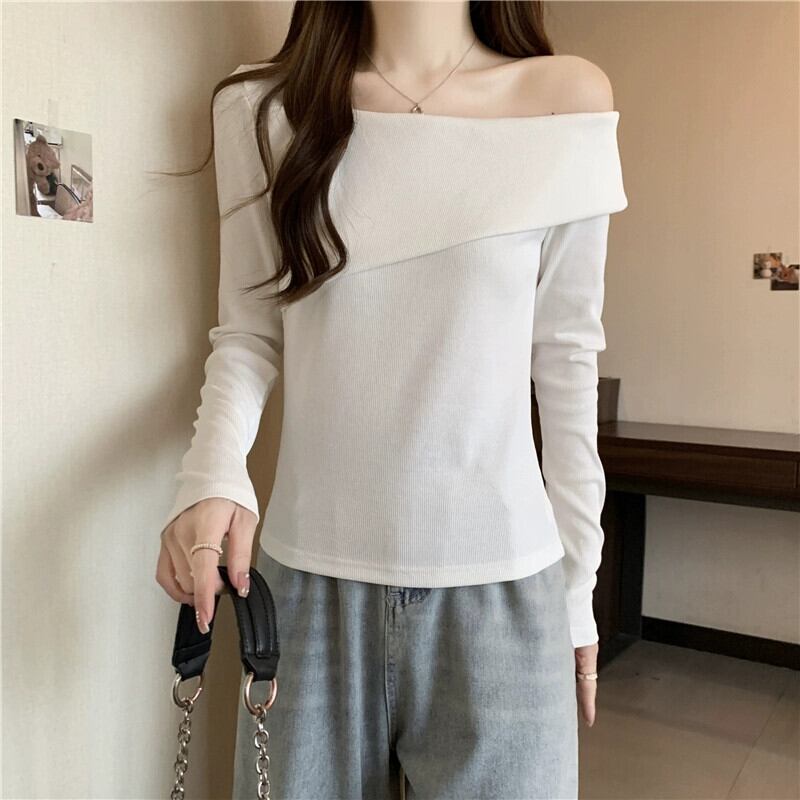 ワンショルダー長袖トップス女性 2023 春と秋の新作ファッショナブルなスタイルのインナーフィット痩身ショートボトム Tシャツ ロング スプリング 春物 オータム 秋物 7460052899820737 | framboise21