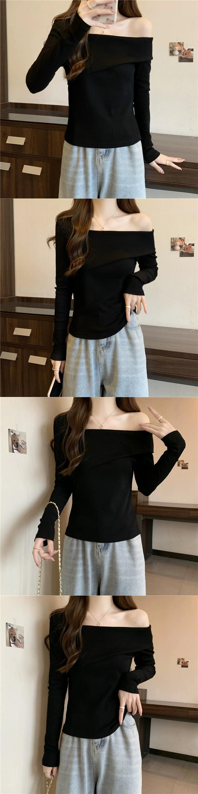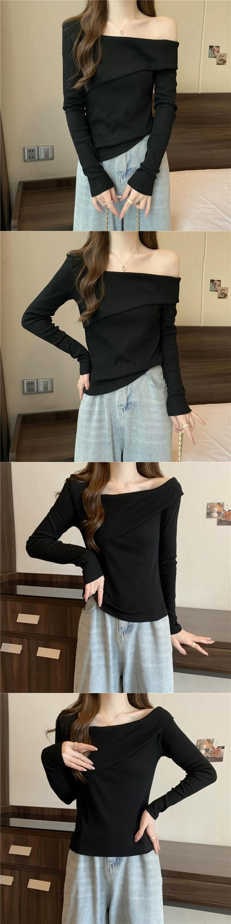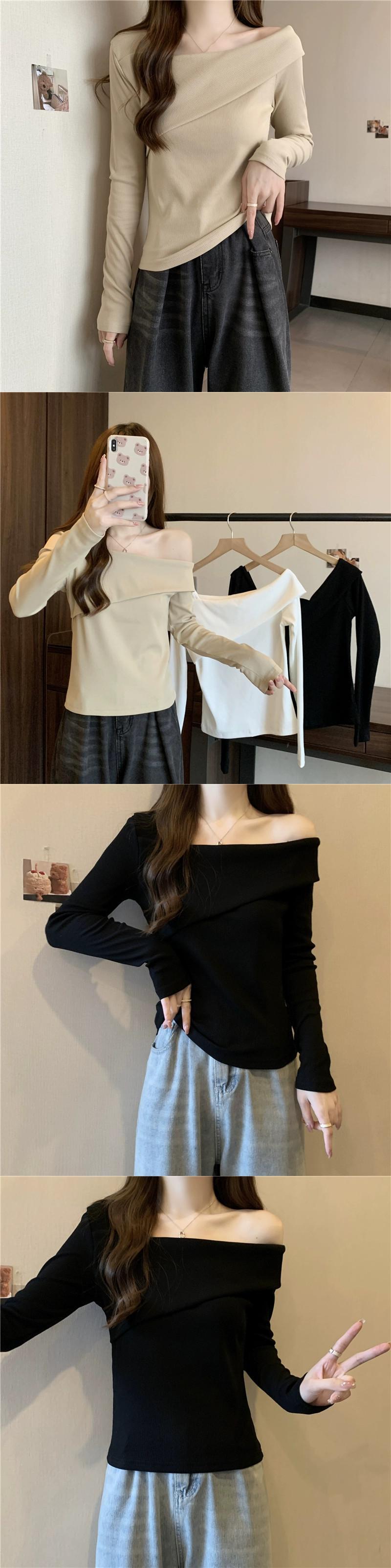 ワンショルダー長袖トップス女性 2023 春と秋の新作ファッショナブルなスタイルのインナーフィット痩身ショートボトム Tシャツ ロング スプリング 春物 オータム 秋物 7460052899820737 | framboise21