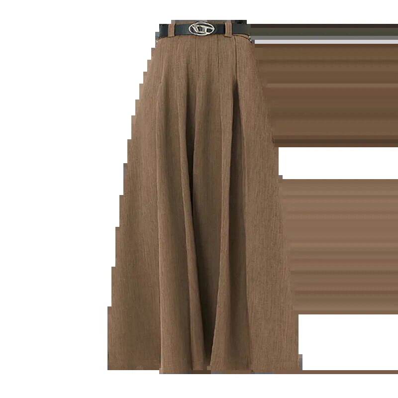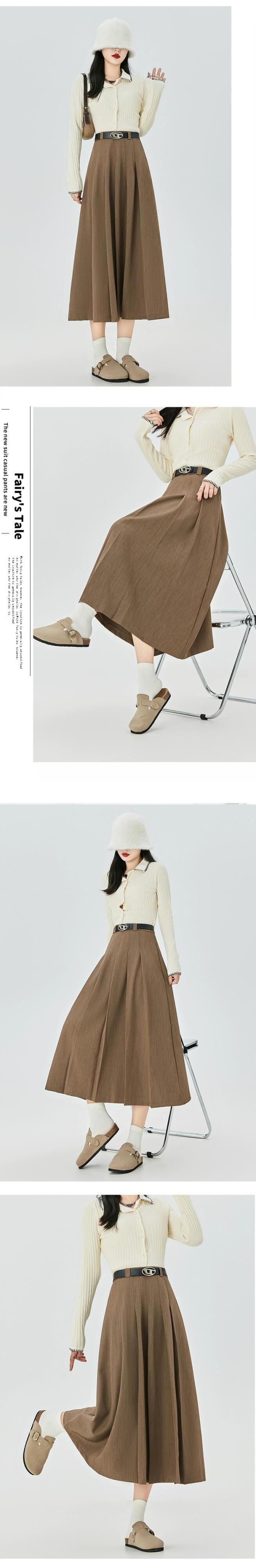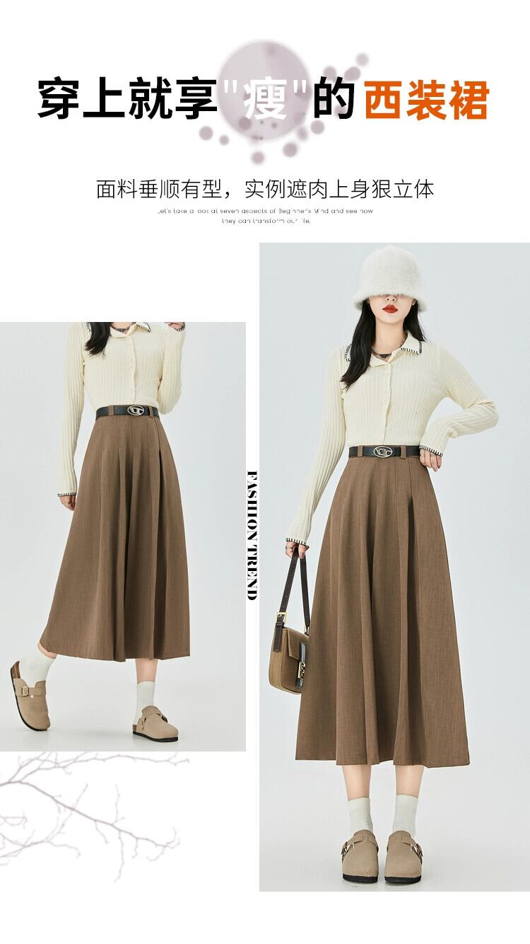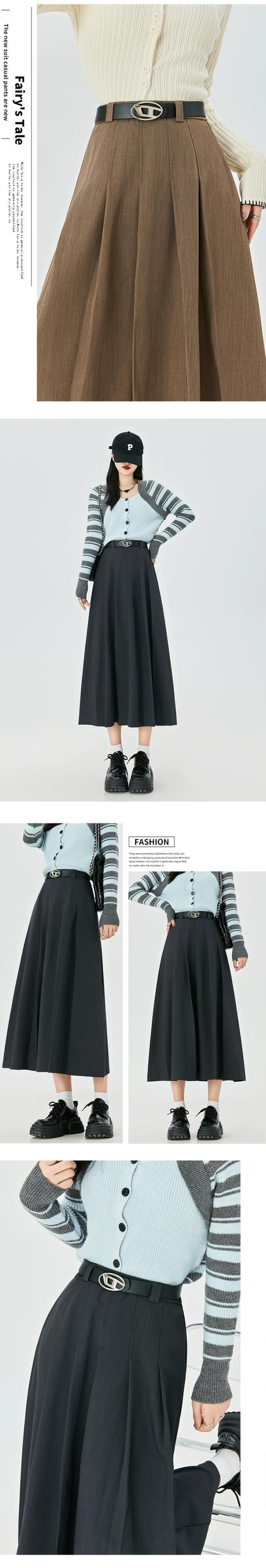 黒のAラインスーツスカートレディース、秋冬のハイエンドデザイン、スリムでドレープのあるミッドレングスのハイウエストプリーツスカート ブラック オータム 秋物 ウィンター 冬物 7460039964901500 | framboise21