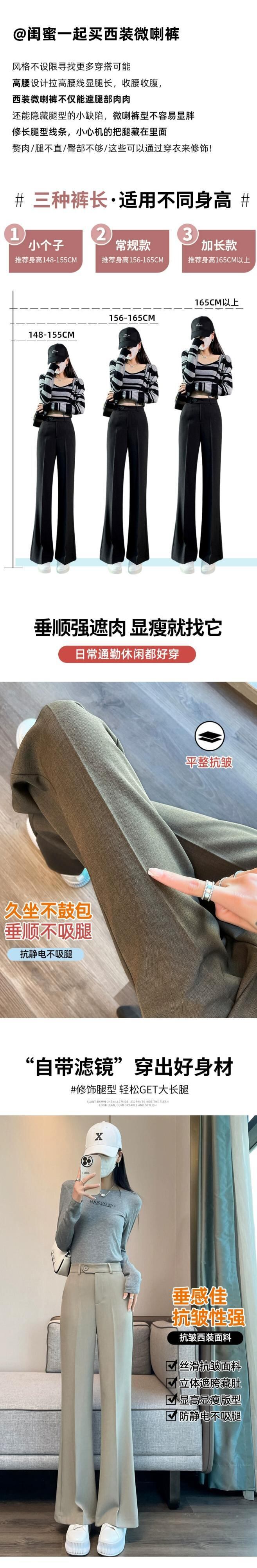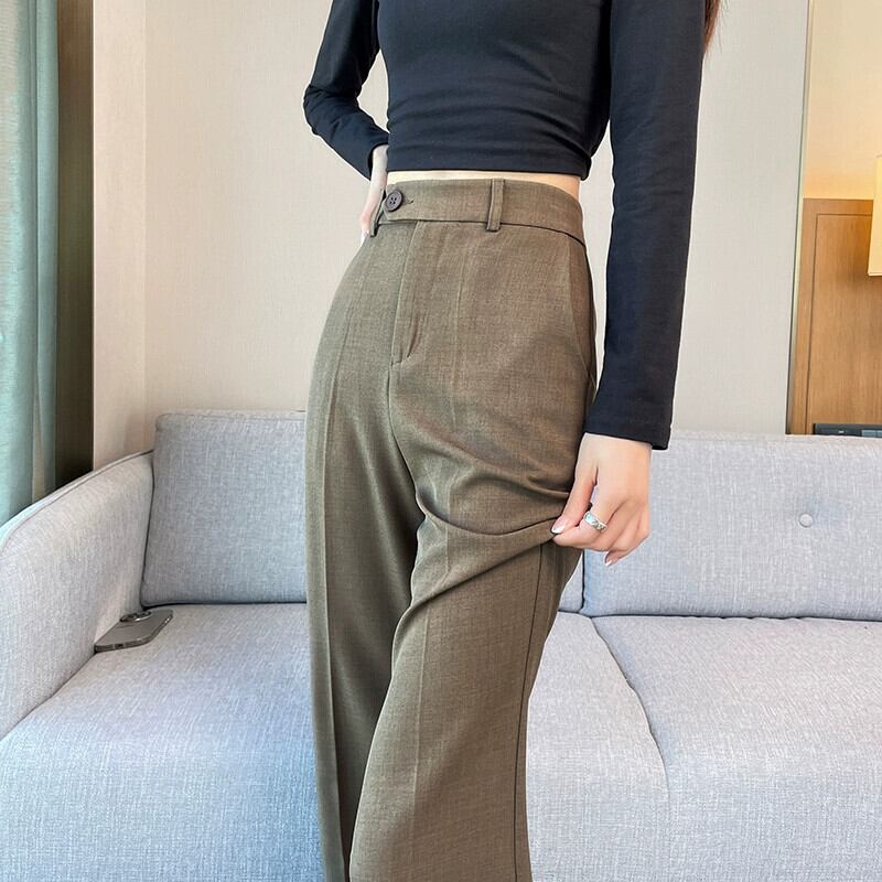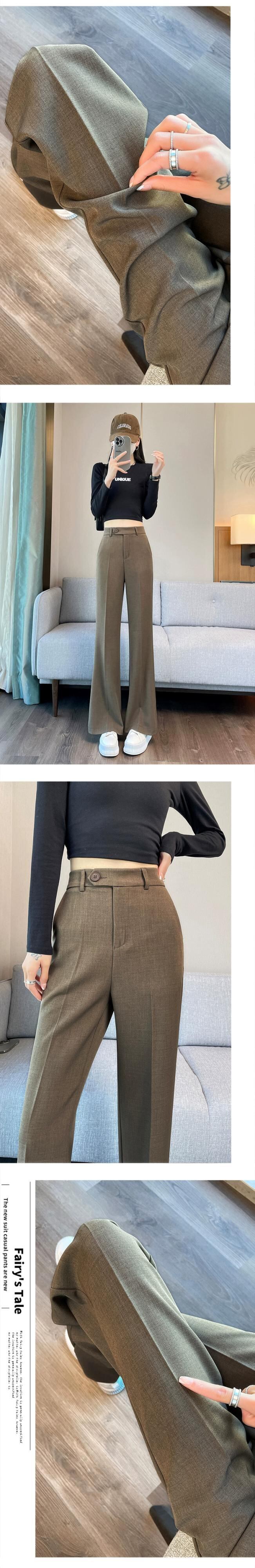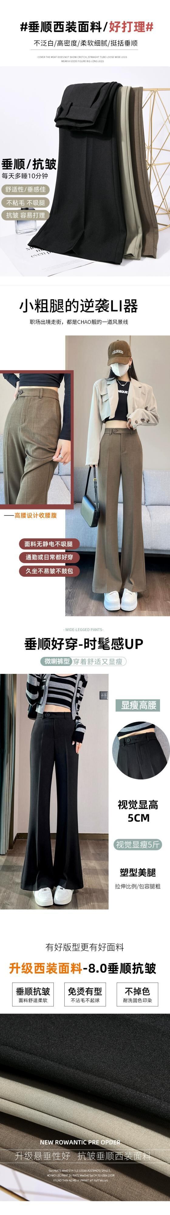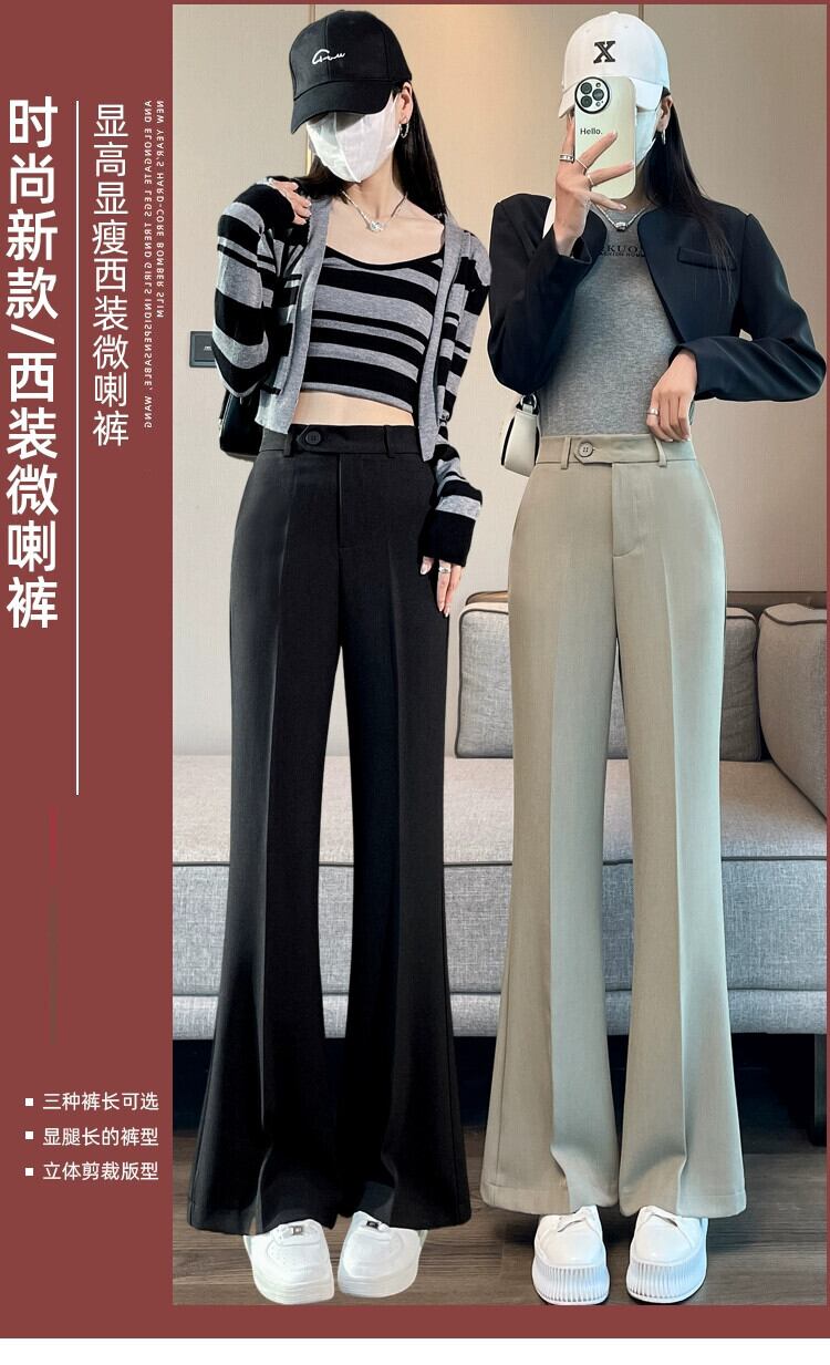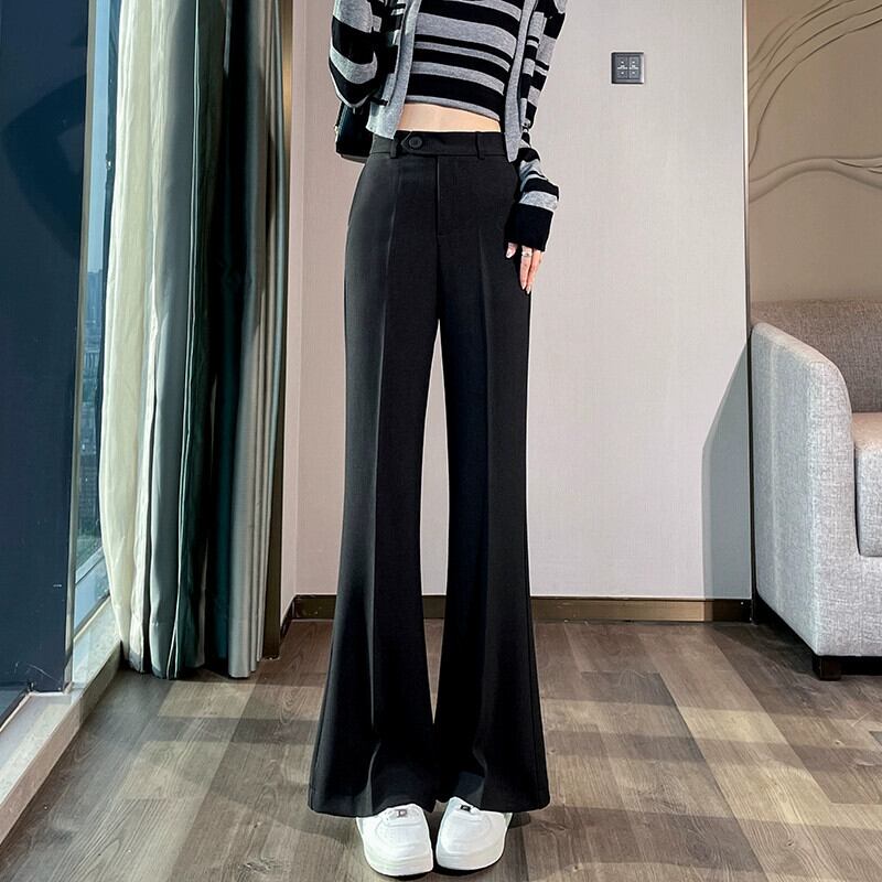 2023年秋のマイクロフレアスーツパンツの女性の新しいストレートハイウエストスリムナローワイドレッグパンツとドレープカジュアルパンツ レッド オータム 秋物 7460093433401685 | framboise21