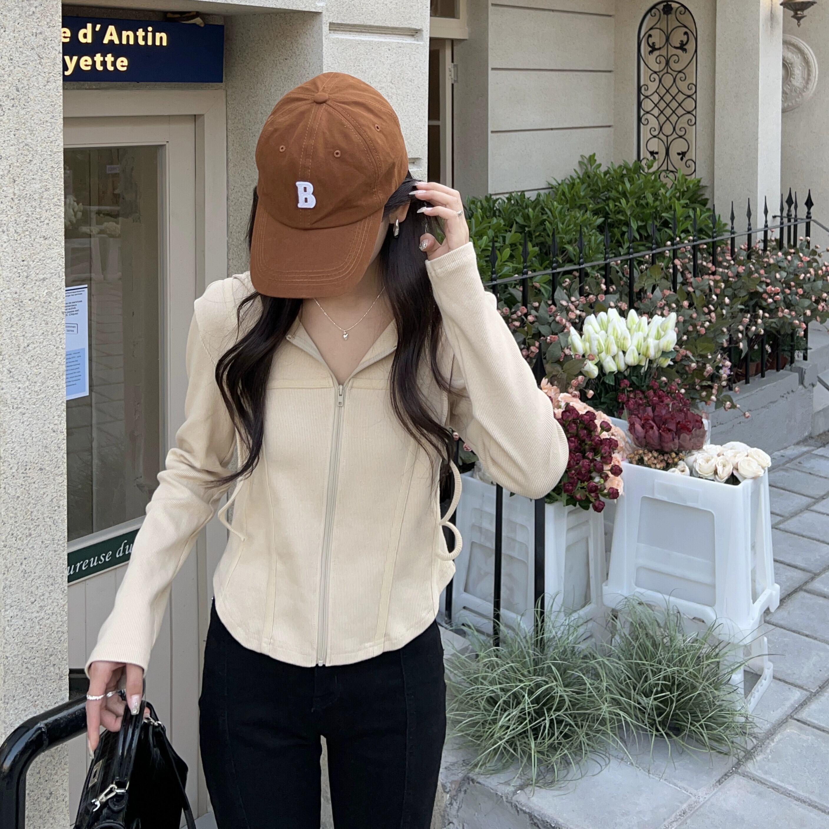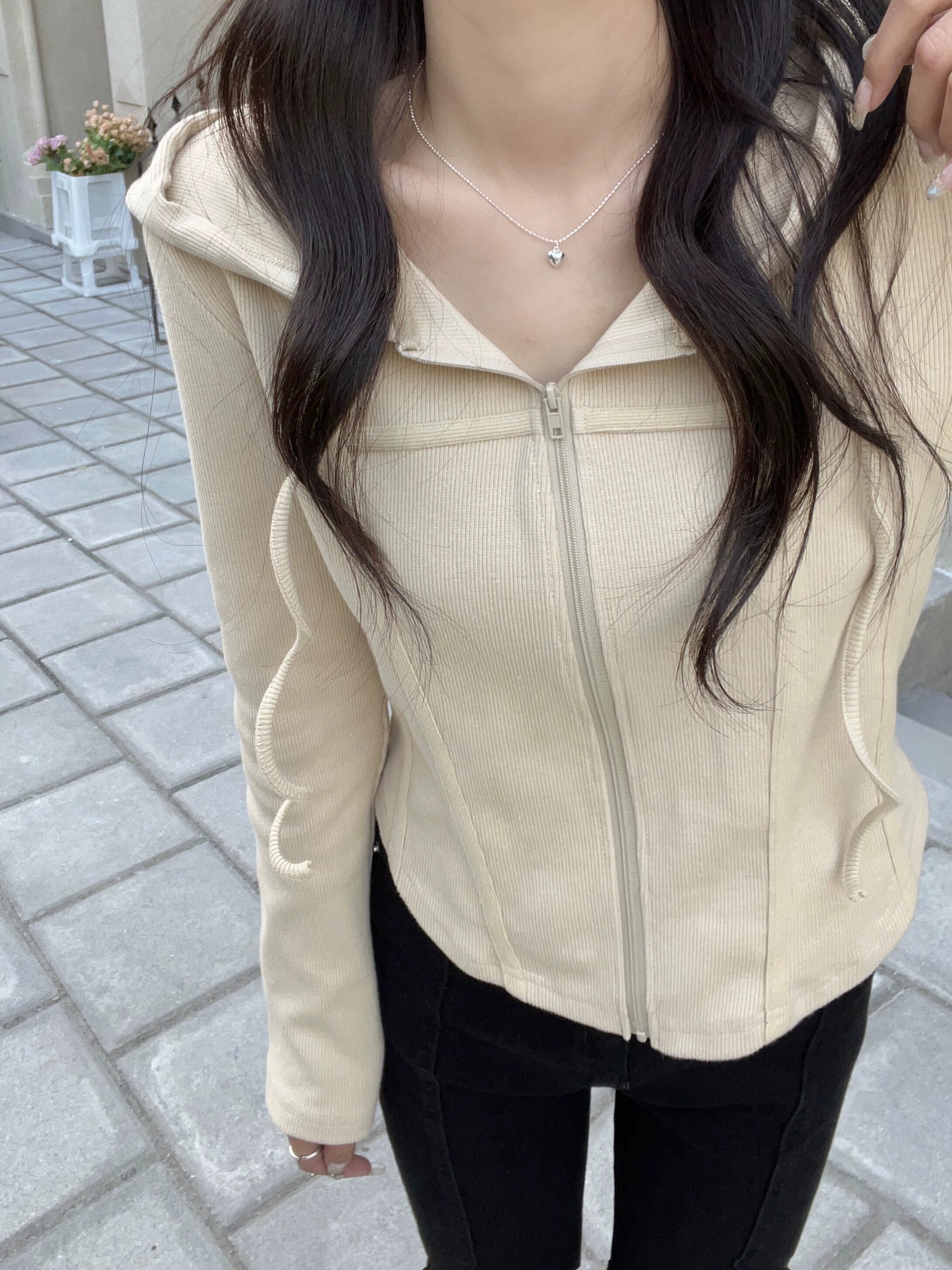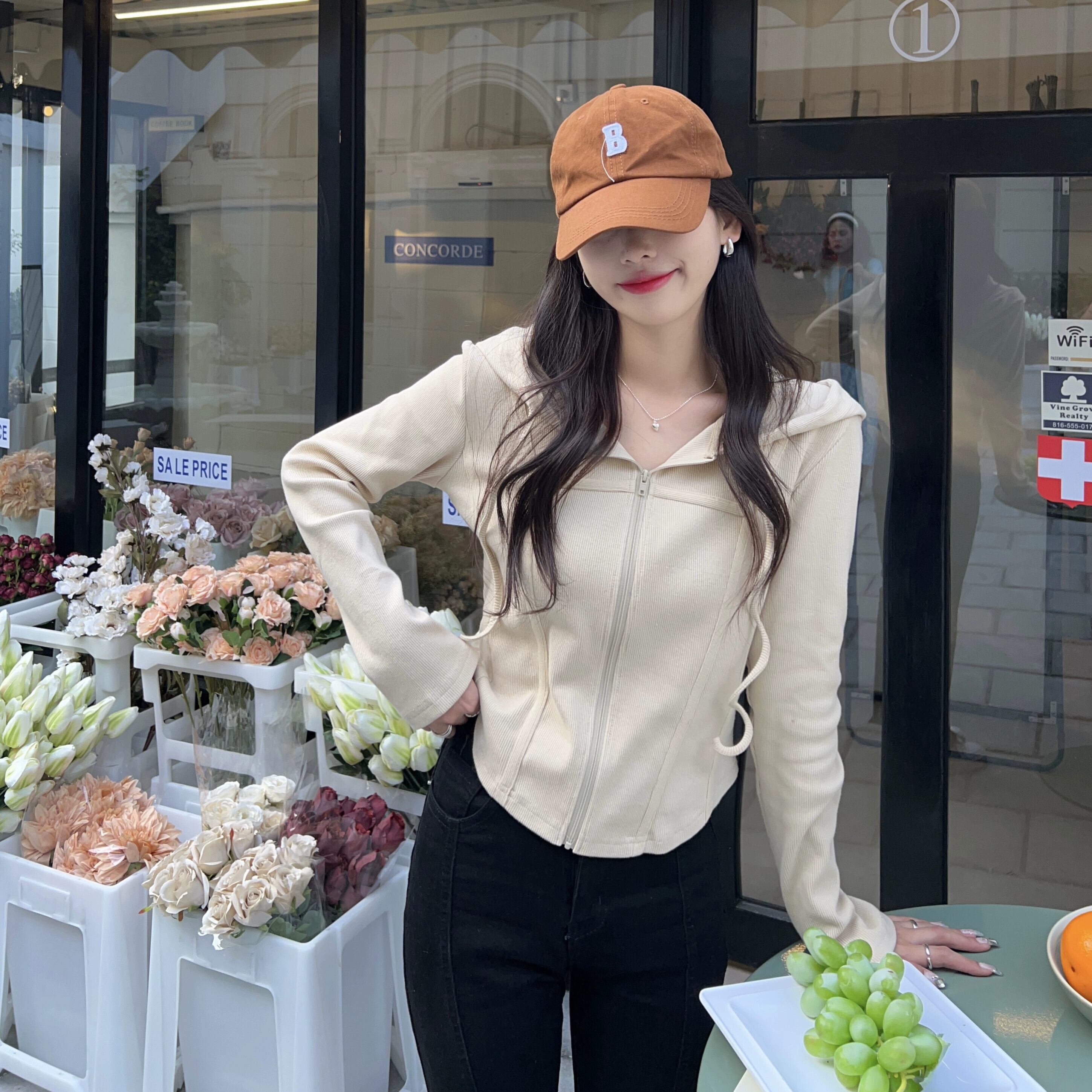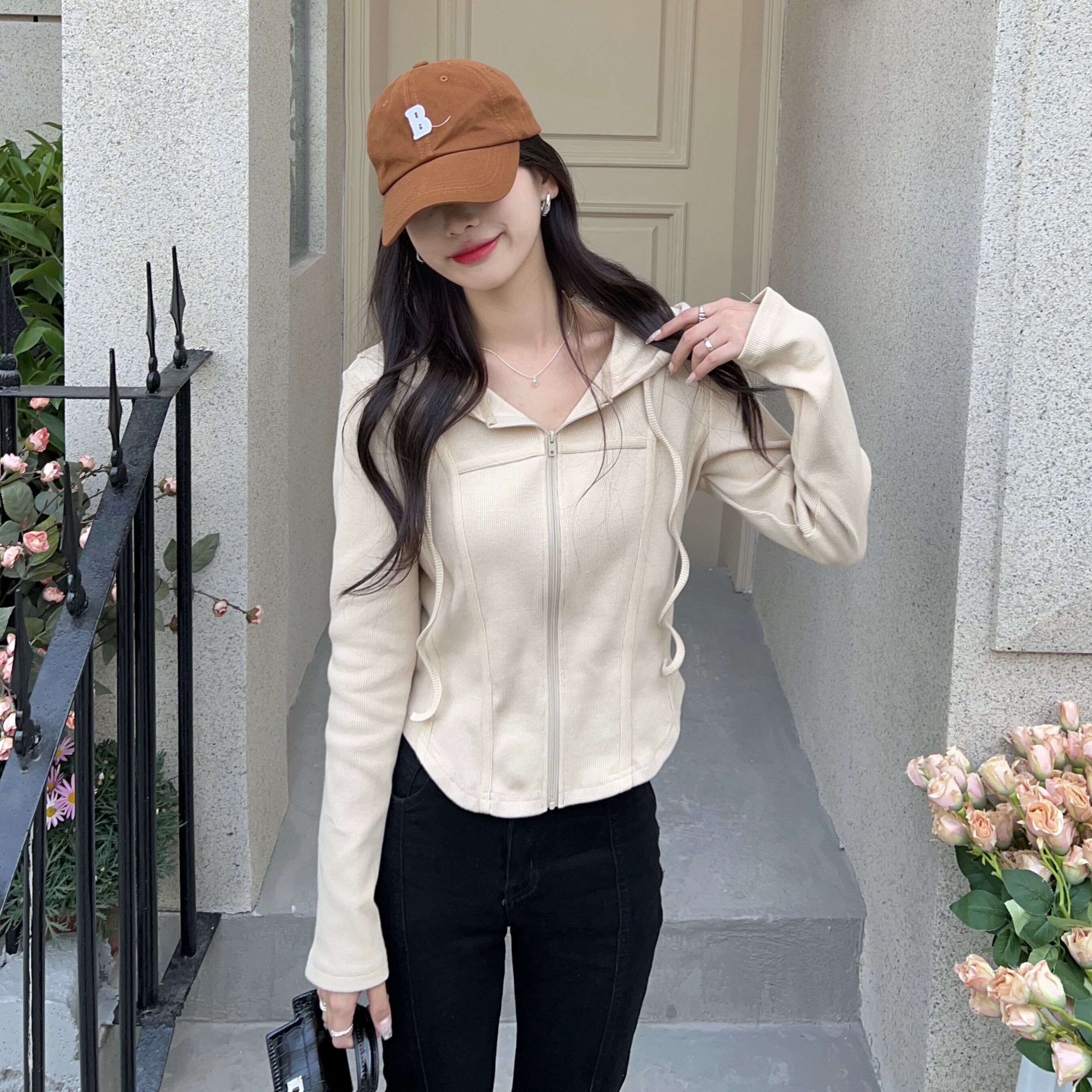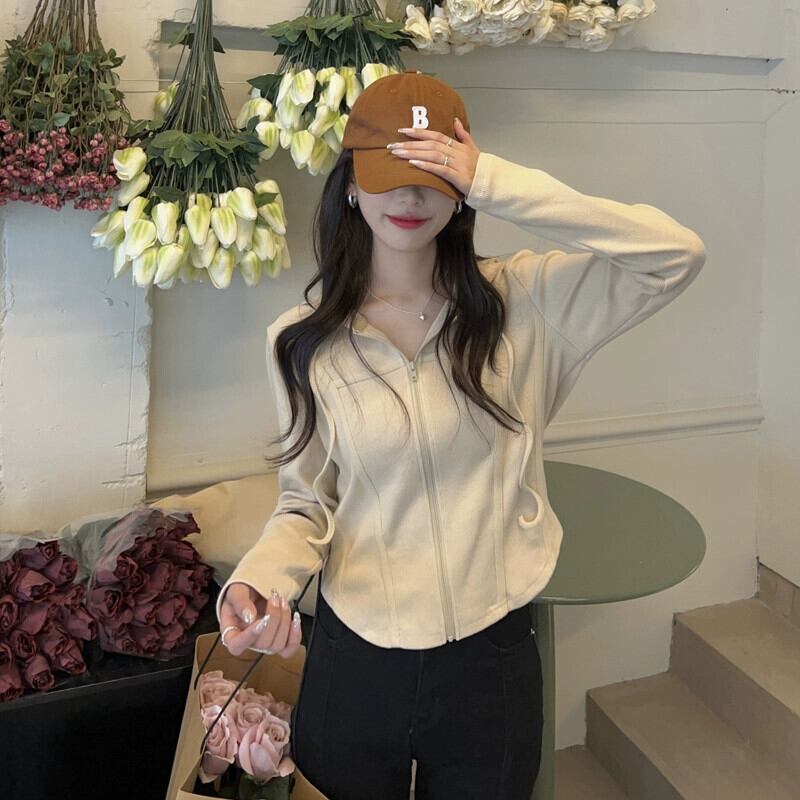 ジッパー付きフード付きショートスウェットシャツジャケット女性、春と秋のデザイン、小さくてスリム、不規則な曲線の長袖トップ ロング レッド スプリング 春物 オータム 秋物 7460042629628184 | framboise21