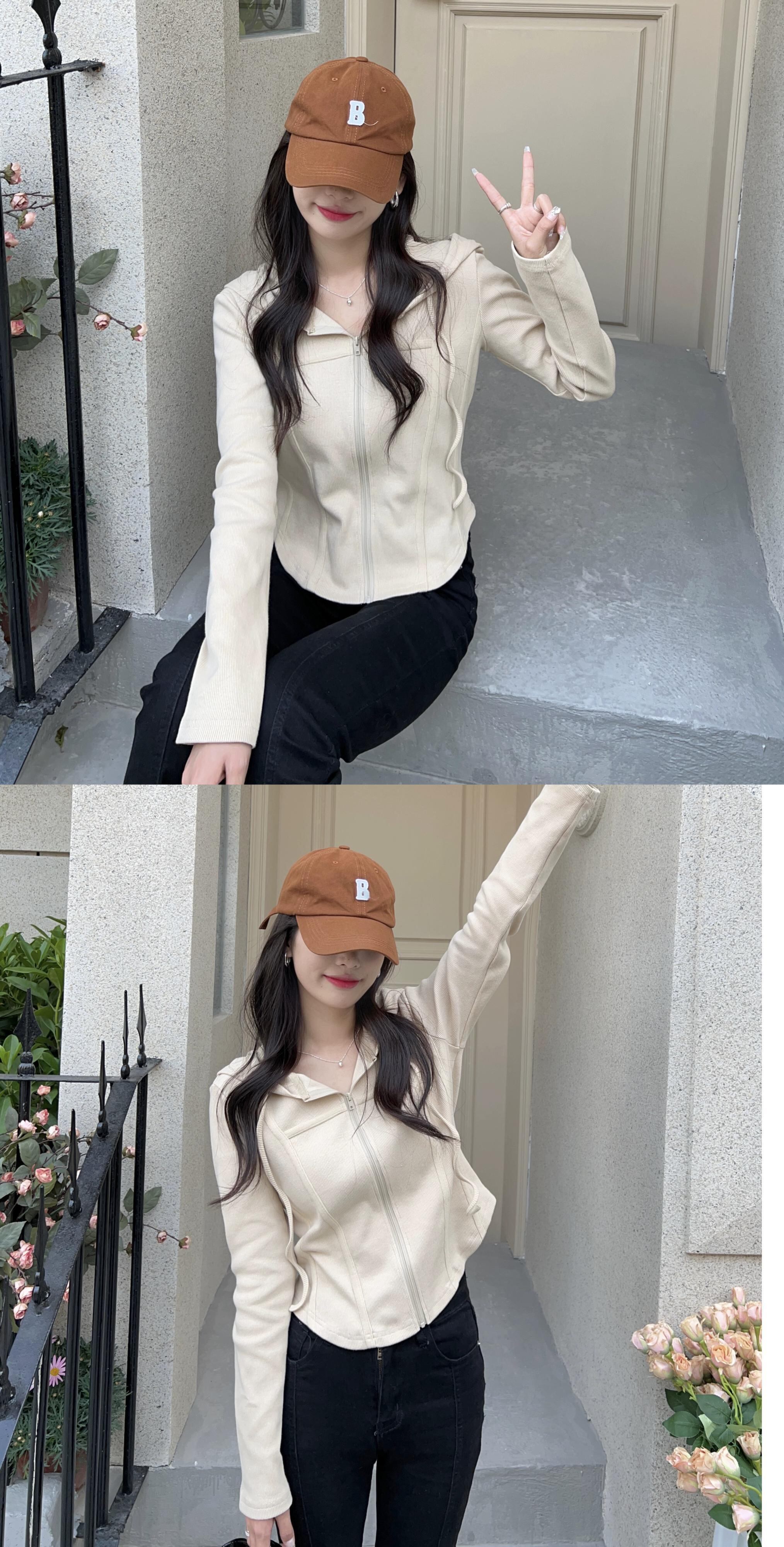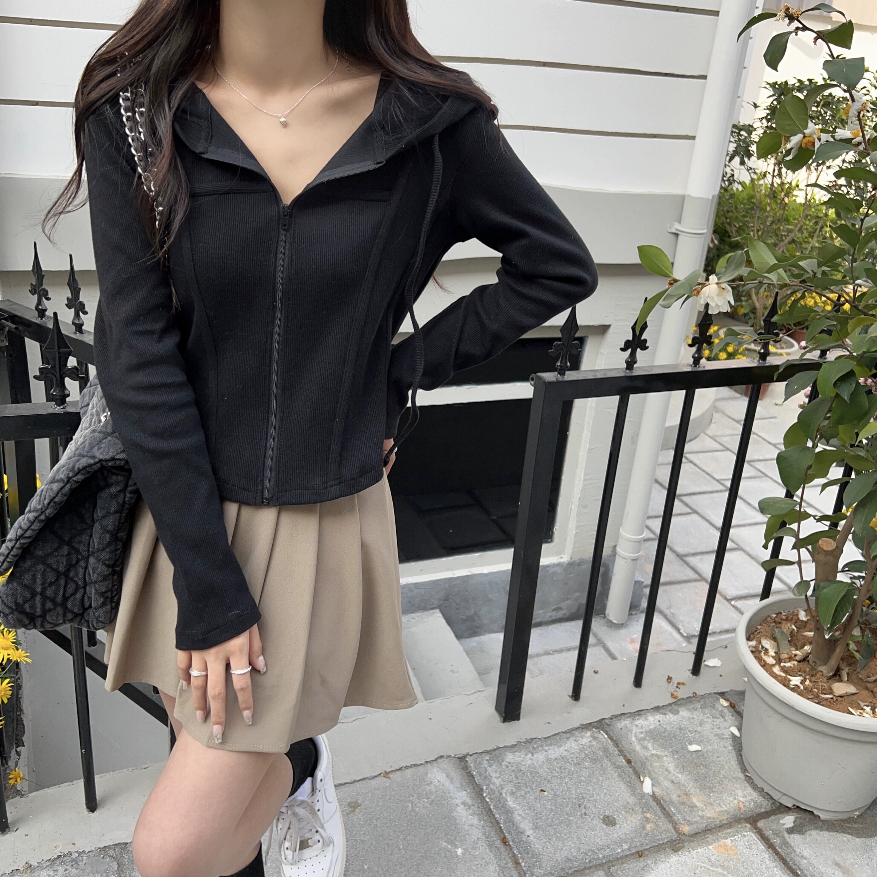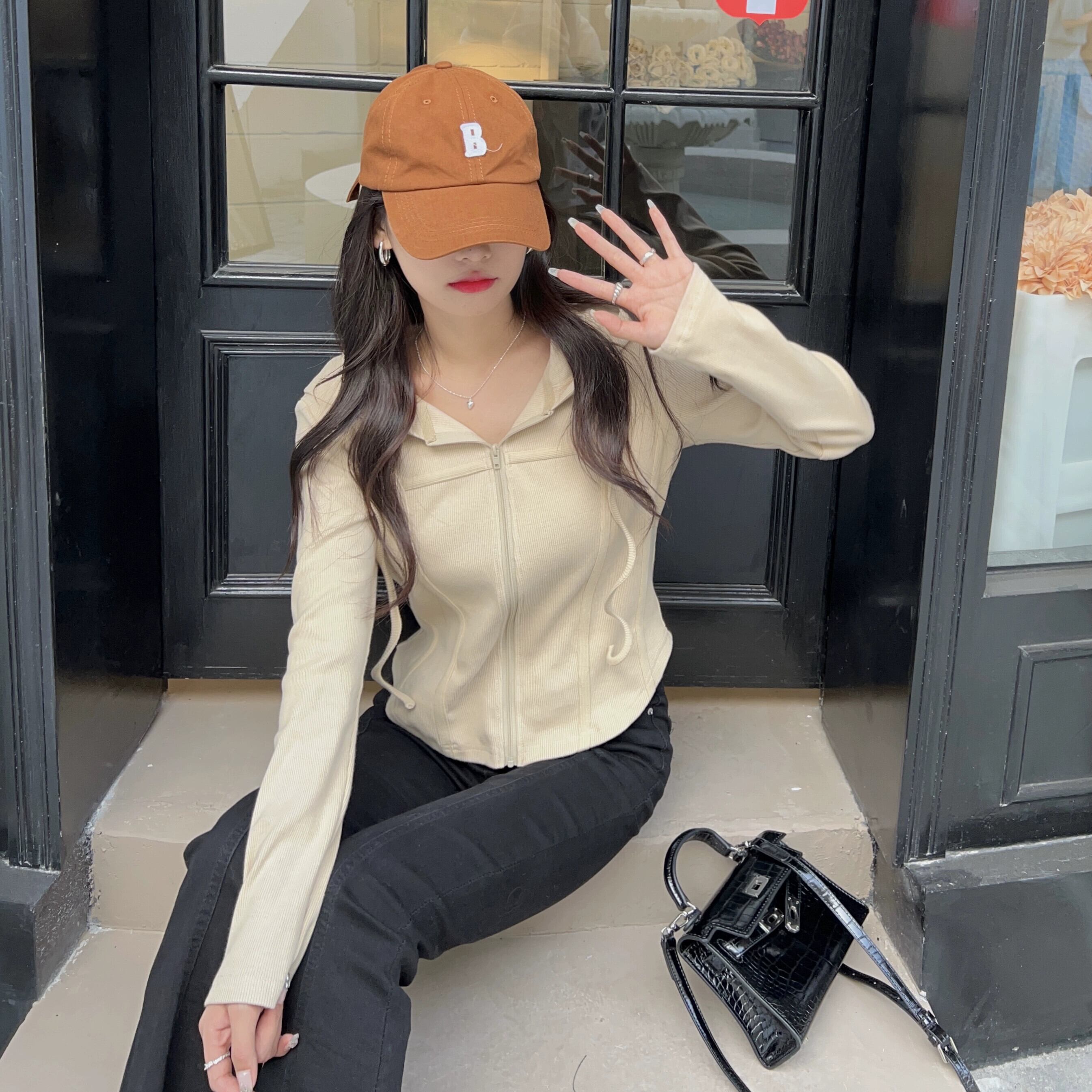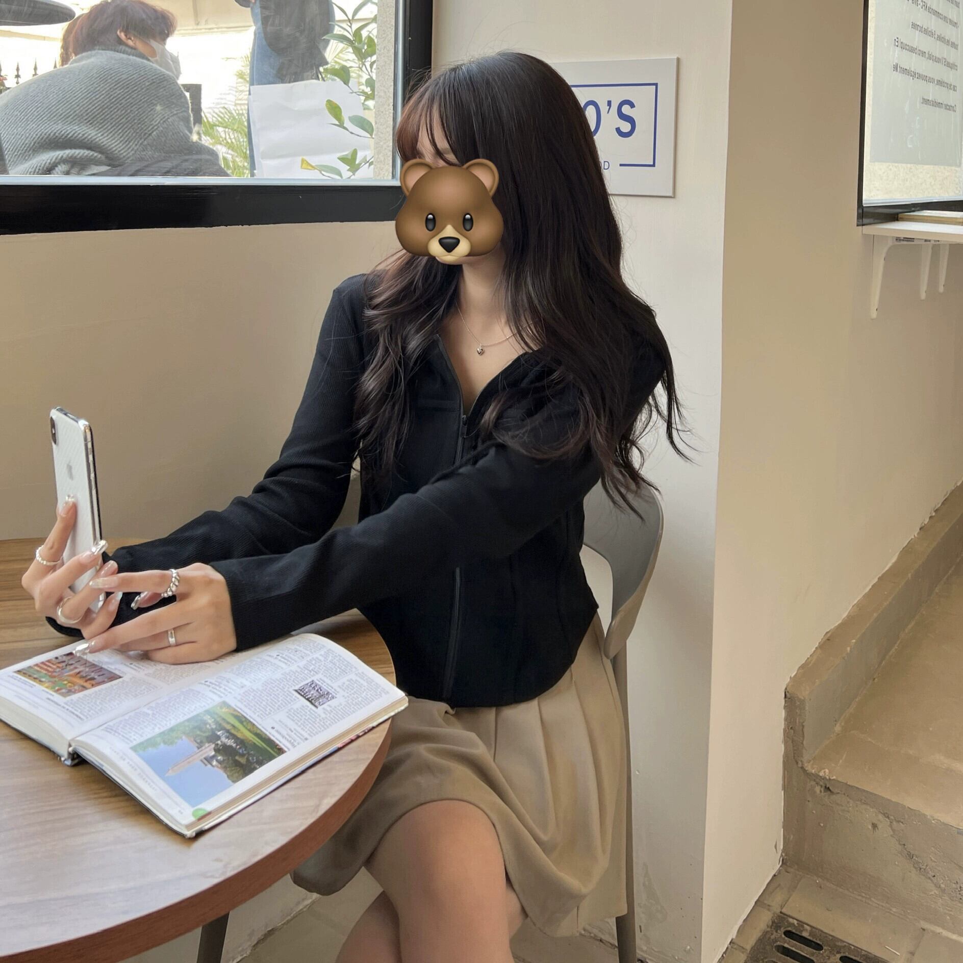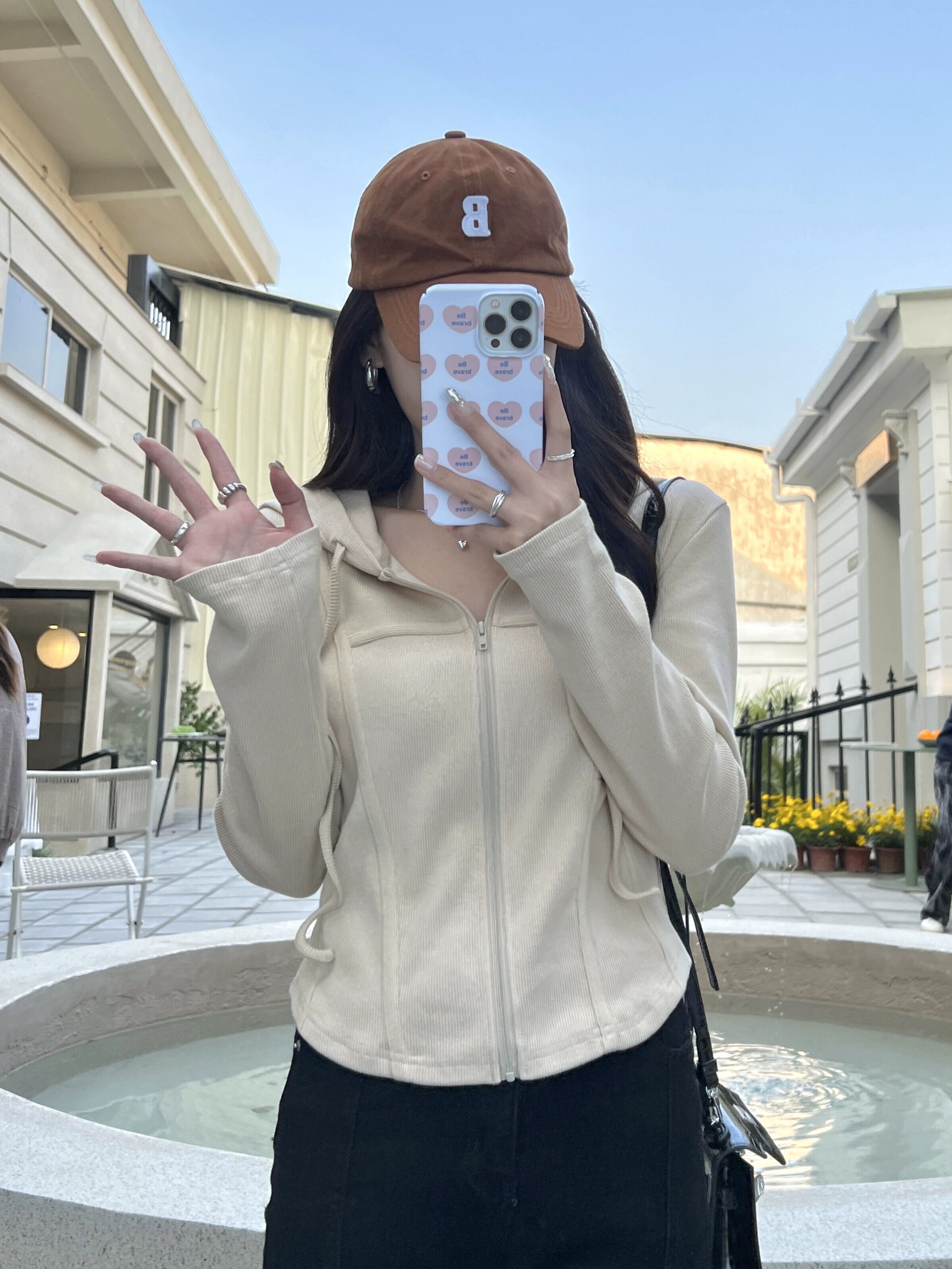 ジッパー付きフード付きショートスウェットシャツジャケット女性、春と秋のデザイン、小さくてスリム、不規則な曲線の長袖トップ ロング レッド スプリング 春物 オータム 秋物 7460042629628184 | framboise21