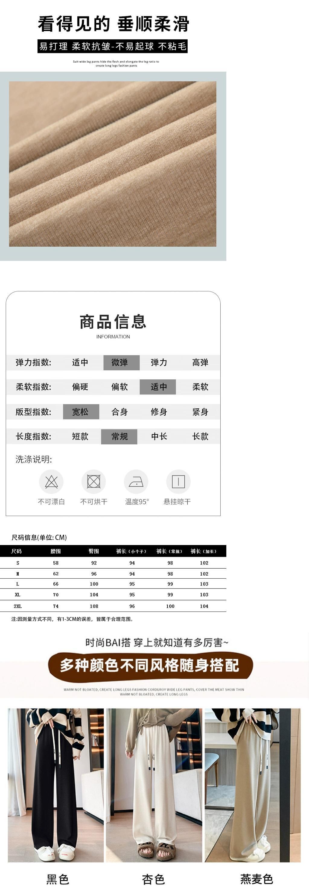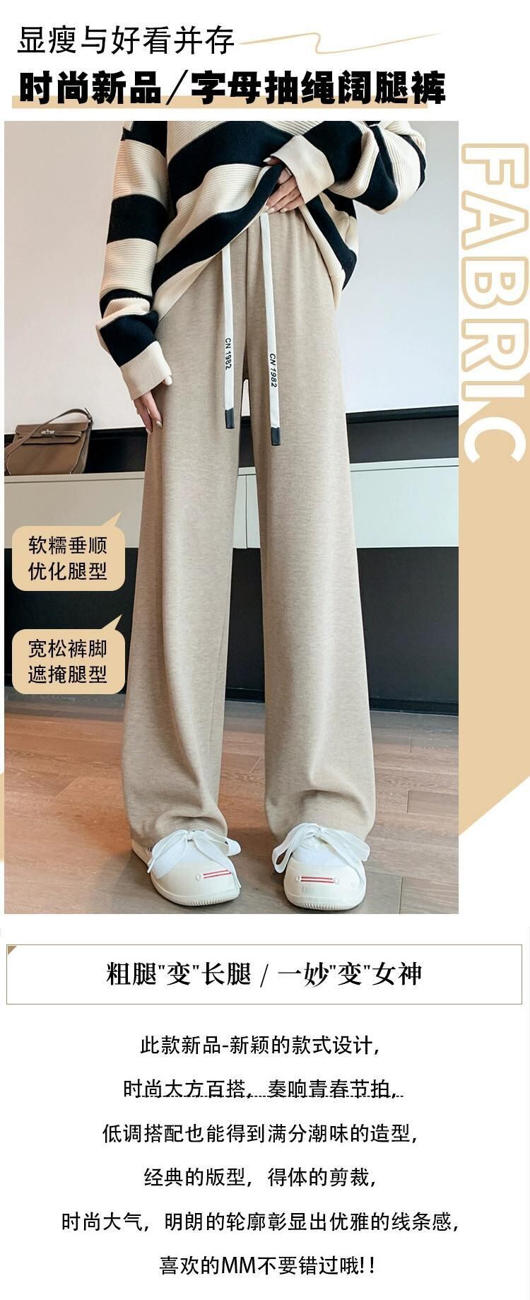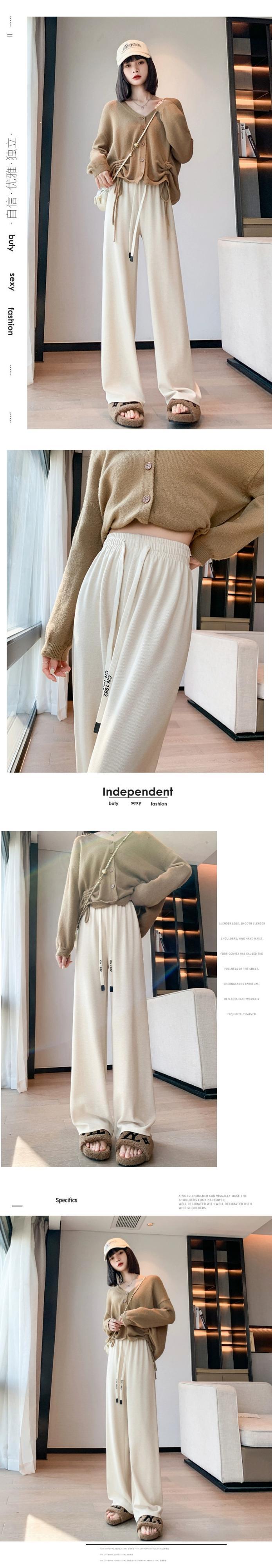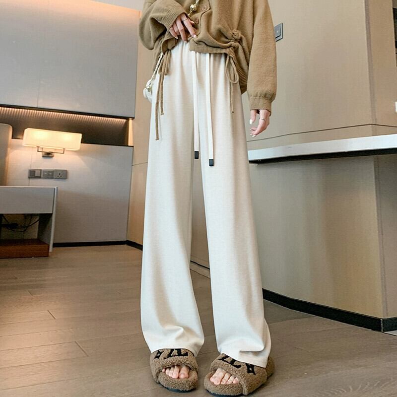 アプリコットソフトワックスニットワイドレッグパンツレディース、秋冬ハイウエストスリムドレープパンツ、ルーズナローバージョンストレートカジュアルパンツ オータム 秋物 ウィンター 冬物 7460043765480887 | framboise21