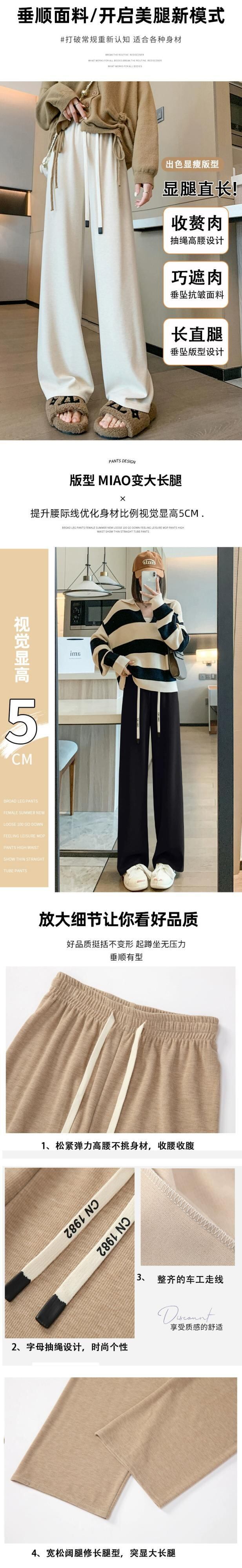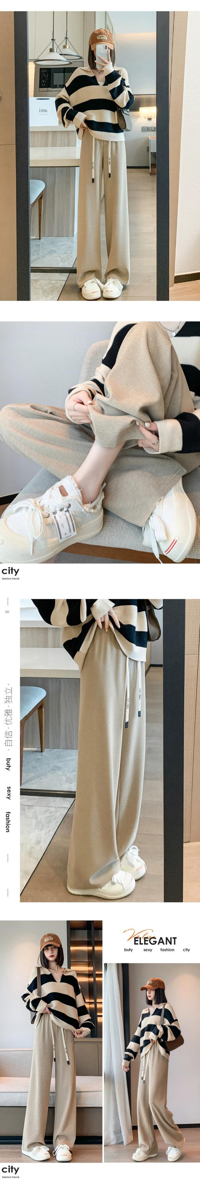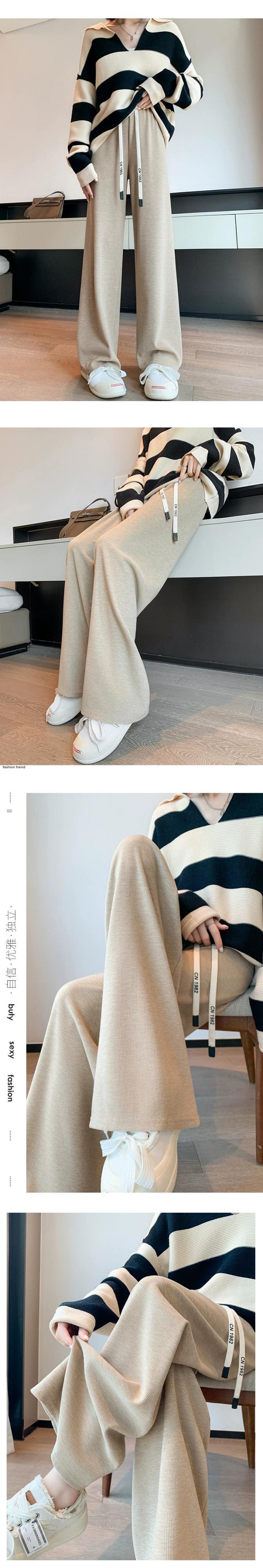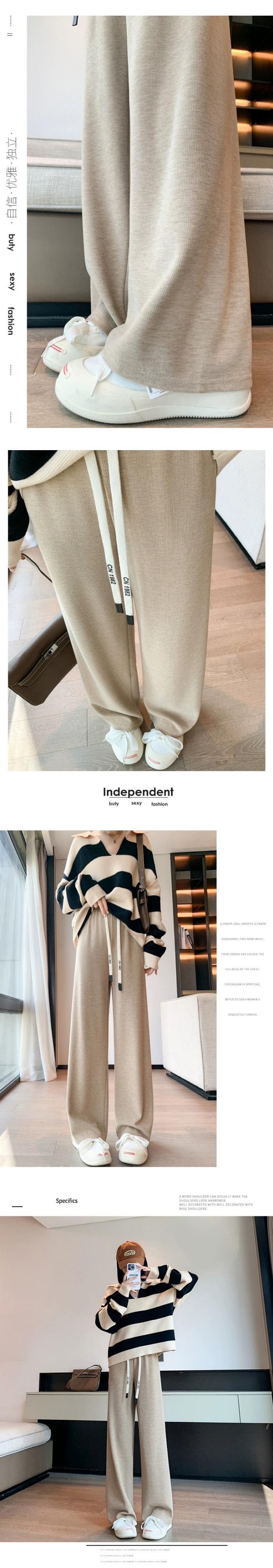 アプリコットソフトワックスニットワイドレッグパンツレディース、秋冬ハイウエストスリムドレープパンツ、ルーズナローバージョンストレートカジュアルパンツ オータム 秋物 ウィンター 冬物 7460043765480887 | framboise21