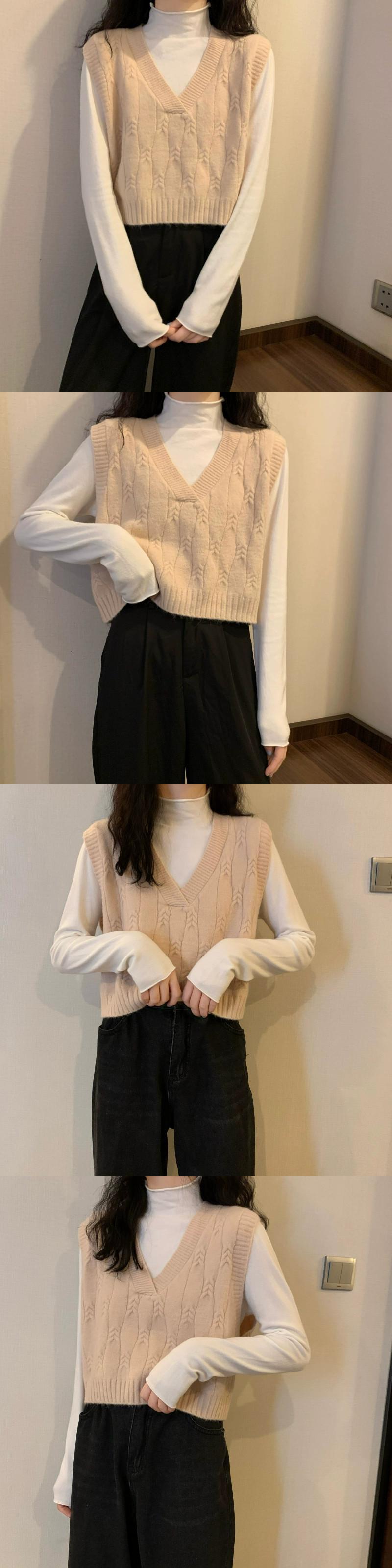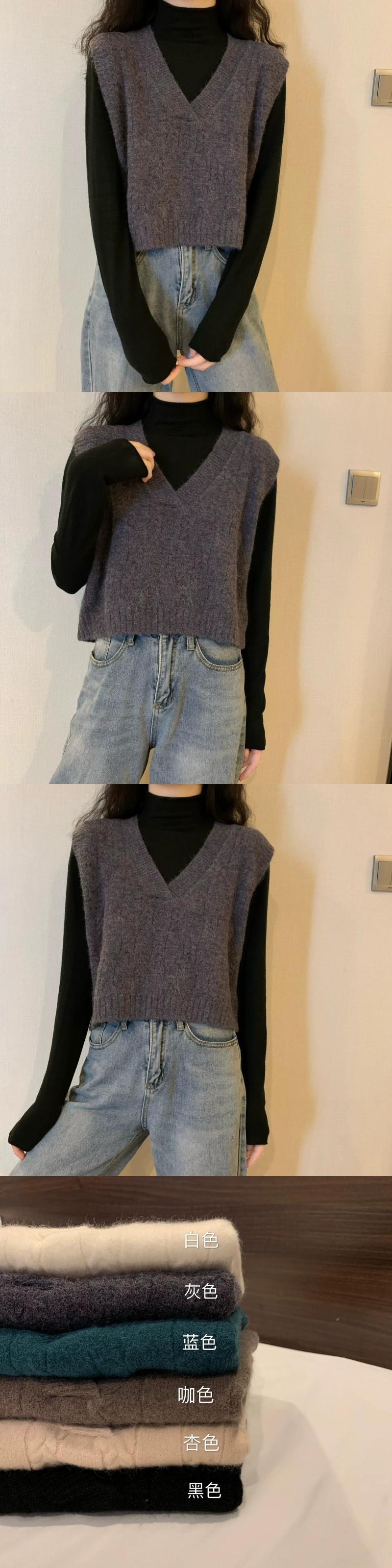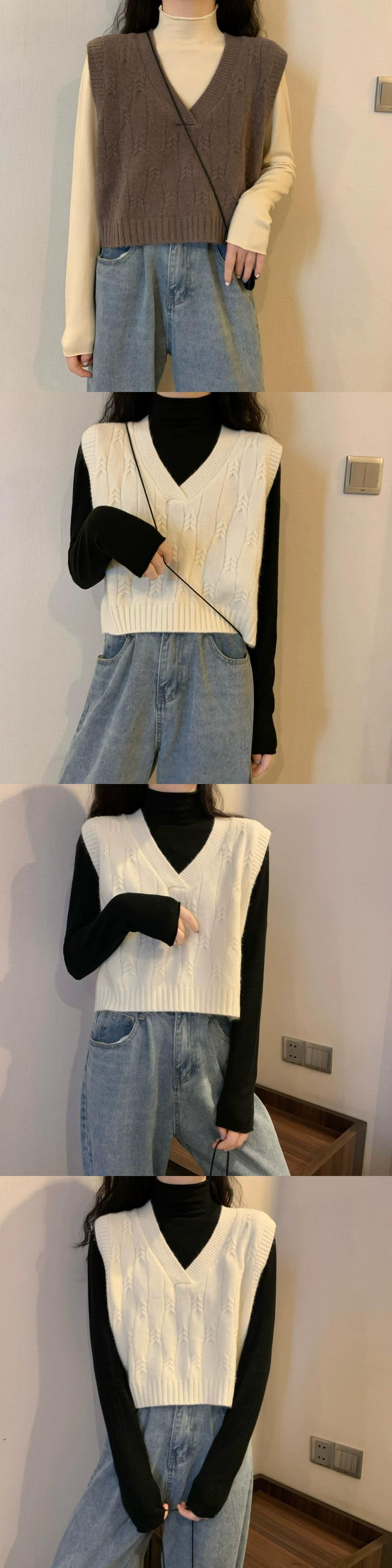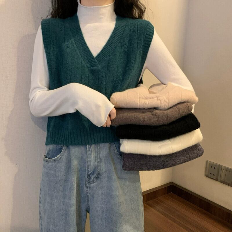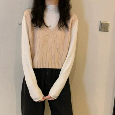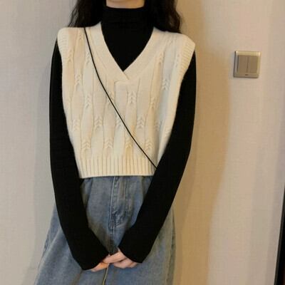 ショート V ネックニットベスト女性秋冬 2023 新しいルーズアウターノースリーブツイストセーター オータム 秋物 ウィンター 冬物 Vネック 7460021959992185 | framboise21