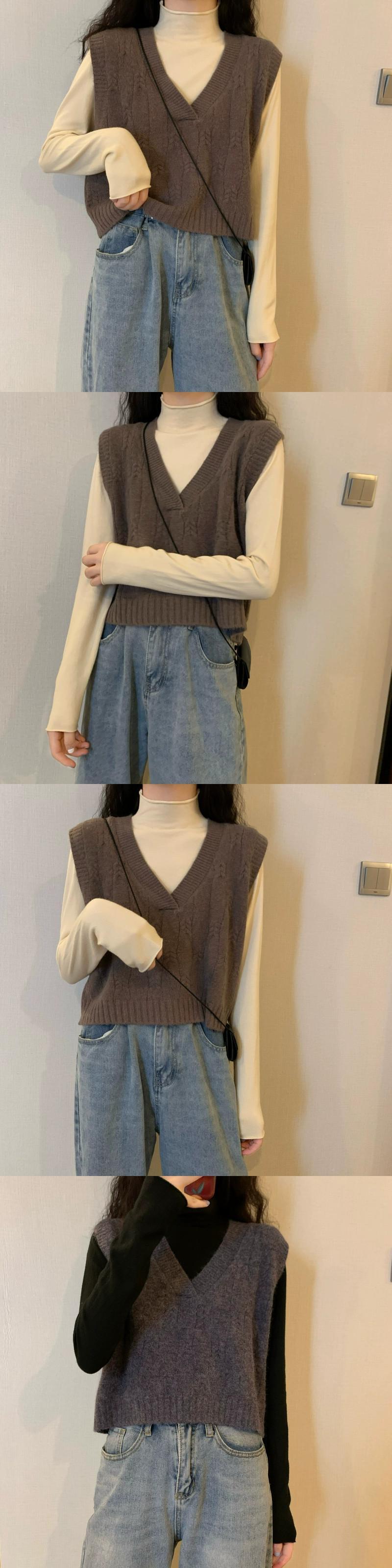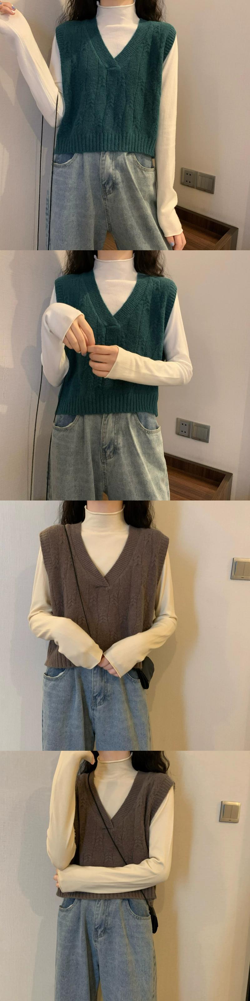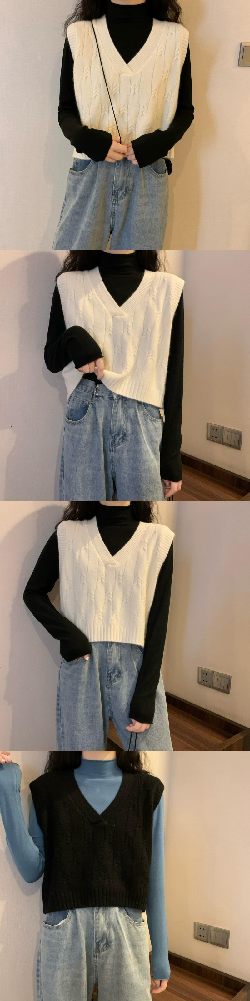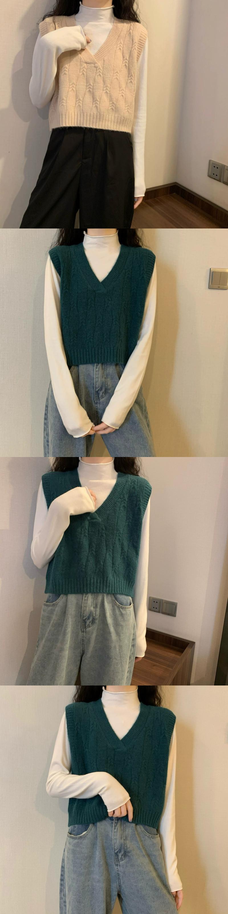 ショート V ネックニットベスト女性秋冬 2023 新しいルーズアウターノースリーブツイストセーター オータム 秋物 ウィンター 冬物 Vネック 7460021959992185 | framboise21